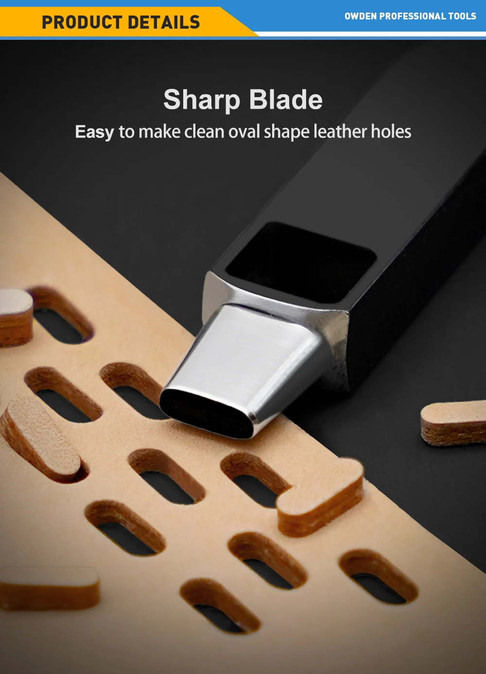 OWDEN продолговатый дырокол для кожи, набор дыроколов для ремня, Овальный дырокол, ремешок для часов, плоский сверхпрочный дырокол для кожи