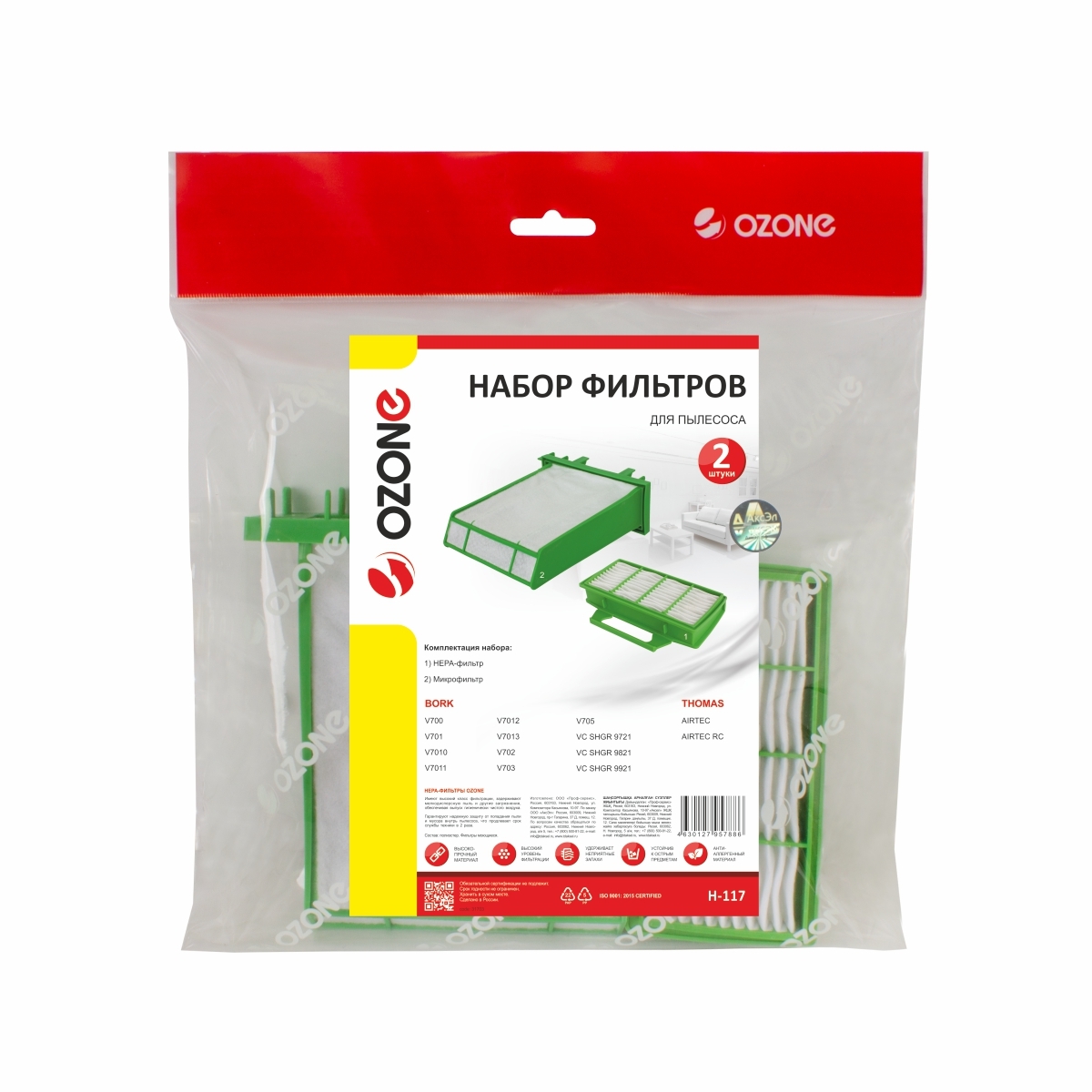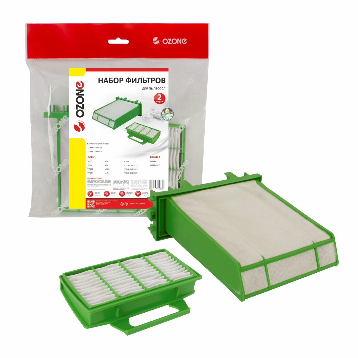Ozone Набор фильтров для пылесосов Bork V700, V701, V702, V703, V705, V7010, V7011, V7012, V7013, VC 9721, VC 9821, VC 9921 и THOMAS Airtec , HEPA + МОТОРНЫЙ - тип V7D1, V7B1