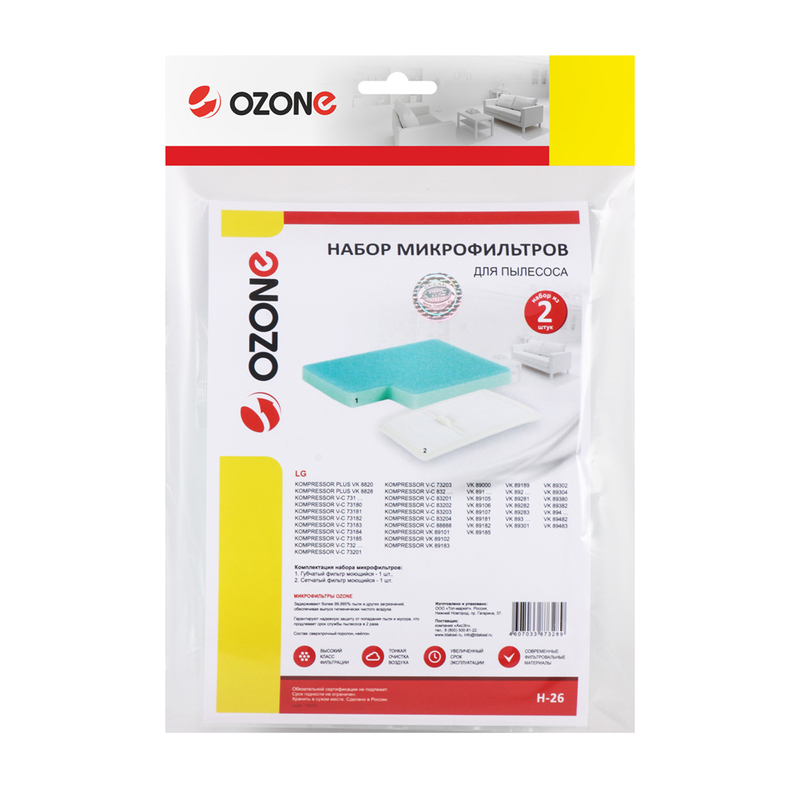 Ozone набор фильтров для пылесосов LG серии Kompressor тип MDJ49551603