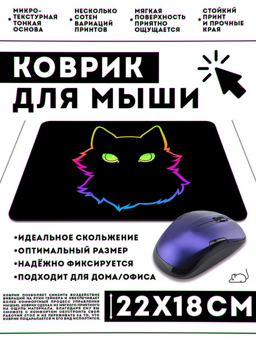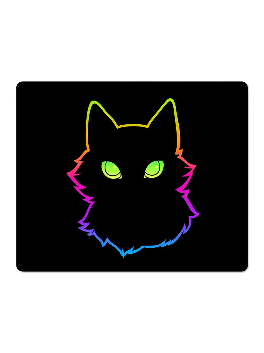 P799 Коврик для мышки компьютерной маленький Неоновый чёрный кот, 22х18см