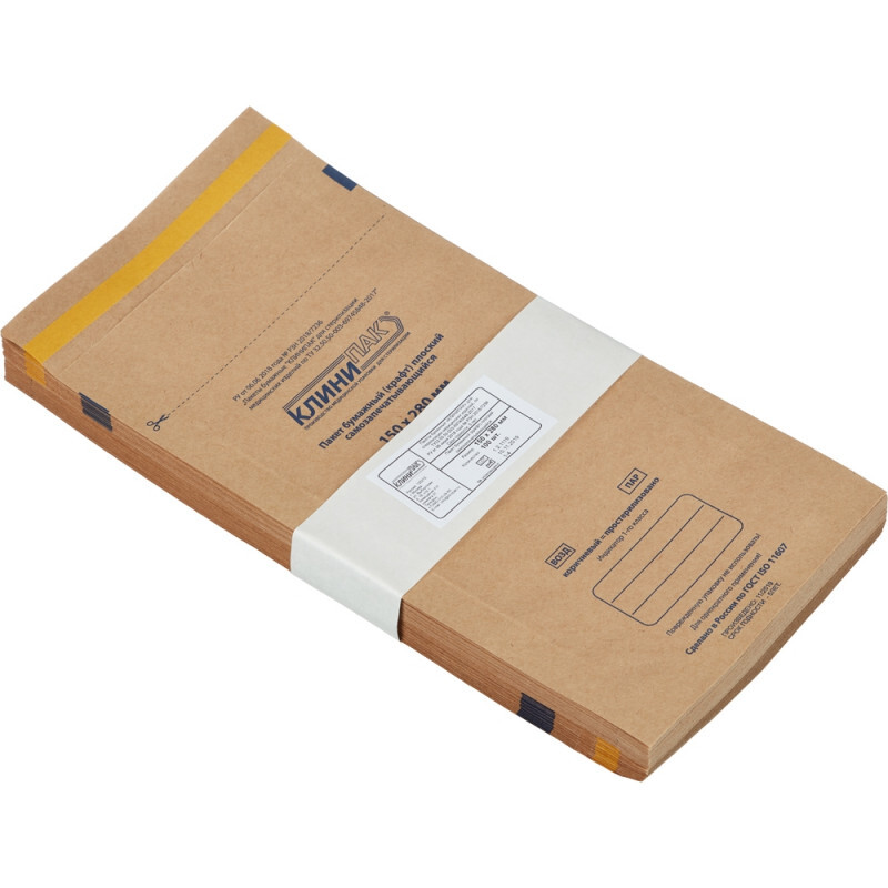 Пакет д/стерил.бум. 150 х 280 мм крафт самокл. 100 шт/уп Клинипак