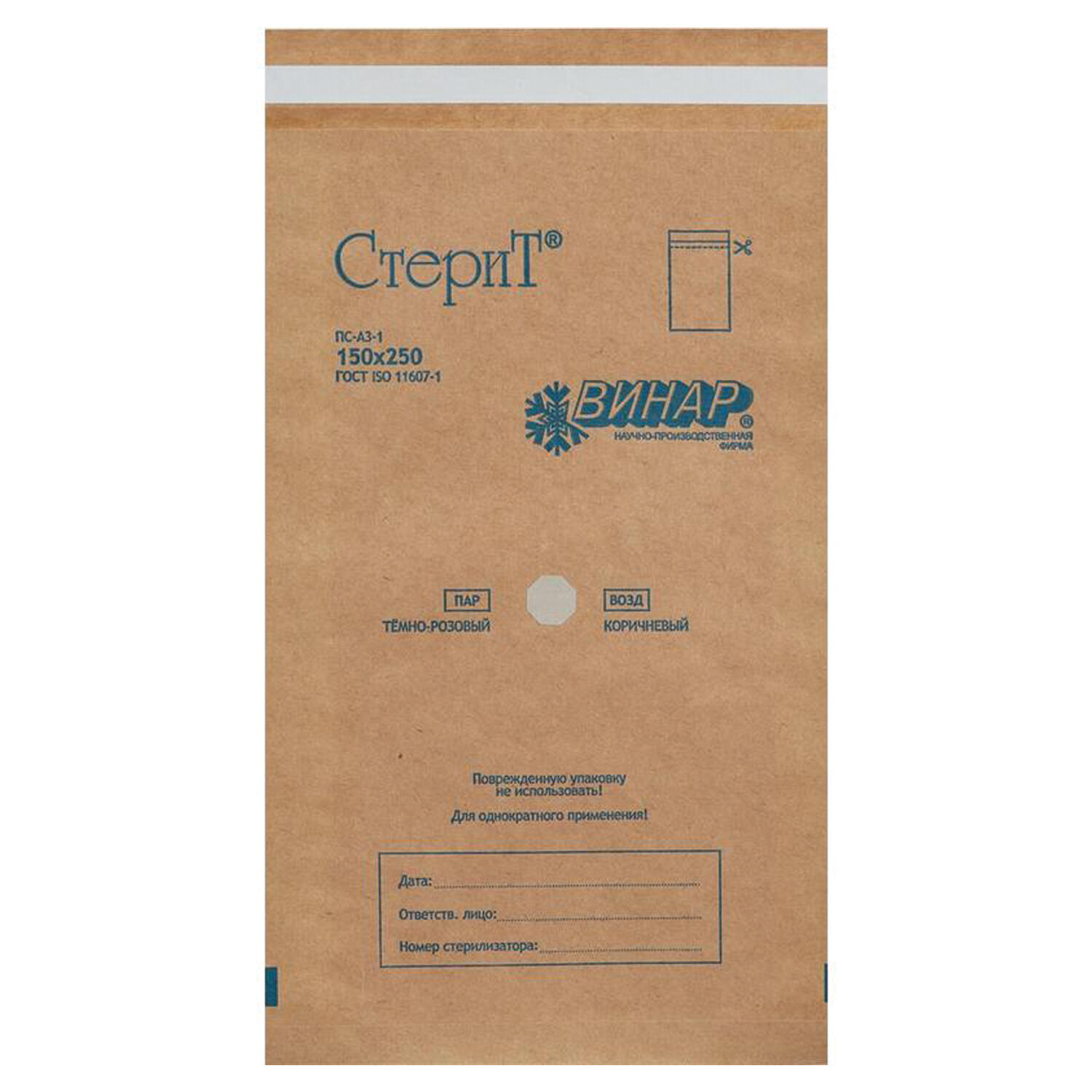 Пакет крафт самоклеящийся ВИНАР СТЕРИТ, комплект 100 шт., для ПАРОВОЙ/ВОЗДУШНОЙ стерилизации, 150х250 мм, 6