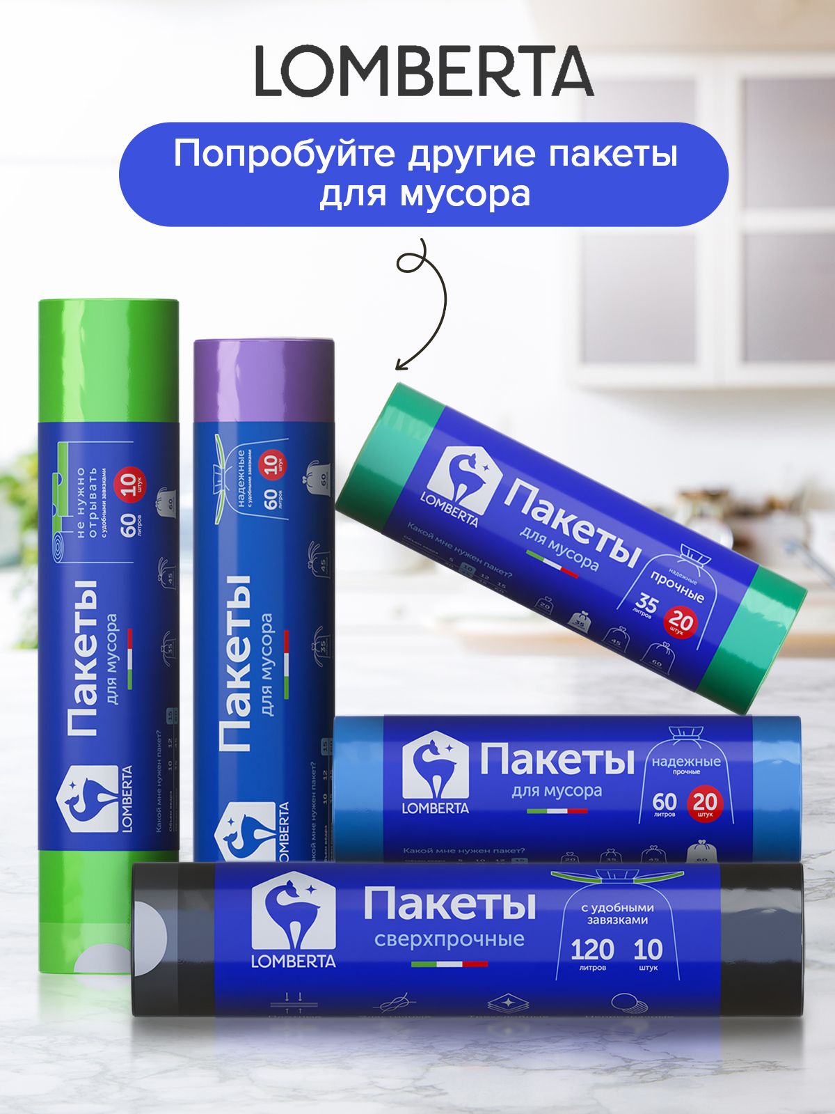 Пакеты для мусора Lomberta (60л 20шт х 2 упаковки)