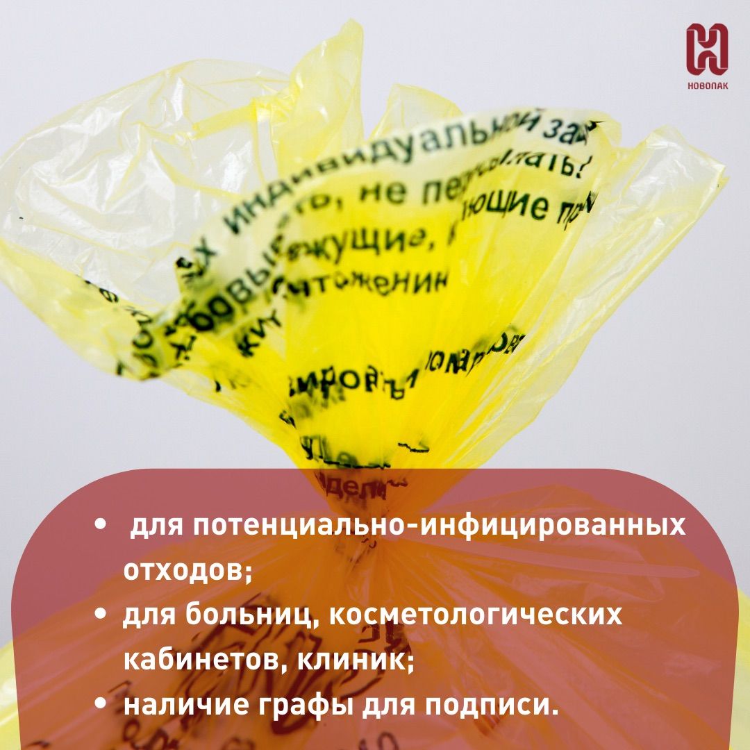 Описание: Пакеты (мешки) для утилизации медицинских отходов класса Б - специальные одноразовые мешки для сбора, хранения и транспортировки использованных косметологических, медицинских отходов.