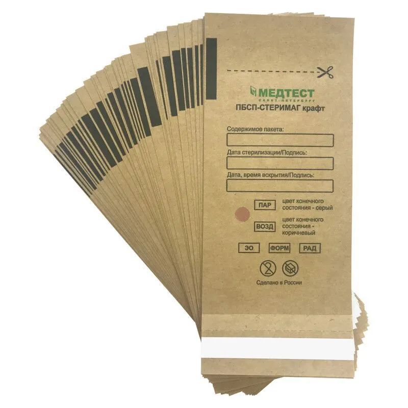 Описание: Бумажные крафт-пакеты предназначены для стерилизации и упаковки маникюрных и медицинских изделий, стерилизуемых паровым, воздушным, этиленоксидным, радиационным методами, с последующем их хранением. Подходит для использования в сухожарах. Пакеты для стерилизации изготовлены из влагостойкой медицинской крафт-бумаги коричневого цвета. На внешней стороне пакета нанесён химический индикатор первого класса, позволяющий отличить простерилизованные изделия от нестерилизованных. Крафт пакеты не требуют дополнительного оборудования для герметичного запаивания.