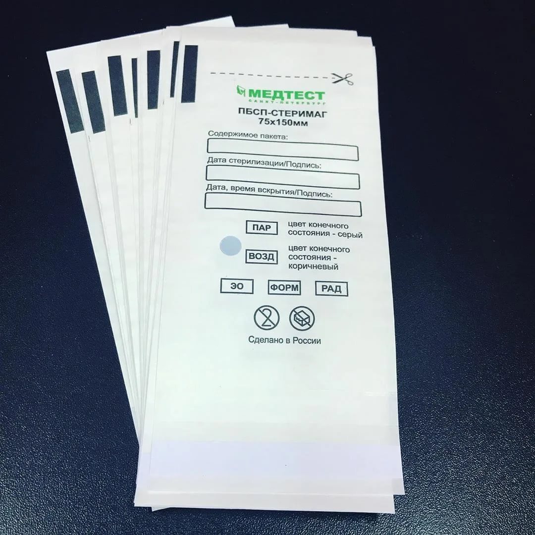 Пакеты для стерилизации МедТест, 75 мм х 150 мм, 100 шт в упаковке