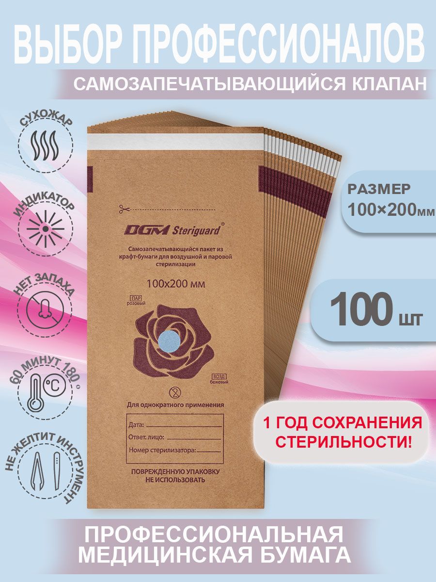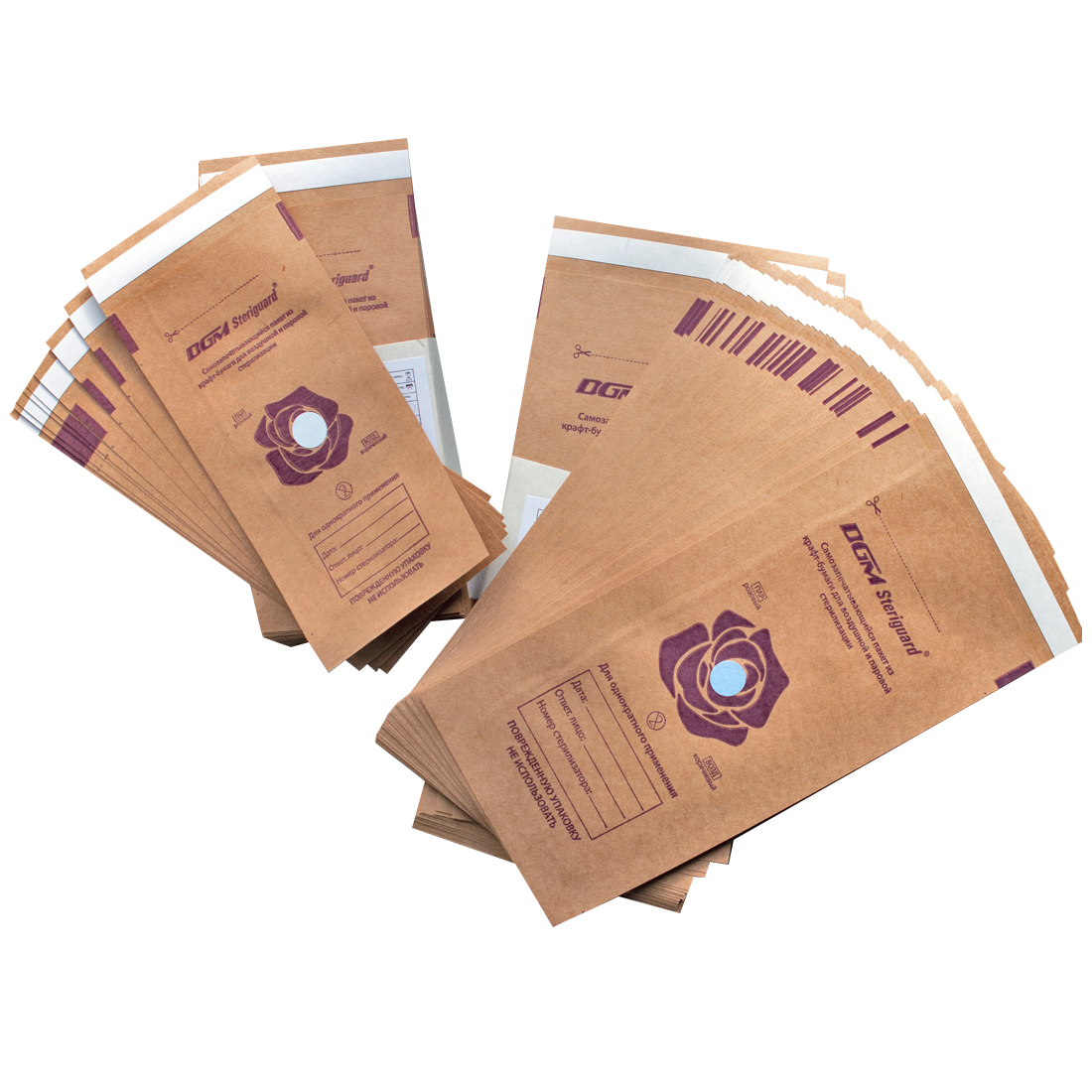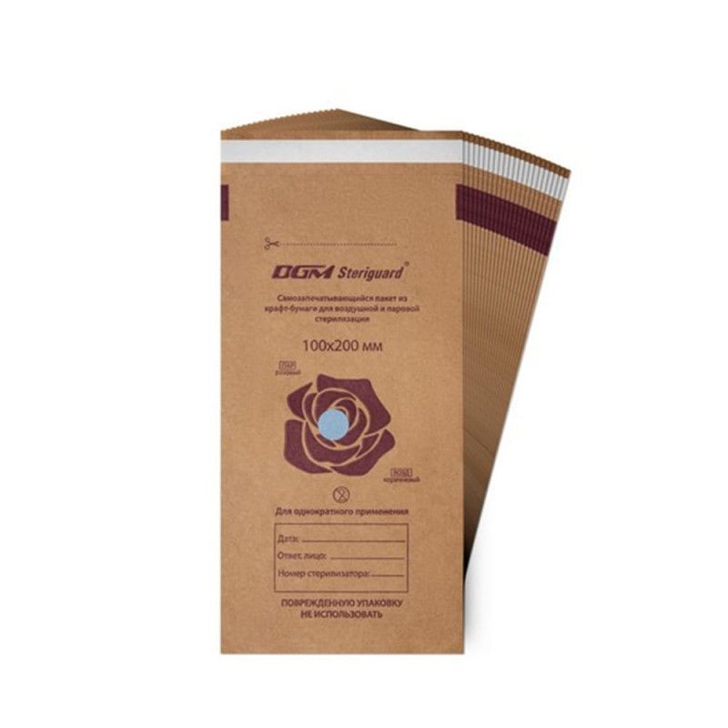 Пакеты самозапечатывающиеся 100х200 коричневые крафт DGM Steriguard, для паровой и воздушной стерилизации, 100 шт.