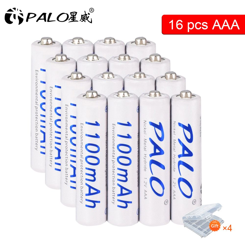 PALO Аккумуляторная батарейка AAA, 1,2 В, 1100 мАч, 16 шт