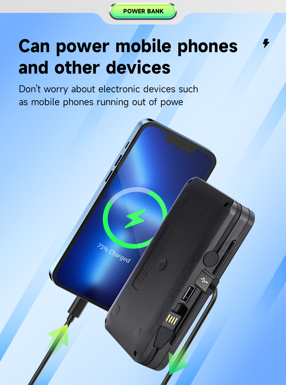 5. Функция мобильного блока питания, когда телефон разряжен во время поездки, это зарядное устройство может передавать заряд аккумулятора камеры на ваш телефон.