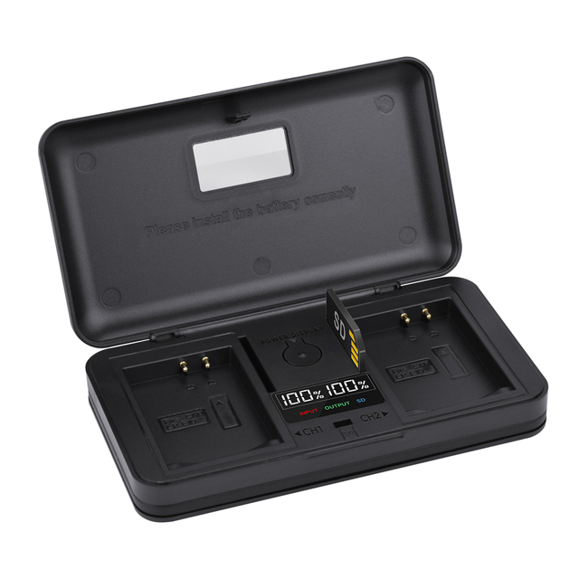 2. Многофункциональное зарядное устройство 4-в-1: зарядное устройство с двумя слотами с ЖК-дисплеем + ящик для хранения аккумуляторов + устройство чтения SD-карт + внешний аккумулятор