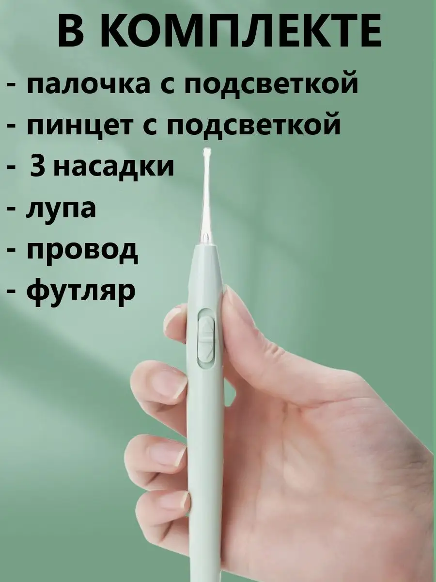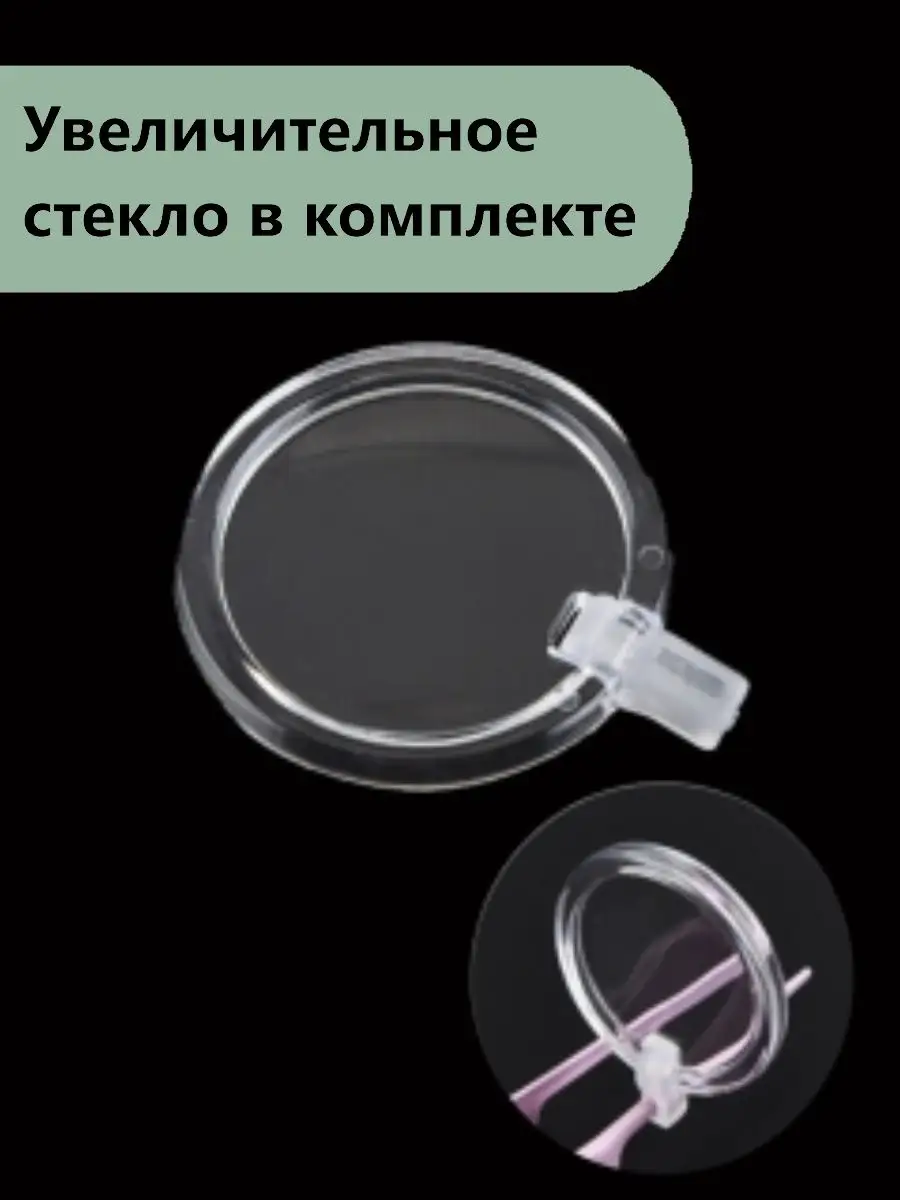 Комплектация палочка с подсветкой; пинцет металлический с подсветкой; 3 насадки; увеличительное стекло, футляр для хранения; USB провод