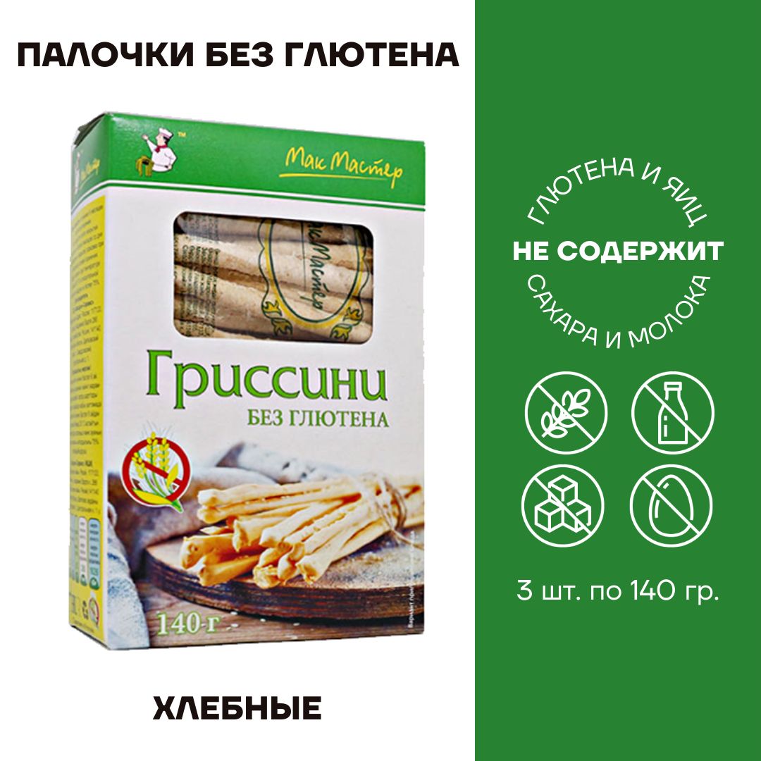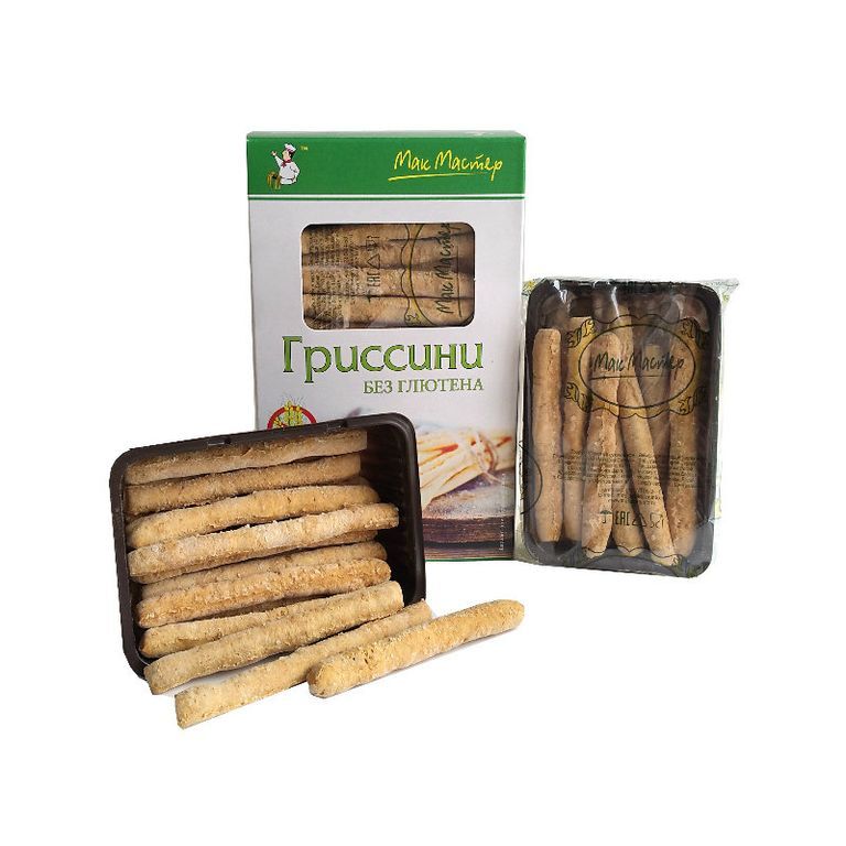 Палочки хлебные без глютена с низким содержанием белка от российского производителя продуктов питания МакМастер производятся из безбелкового сырья - кукурузного крахмала.