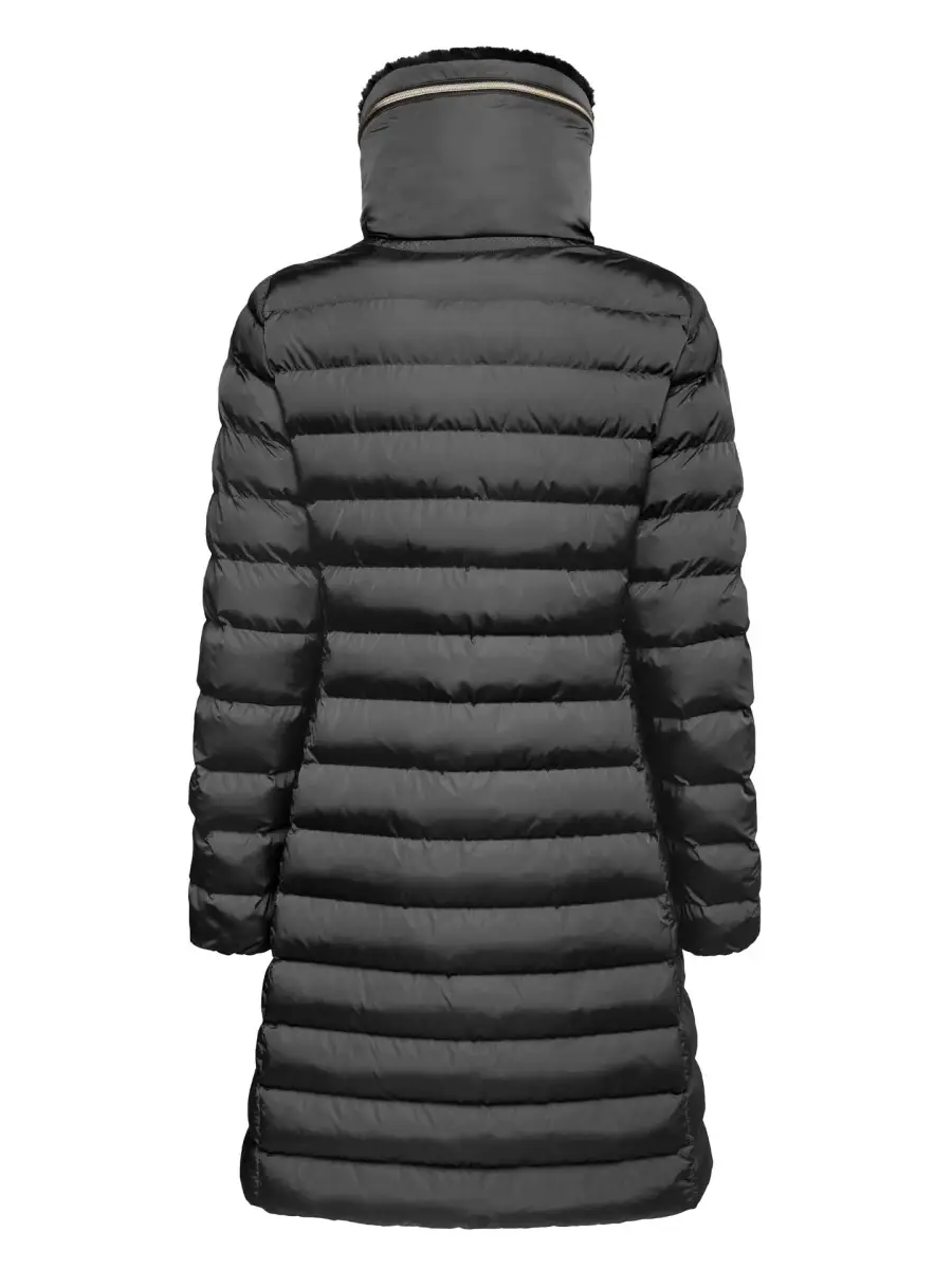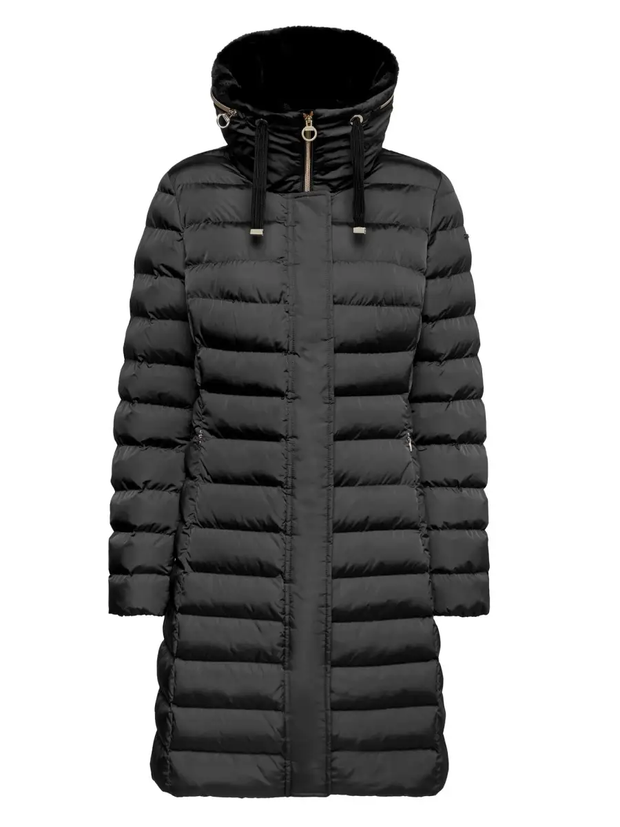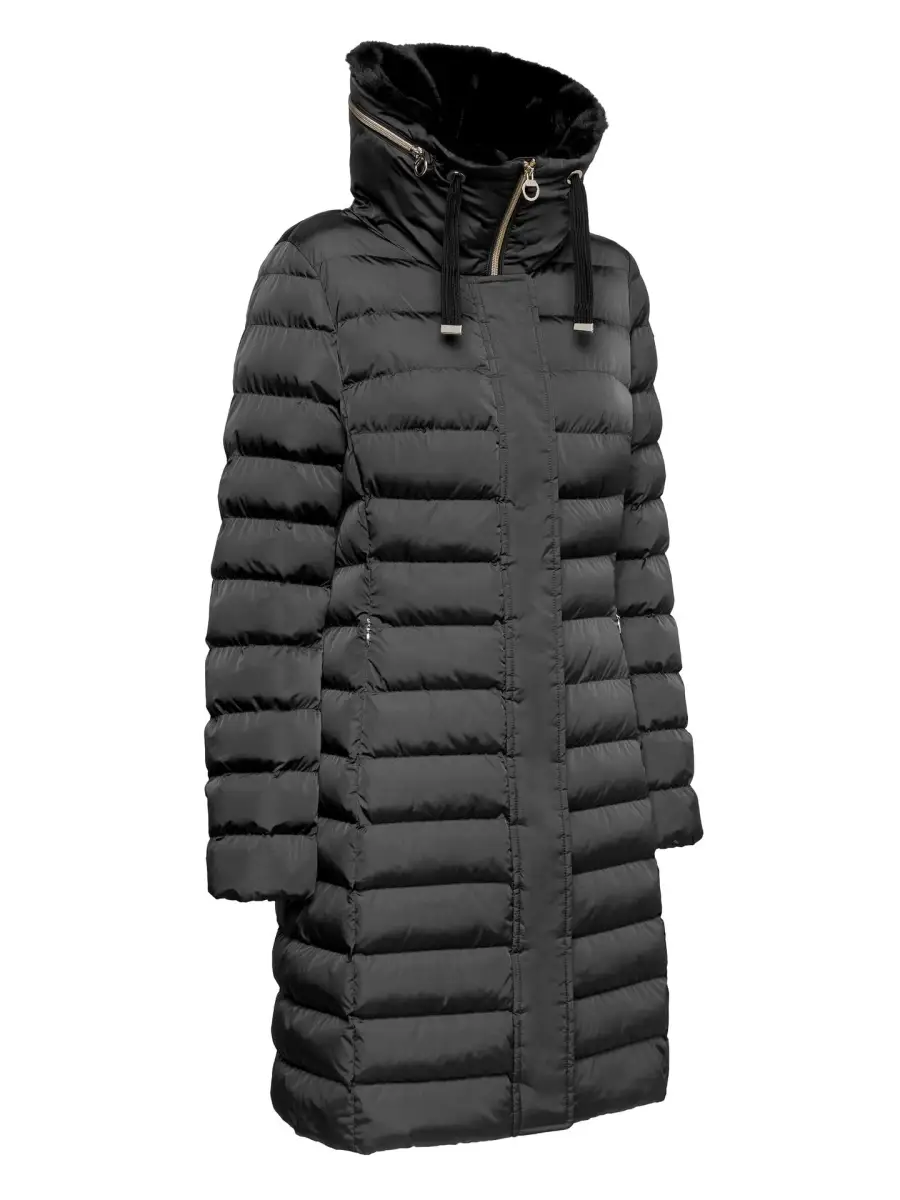 Описание: Удлиненная зимняя куртка SEYLA с очень женственным силуэтом и практичным дизайном. Модель утеплена экологичным материалом из переработаных волокон полиэстера плотностью 300 г/м2. Ткань верха - водоотталкивающий блестящий нейлон. У куртки высокий уютный ворот с несъемным эко мехом. Ворот регулируется с помощью стильных завязок, а под молнией в нём спрятан капюшон. Застежка на молнию с двумя бегунками и кнопки. Фурнитура из светло-золотистого металла. Один внутренний карман и два наружных на молнии.