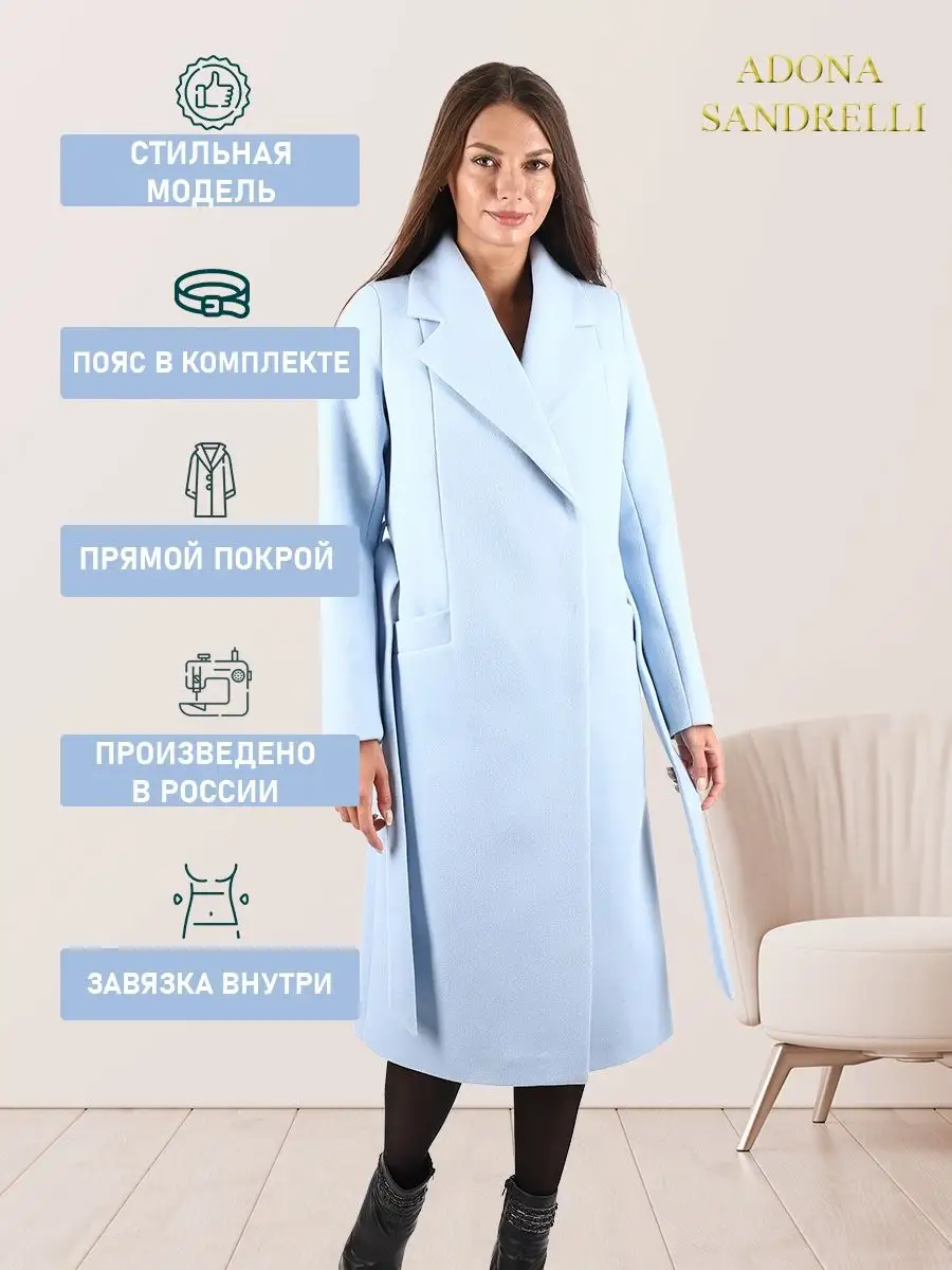 Описание: Универсальное и функциональное пальто-халат станет неотъемлемой вещью в осенне-весенний период. Длина пальто по спинке, для всех размеров 112 см. (+ - 3%). Длина рукава в размерах 42 по 46 - 63 см., в размерах 48 по 50 - 64 см. Температурный режим от +10 до -5 градусов. Особенностью модели является дышащий материал. Выполнено из драпа. Застежка на кнопки. Прямой лаконичный силуэт с прорезными карманами и отложным воротником. Шлица для удобства ходьбы. Рост девушки модели 174 см. Во избежание споров (маломерит / большемерит) предлагаем всем ознакомиться с нижеприведенной таблицей по размерной сетке (ОГ-ОТ-ОБ): 42-ой размер: 82-86, 62-66, 90-94; 44-ый размер: 86-90, 66-70, 94-98; 46-ой размер: 90-94, 70-74, 98-102; 48-ой размер: 94-98, 74-78, 102-106; 50-ый размер: 98-102, 78-82, 106-110. Дорогие наши покупательницы! Мы, производитель пальто Adona Sandrelli, не торгуем со своего склада. Все наши пальто хранятся на складах WB и уже оттуда отправляются к Вам, на основании заявок от Вас. Мы не задерживаем отправку к Вам наших пальто, так как не можем на это повлиять. При отправке товара мы не путаем наши пальто с чужими товарами, так как у нас нет других товаров, кроме наших пальто. Мы не делаем пересортицу по моделям, размерам и расцветкам пальто, так как мы не формируем отправки к Вам. Мы не производим переупаковку наших пальто на складах WB в комок, замотанный скотчем, так у нас нет доступа к складам WB. Мы не удерживаем с Вас стоимость возвратов, точно так же, как и не выдаём Вам чек о покупке нашего пальто, так как это не мы продали Вам пальто Adona Sandrelli. Мы не теряем наши пояса, потому что перед отправкой в WB наша продукция проходит ОТК. Мы не пачкаем наши пальто перед отправкой. Мы не отрываем пуговицы «с мясом» от наших пальто. Мы не эксплуатируем наши пальто перед отправкой в WB. Надеемся, в случае возникновения проблем, Вы оформите пальто как брак, для изъятия из оборота, или как минимум, напишите обращение в техподдержку WB, иначе оно отправиться к другому покупателю. Для нас важно, чтобы каждая наша покупательница осталась довольна покупкой и собой. Со склада производителя Adona Sandrelli, пальто отправляются в полной комплектации и в идеальном виде - отпаренные и упакованные в запаянные полиэтиленовые чехлы, с индивидуальной вешалкой, в состоянии «получила, надела, ушла с улыбкой».