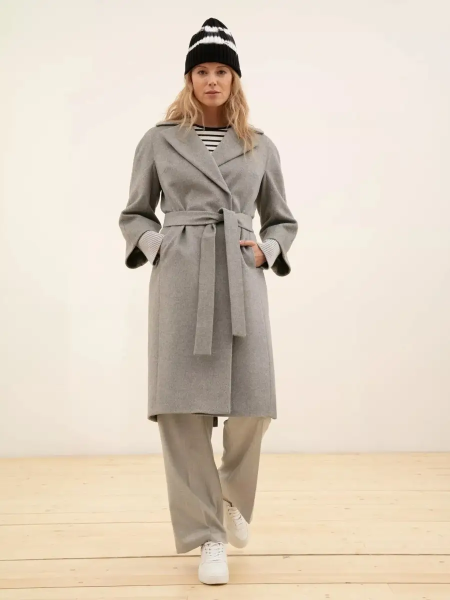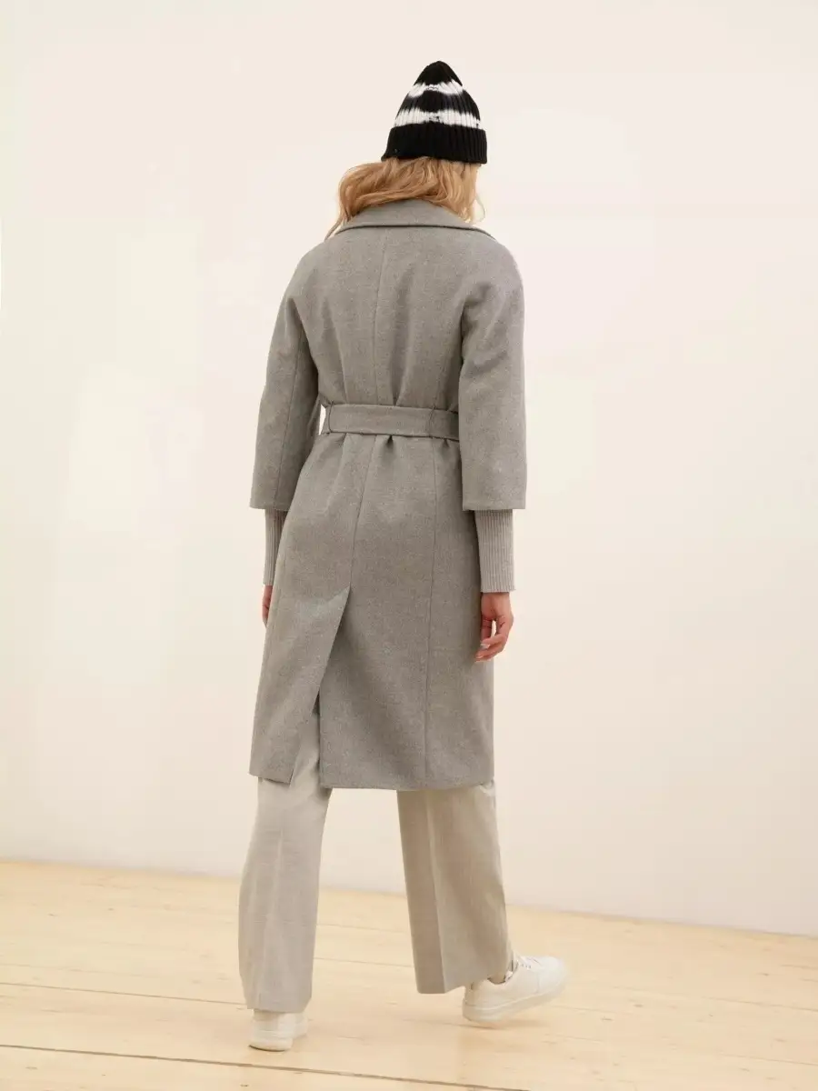 Описание: Пальто с мембраной Raft Pro, прилегающего силуэта из шерстяной ворсовой ткани светло-серого оттенка. Большой английский воротник с лацканами, карманы в рельефных швах, рукава-кимоно длиной 3/4, съёмные трикотажные подвязы, пояс из основной ткани, шлица в среднем шве спинки. Длина чуть ниже колена.