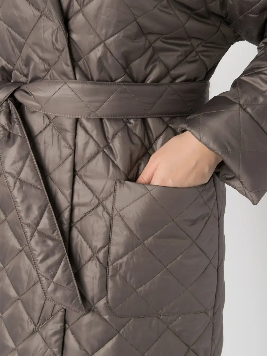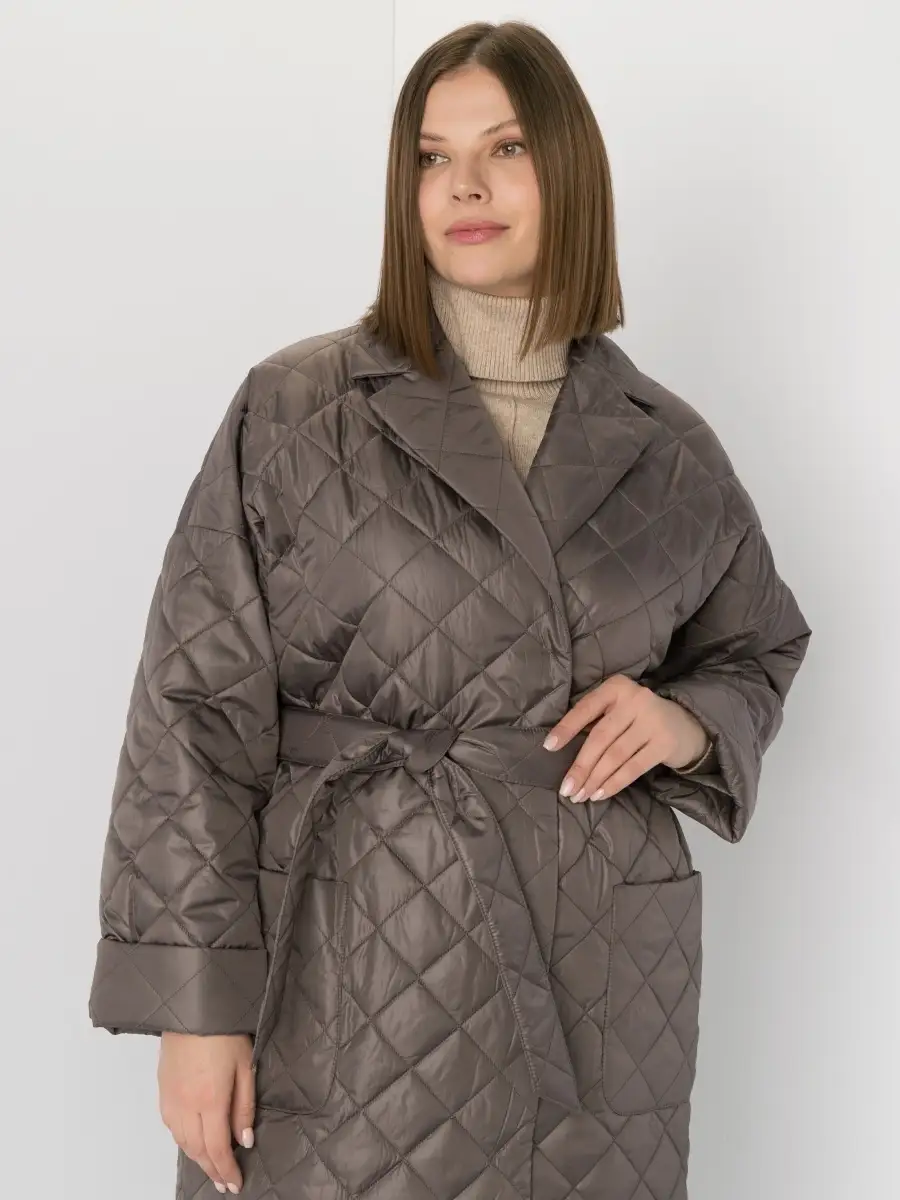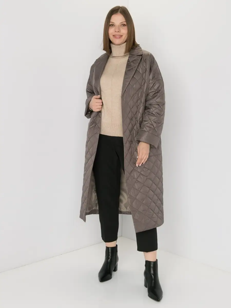 Описание: Трендовое пальто - халат свободного кроя из лёгкой плащевой ткани, стёганой с синтепоном. Комфортный спущенный покрой рукава с возможностью подворота, мягкая линия плеча. Классический английский воротник . Удобная застёжка на кнопки, карманы - накладные. В комплекте пояс из ткани верха. Несмотря на свободный лаконичный крой, фигура в этом пальто не выглядит громоздкой, а, наоборот, смотрится хрупкой и женственной! Пальто идеально подходит на фигуру верхнего типа. Рекомендуем подбирать размер по промерам с фото. Еще больше пальто и курток на нашей странице, жмите на логотип Tirella City и переходите. Подпишитесь на наши обнавления нажав на сердечко..