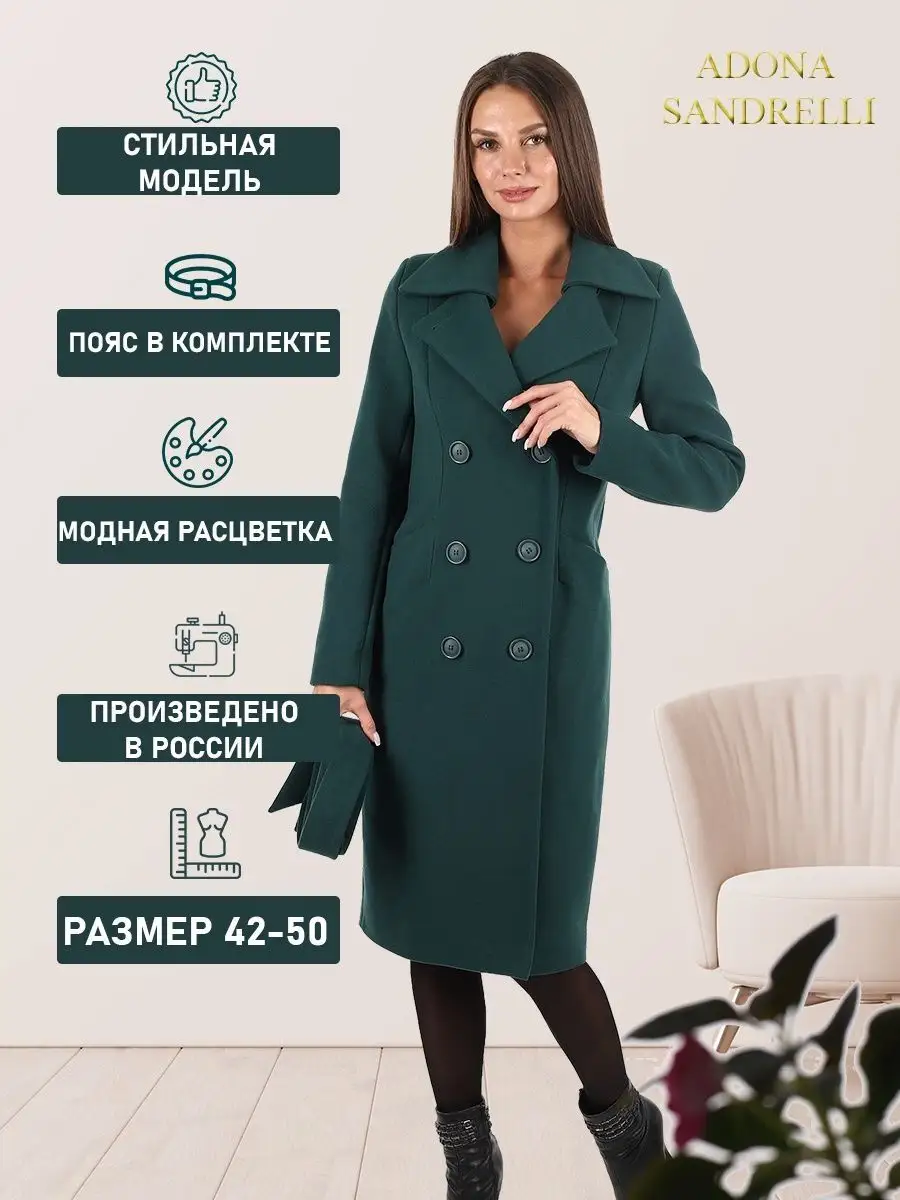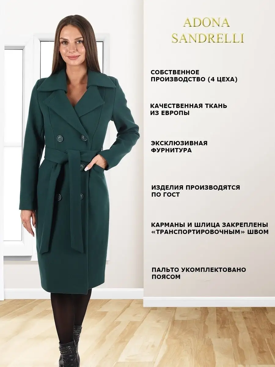 Описание: Женственное двубортное пальто прилегающего силуэта. Длина пальто по спинке, для всех размеров 108 см. (+ - 3%). Температурный режим от +10 до -5 градусов. Особенностью модели является дышащий материал. Отложной воротник, удобные прорезные карманы, застежка на пуговицы. Пояс из основной ткани в комплекте. Современная яркая модель поможет создать множество актуальных образов. Рост девушек моделей 174 см. Дорогие наши покупательницы! Мы, производитель пальто Adona Sandrelli, не торгуем со своего склада. Все наши пальто хранятся на складах WB и уже оттуда отправляются к Вам, на основании заявок от Вас. Мы не задерживаем отправку к Вам наших пальто, так как не можем на это повлиять. При отправке товара мы не путаем наши пальто с чужими товарами, так как у нас нет других товаров, кроме наших пальто. Мы не делаем пересортицу по моделям, размерам и расцветкам пальто, так как мы не формируем отправки к Вам. Мы не производим переупаковку наших пальто на складах WB в комок, замотанный скотчем, так у нас нет доступа к складам WB. Мы не удерживаем с Вас стоимость возвратов, точно так же, как и не выдаём Вам чек о покупке нашего пальто, так как это не мы продали Вам пальто Adona Sandrelli. Мы не теряем наши пояса, потому что перед отправкой в WB наша продукция проходит ОТК. Мы не пачкаем наши пальто перед отправкой. Мы не отрываем пуговицы «с мясом» от наших пальто. Мы не эксплуатируем наши пальто перед отправкой в WB. Надеемся, в случае возникновения проблем, Вы оформите пальто как брак, для изъятия из оборота, иначе оно отправиться к другому покупателю. Для нас важно, чтобы каждая наша покупательница осталась довольна покупкой и собой. Со склада производителя Adona Sandrelli, пальто отправляются в полной комплектации и в идеальном виде - отпаренные и упакованные в запаянные полиэтиленовые чехлы, с индивидуальной вешалкой, в состоянии «получила, надела, ушла с улыбкой». Надеемся, Вы дочитали этот текст до конца, и да сопутствует Вам удача и простое женское счастье!