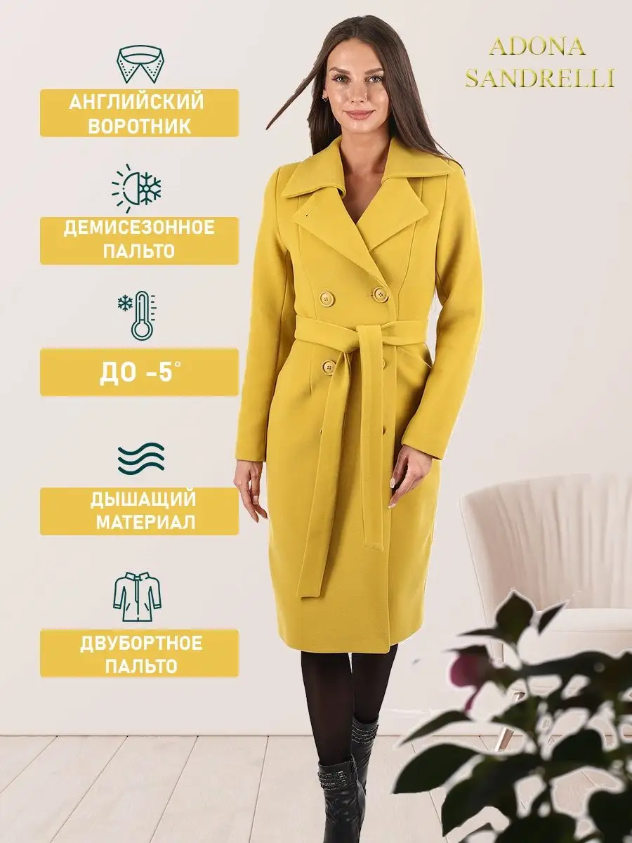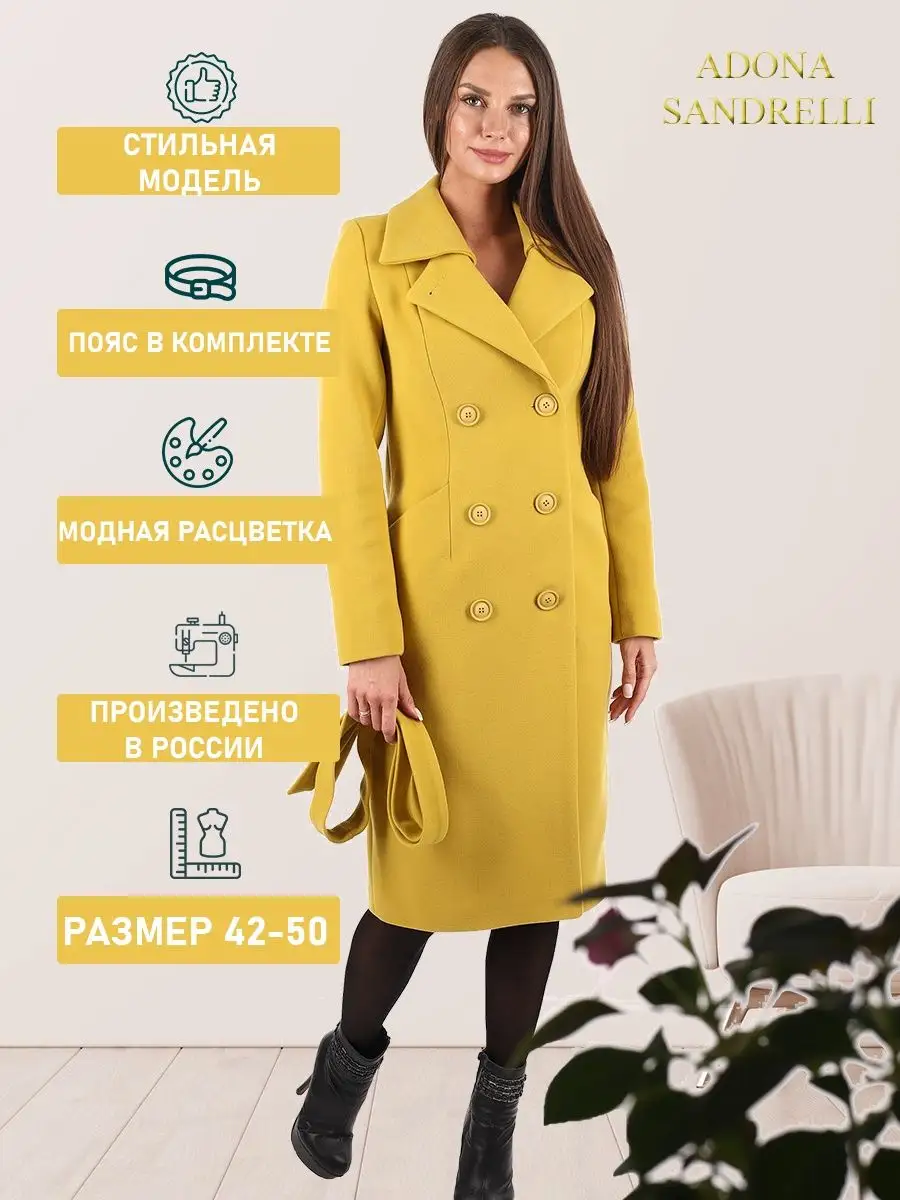 Описание: Женственное двубортное пальто прилегающего силуэта. Длина пальто по спинке, для всех размеров 108 см. (+ - 3%). Температурный режим от +10 до -5 градусов. Особенностью модели является дышащий материал. Отложной воротник, удобные прорезные карманы, застежка на пуговицы. Пояс из основной ткани в комплекте. Современная яркая модель поможет создать множество актуальных образов. Рост девушек моделей 174 см. Дорогие наши покупательницы! Мы, производитель пальто Adona Sandrelli, не торгуем со своего склада. Все наши пальто хранятся на складах WB и уже оттуда отправляются к Вам, на основании заявок от Вас. Мы не задерживаем отправку к Вам наших пальто, так как не можем на это повлиять. При отправке товара мы не путаем наши пальто с чужими товарами, так как у нас нет других товаров, кроме наших пальто. Мы не делаем пересортицу по моделям, размерам и расцветкам пальто, так как мы не формируем отправки к Вам. Мы не производим переупаковку наших пальто на складах WB в комок, замотанный скотчем, так у нас нет доступа к складам WB. Мы не удерживаем с Вас стоимость возвратов, точно так же, как и не выдаём Вам чек о покупке нашего пальто, так как это не мы продали Вам пальто Adona Sandrelli. Мы не теряем наши пояса, потому что перед отправкой в WB наша продукция проходит ОТК. Мы не пачкаем наши пальто перед отправкой. Мы не отрываем пуговицы «с мясом» от наших пальто. Мы не эксплуатируем наши пальто перед отправкой в WB. Надеемся, в случае возникновения проблем, Вы оформите пальто как брак, для изъятия из оборота, иначе оно отправиться к другому покупателю. Для нас важно, чтобы каждая наша покупательница осталась довольна покупкой и собой. Со склада производителя Adona Sandrelli, пальто отправляются в полной комплектации и в идеальном виде - отпаренные и упакованные в запаянные полиэтиленовые чехлы, с индивидуальной вешалкой, в состоянии «получила, надела, ушла с улыбкой». Надеемся, Вы дочитали этот текст до конца, и да сопутствует Вам удача и простое женское счастье!