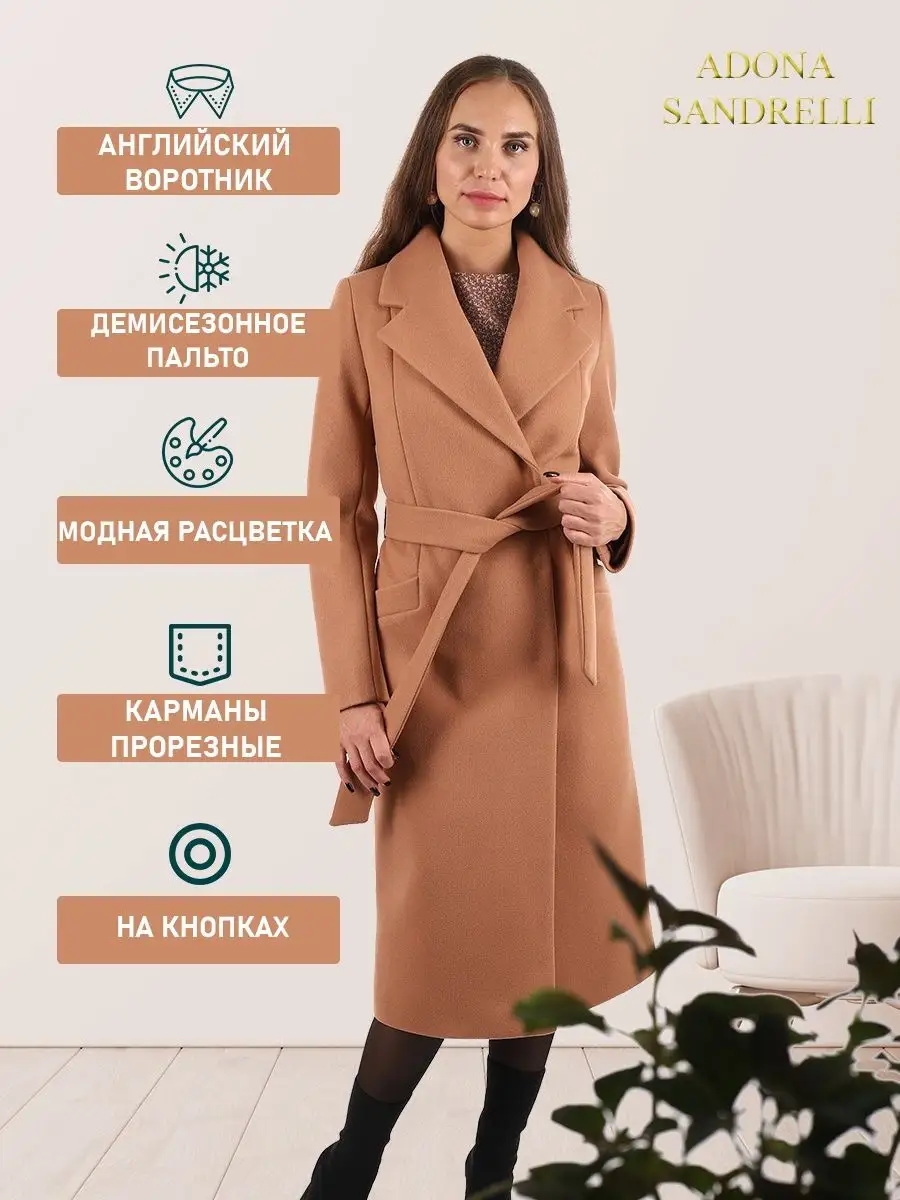 Описание: Универсальное и функциональное пальто-халат станет неотъемлемой вещью в осенне-весенний период. Длина пальто по спинке, для всех размеров 112 см. (+ - 3%). Температурный режим от +10 до -5 градусов. Особенностью модели является дышащий материал. Выполнено из драпа. Застежка на кнопки. Прямой лаконичный силуэт с прорезными карманами и отложным воротником. Шлица для удобства ходьбы. Рост девушки модели 174 см. Дорогие наши покупательницы! Мы, производитель пальто Adona Sandrelli, не торгуем со своего склада. Все наши пальто хранятся на складах WB и уже оттуда отправляются к Вам, на основании заявок от Вас. Мы не задерживаем отправку к Вам наших пальто, так как не можем на это повлиять. При отправке товара мы не путаем наши пальто с чужими товарами, так как у нас нет других товаров, кроме наших пальто. Мы не делаем пересортицу по моделям, размерам и расцветкам пальто, так как мы не формируем отправки к Вам. Мы не производим переупаковку наших пальто на складах WB в комок, замотанный скотчем, так у нас нет доступа к складам WB. Мы не удерживаем с Вас стоимость возвратов, точно так же, как и не выдаём Вам чек о покупке нашего пальто, так как это не мы продали Вам пальто Adona Sandrelli. Мы не теряем наши пояса, потому что перед отправкой в WB наша продукция проходит ОТК. Мы не пачкаем наши пальто перед отправкой. Мы не отрываем пуговицы «с мясом» от наших пальто. Мы не эксплуатируем наши пальто перед отправкой в WB. Надеемся, в случае возникновения проблем, Вы оформите пальто как брак, для изъятия из оборота, или как минимум, напишите обращение в техподдержку WB, иначе оно отправиться к другому покупателю. Для нас важно, чтобы каждая наша покупательница осталась довольна покупкой и собой. Со склада производителя Adona Sandrelli, пальто отправляются в полной комплектации и в идеальном виде - отпаренные и упакованные в запаянные полиэтиленовые чехлы, с индивидуальной вешалкой, в состоянии «получила, надела, ушла с улыбкой».