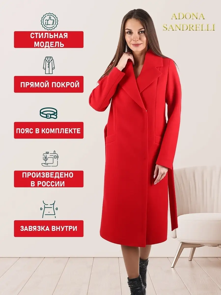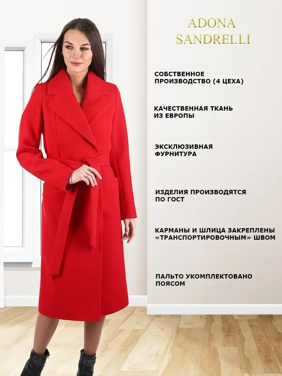 Описание: Универсальное и функциональное пальто-халат станет неотъемлемой вещью в осенне-весенний период. Длина пальто по спинке, для всех размеров 112 см. (+ - 3%). Температурный режим от +10 до -5 градусов. Особенностью модели является дышащий материал. Выполнено из драпа. Застежка на кнопки. Прямой лаконичный силуэт с прорезными карманами и отложным воротником. Шлица для удобства ходьбы. Рост девушки модели 174 см. Дорогие наши покупательницы! Мы, производитель пальто Adona Sandrelli, не торгуем со своего склада. Все наши пальто хранятся на складах WB и уже оттуда отправляются к Вам, на основании заявок от Вас. Мы не задерживаем отправку к Вам наших пальто, так как не можем на это повлиять. При отправке товара мы не путаем наши пальто с чужими товарами, так как у нас нет других товаров, кроме наших пальто. Мы не делаем пересортицу по моделям, размерам и расцветкам пальто, так как мы не формируем отправки к Вам. Мы не производим переупаковку наших пальто на складах WB в комок, замотанный скотчем, так у нас нет доступа к складам WB. Мы не удерживаем с Вас стоимость возвратов, точно так же, как и не выдаём Вам чек о покупке нашего пальто, так как это не мы продали Вам пальто Adona Sandrelli. Мы не теряем наши пояса, потому что перед отправкой в WB наша продукция проходит ОТК. Мы не пачкаем наши пальто перед отправкой. Мы не отрываем пуговицы «с мясом» от наших пальто. Мы не эксплуатируем наши пальто перед отправкой в WB. Надеемся, в случае возникновения проблем, Вы оформите пальто как брак, для изъятия из оборота, или как минимум, напишите обращение в техподдержку WB, иначе оно отправиться к другому покупателю. Для нас важно, чтобы каждая наша покупательница осталась довольна покупкой и собой. Со склада производителя Adona Sandrelli, пальто отправляются в полной комплектации и в идеальном виде - отпаренные и упакованные в запаянные полиэтиленовые чехлы, с индивидуальной вешалкой, в состоянии «получила, надела, ушла с улыбкой».