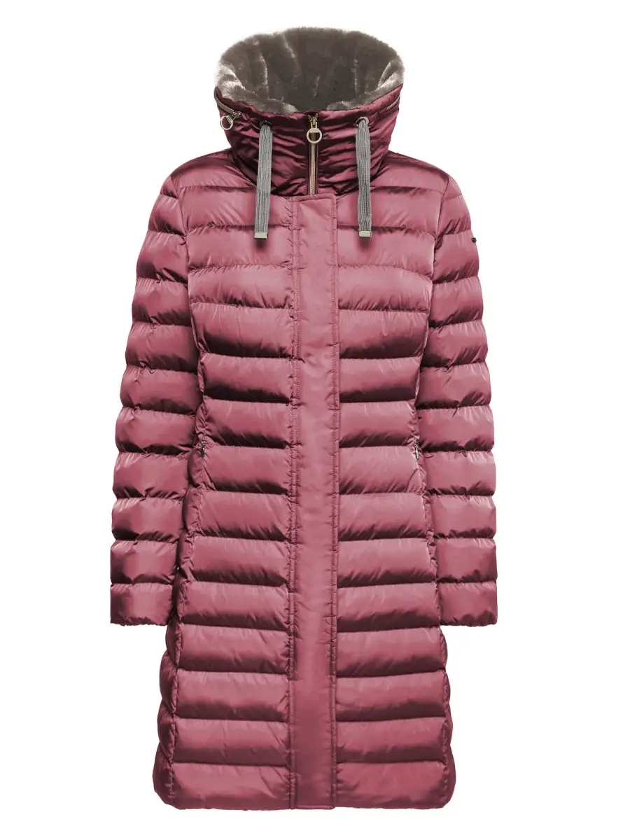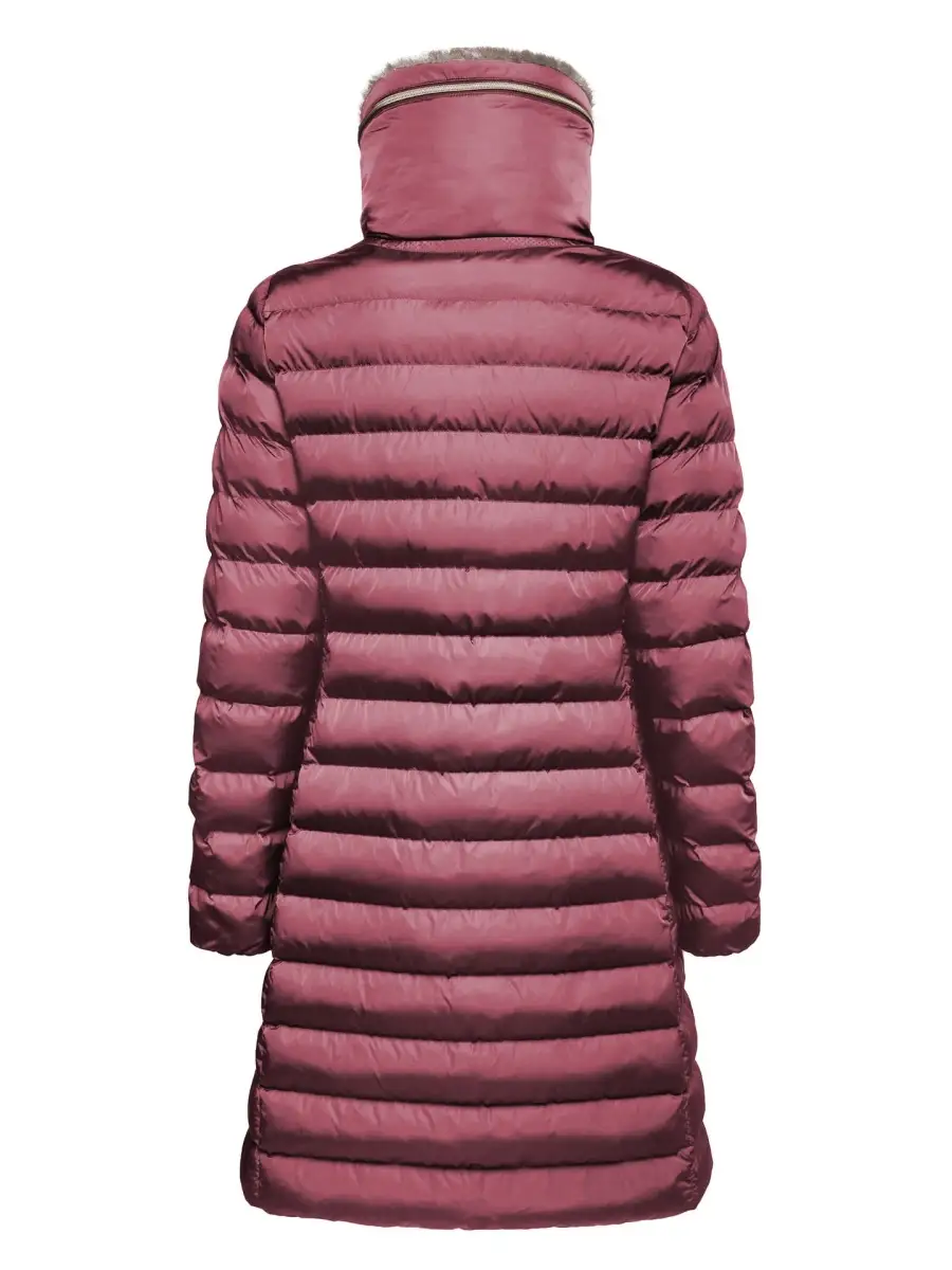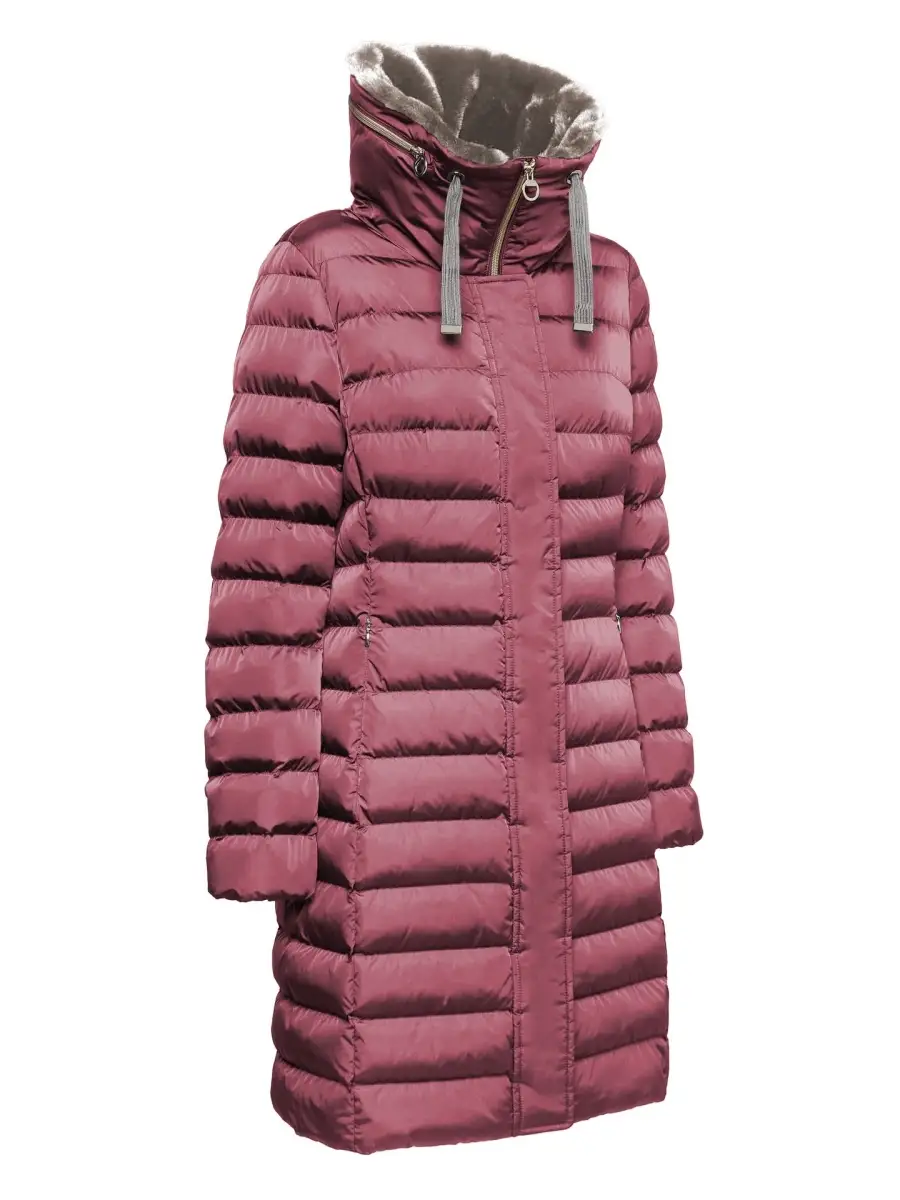 Описание: Удлиненная зимняя куртка SEYLA с очень женственным силуэтом и практичным дизайном. Модель утеплена экологичным материалом из переработаных волокон полиэстера плотностью 300 г/м2. Ткань верха - водоотталкивающий блестящий нейлон. У куртки высокий уютный ворот с несъемным эко мехом. Ворот регулируется с помощью стильных завязок, а под молнией в нём спрятан капюшон. Застежка на молнию с двумя бегунками и кнопки. Фурнитура из светло-золотистого металла. Один внутренний карман и два наружных на молнии.