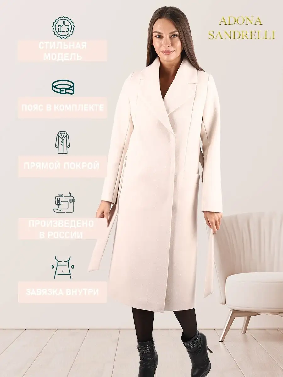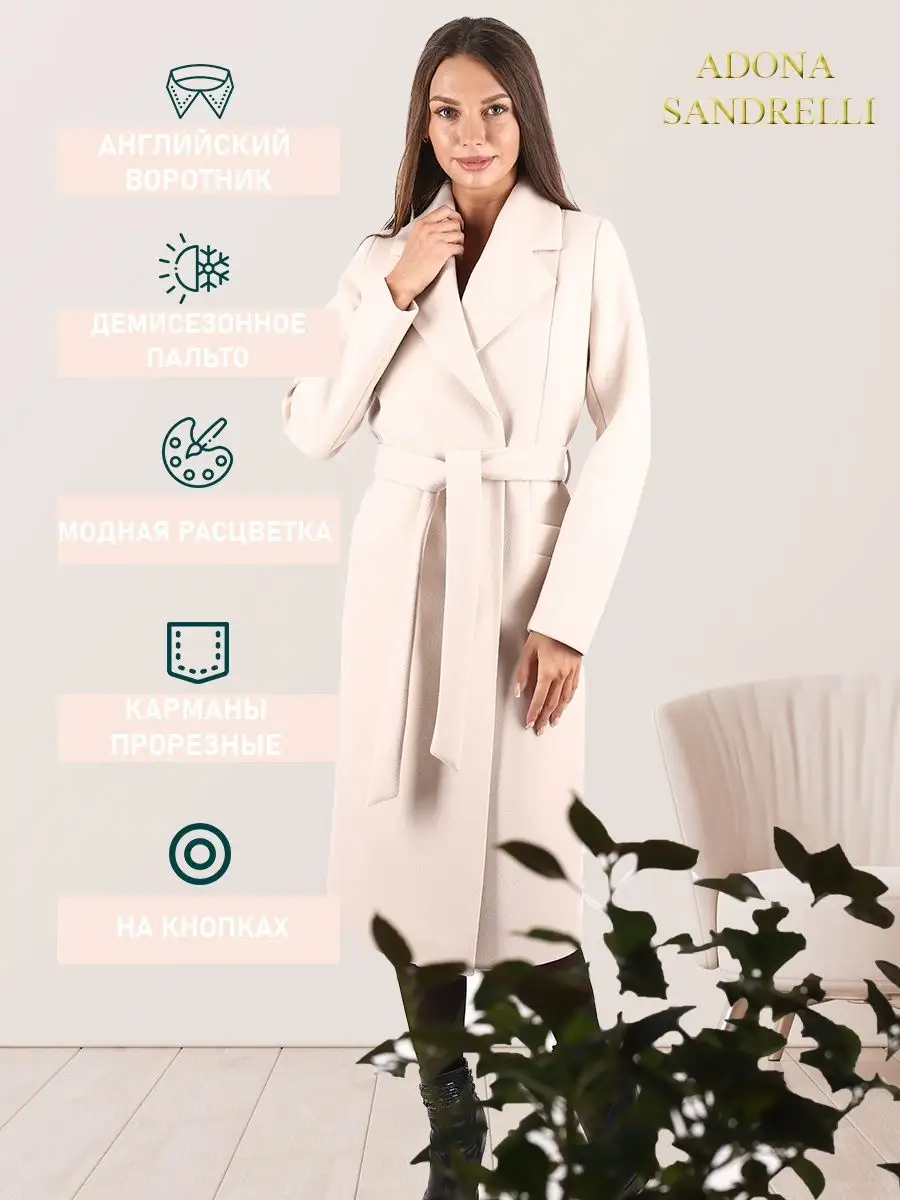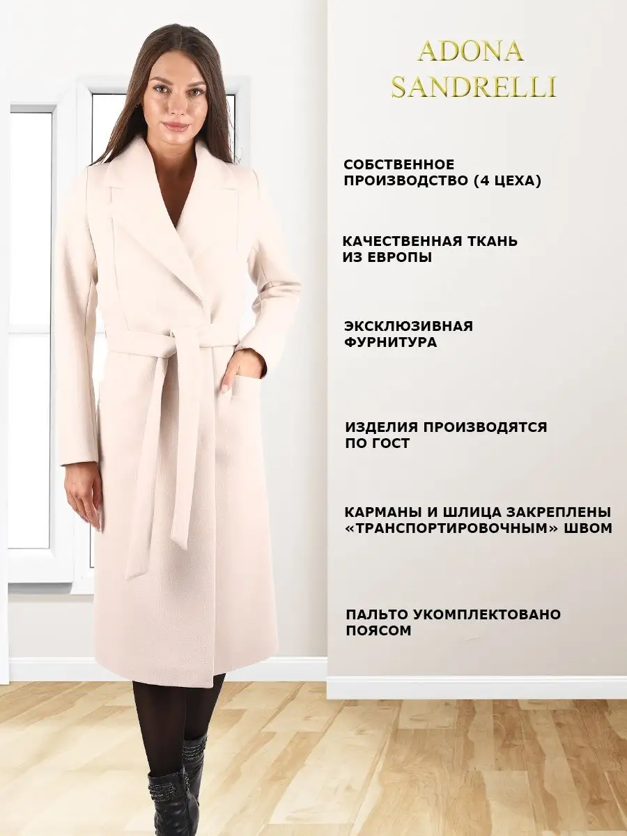 Описание: Универсальное и функциональное пальто-халат станет неотъемлемой вещью в осенне-весенний период. Длина пальто по спинке, для всех размеров 112 см. (+ - 3%). Температурный режим от +10 до -5 градусов. Особенностью модели является дышащий материал. Выполнено из драпа. Застежка на кнопки. Прямой лаконичный силуэт с прорезными карманами и отложным воротником. Шлица для удобства ходьбы. Рост девушки модели 174 см. Дорогие наши покупательницы! Мы, производитель пальто Adona Sandrelli, не торгуем со своего склада. Все наши пальто хранятся на складах WB и уже оттуда отправляются к Вам, на основании заявок от Вас. Мы не задерживаем отправку к Вам наших пальто, так как не можем на это повлиять. При отправке товара мы не путаем наши пальто с чужими товарами, так как у нас нет других товаров, кроме наших пальто. Мы не делаем пересортицу по моделям, размерам и расцветкам пальто, так как мы не формируем отправки к Вам. Мы не производим переупаковку наших пальто на складах WB в комок, замотанный скотчем, так у нас нет доступа к складам WB. Мы не удерживаем с Вас стоимость возвратов, точно так же, как и не выдаём Вам чек о покупке нашего пальто, так как это не мы продали Вам пальто Adona Sandrelli. Мы не теряем наши пояса, потому что перед отправкой в WB наша продукция проходит ОТК. Мы не пачкаем наши пальто перед отправкой. Мы не отрываем пуговицы «с мясом» от наших пальто. Мы не эксплуатируем наши пальто перед отправкой в WB. Надеемся, в случае возникновения проблем, Вы оформите пальто как брак, для изъятия из оборота, или как минимум, напишите обращение в техподдержку WB, иначе оно отправиться к другому покупателю. Для нас важно, чтобы каждая наша покупательница осталась довольна покупкой и собой. Со склада производителя Adona Sandrelli, пальто отправляются в полной комплектации и в идеальном виде - отпаренные и упакованные в запаянные полиэтиленовые чехлы, с индивидуальной вешалкой, в состоянии «получила, надела, ушла с улыбкой».