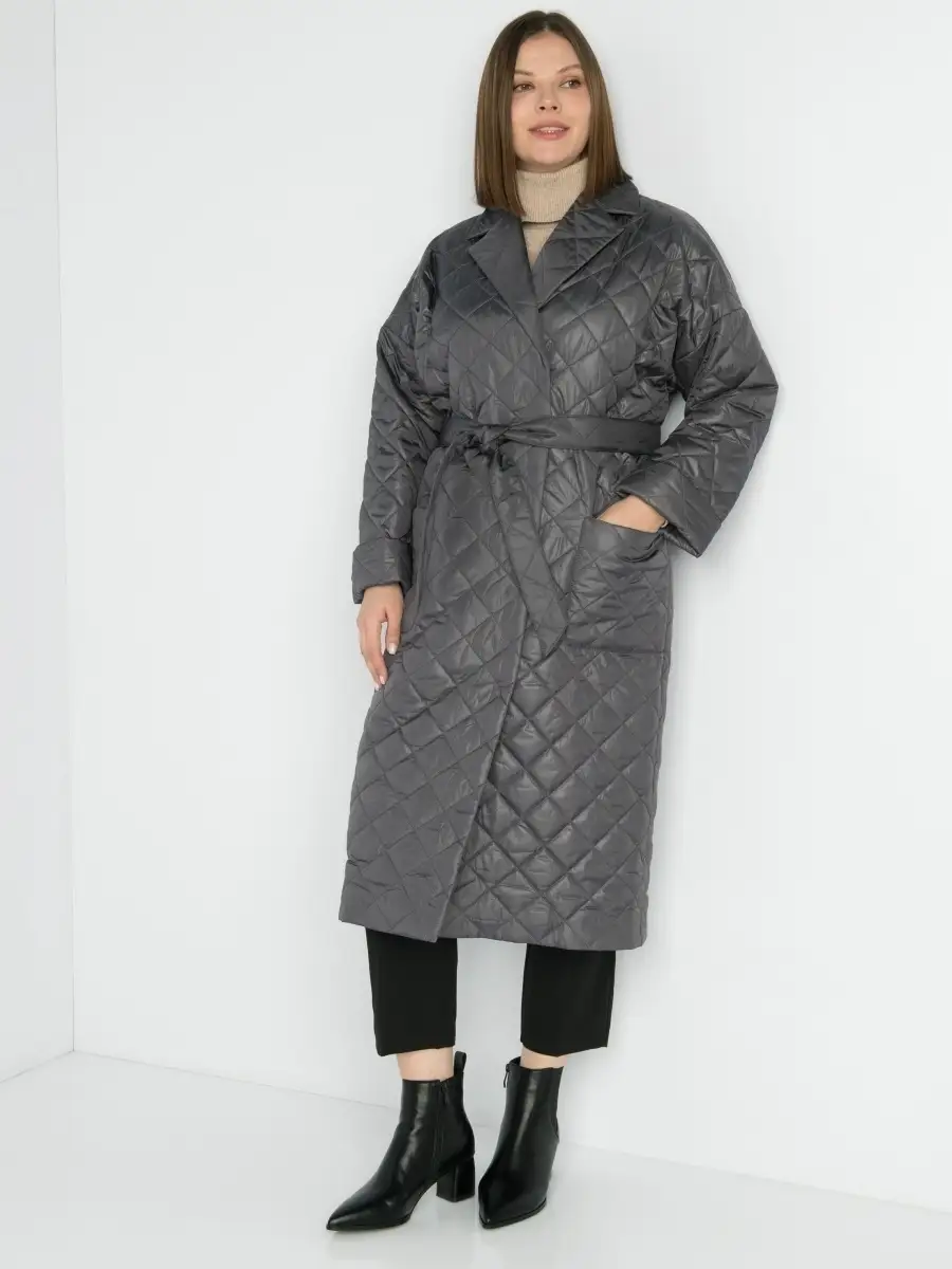 Описание: Трендовое пальто - халат свободного кроя из лёгкой плащевой ткани, стёганой с синтепоном. Комфортный спущенный покрой рукава с возможностью подворота, мягкая линия плеча. Классический английский воротник . Удобная застёжка на кнопки, карманы - накладные. В комплекте пояс из ткани верха. Несмотря на свободный лаконичный крой, фигура в этом пальто не выглядит громоздкой, а, наоборот, смотрится хрупкой и женственной! Пальто идеально подходит на фигуру верхнего типа. Рекомендуем подбирать размер по промерам с фото. Еще больше пальто и курток на нашей странице, жмите на логотип Tirella City и переходите. Подпишитесь на наши обнавления нажав на сердечко..