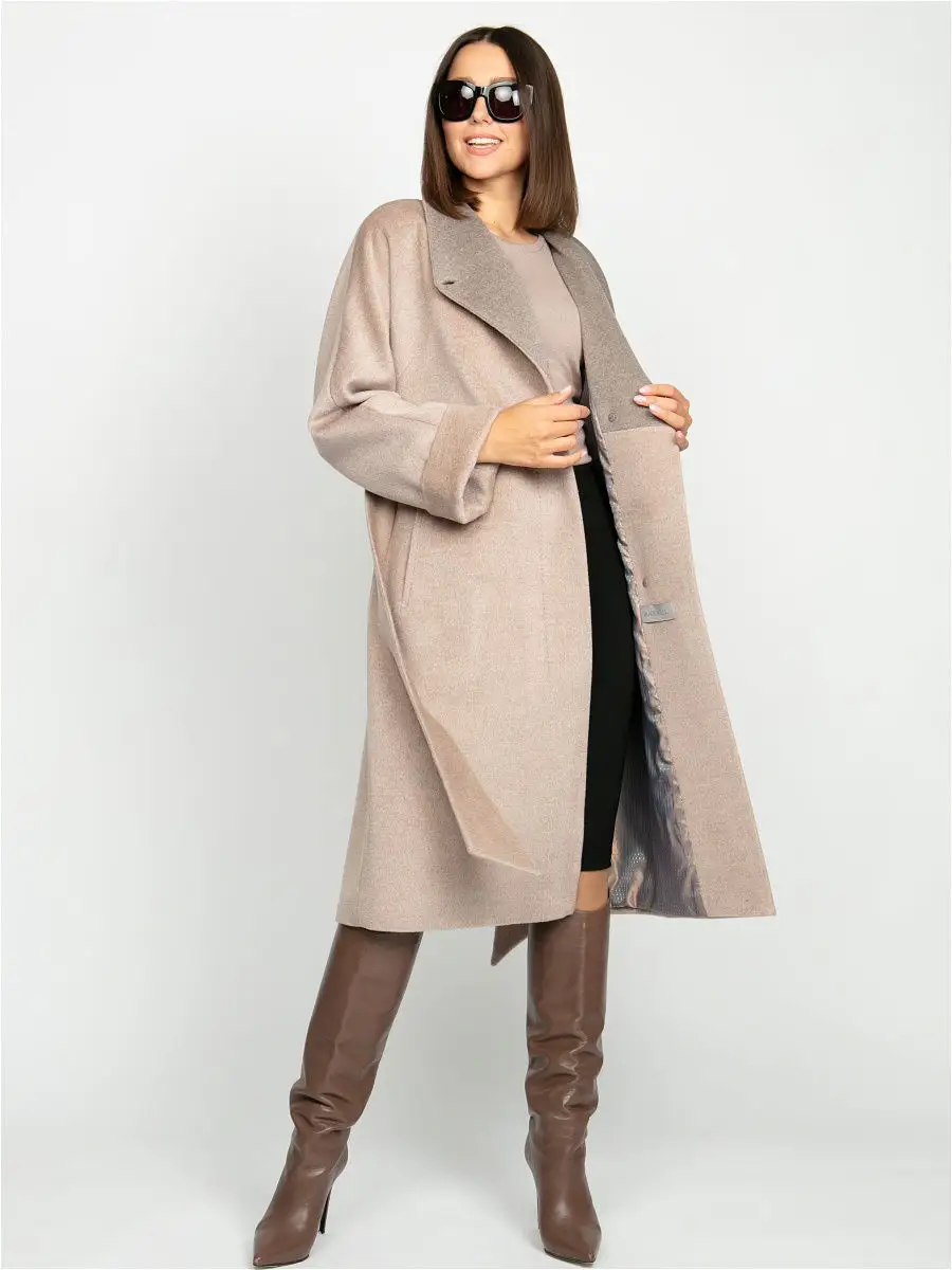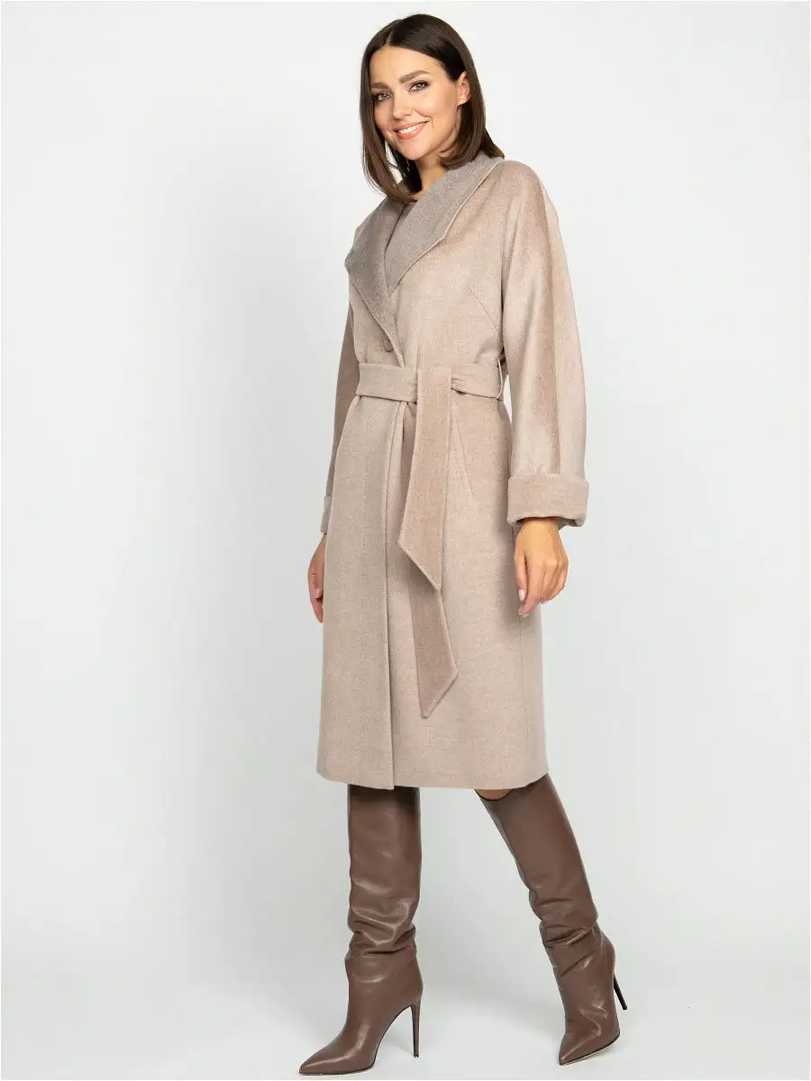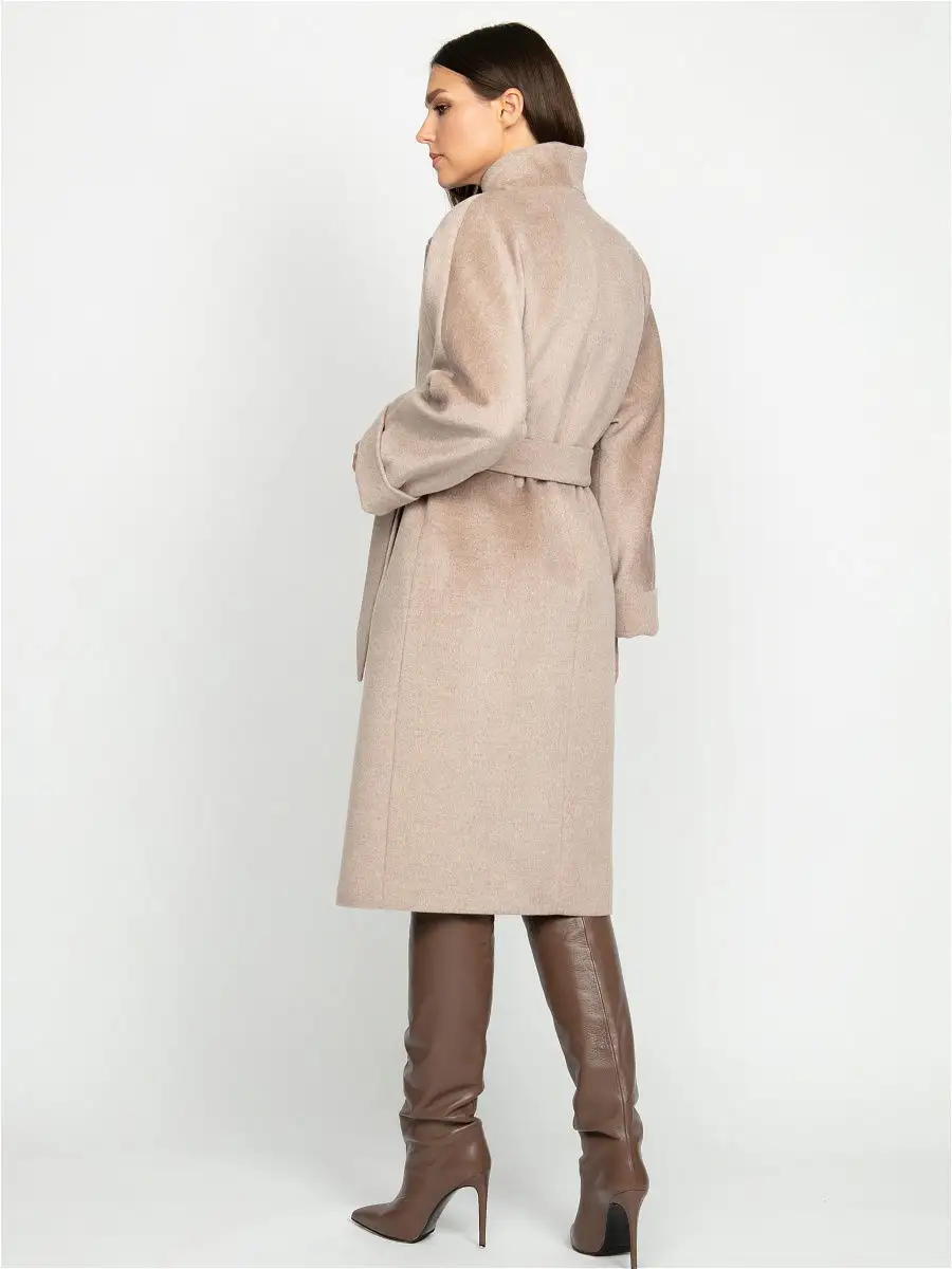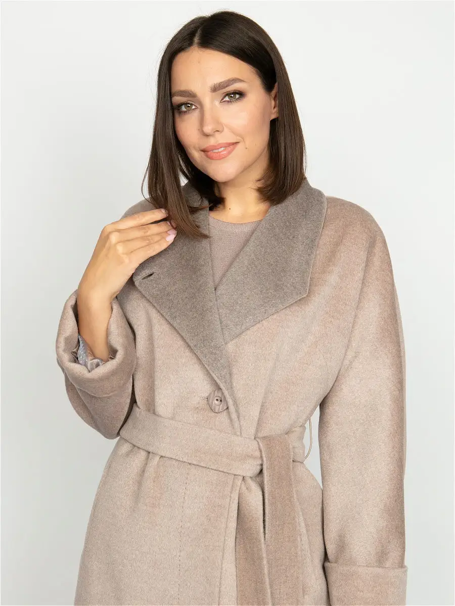 Описание: Размер изделия на фото 44. Рост модели 172 см. Параметры модели 86-61-92. Силуэт полуприлегающий. Детали: цельнокроеный рукав, воротник-апаш выполнен из отделочной ткани, застежка на пуговицах, карманы. Модель декорирована отделочной строчкой, имитирующей ручной стежок, жаккардовая поливискозная подкладка, пояс.