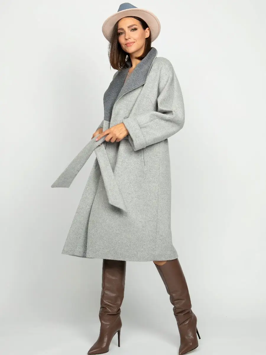 Описание: Размер изделия на фото 44. Рост модели 172 см. Параметры модели 86-61-92. Силуэт полуприлегающий. Детали: цельнокроеный рукав, воротник-апаш выполнен из отделочной ткани, застежка на пуговицах, карманы. Модель декорирована отделочной строчкой, имитирующей ручной стежок, жаккардовая поливискозная подкладка, пояс.