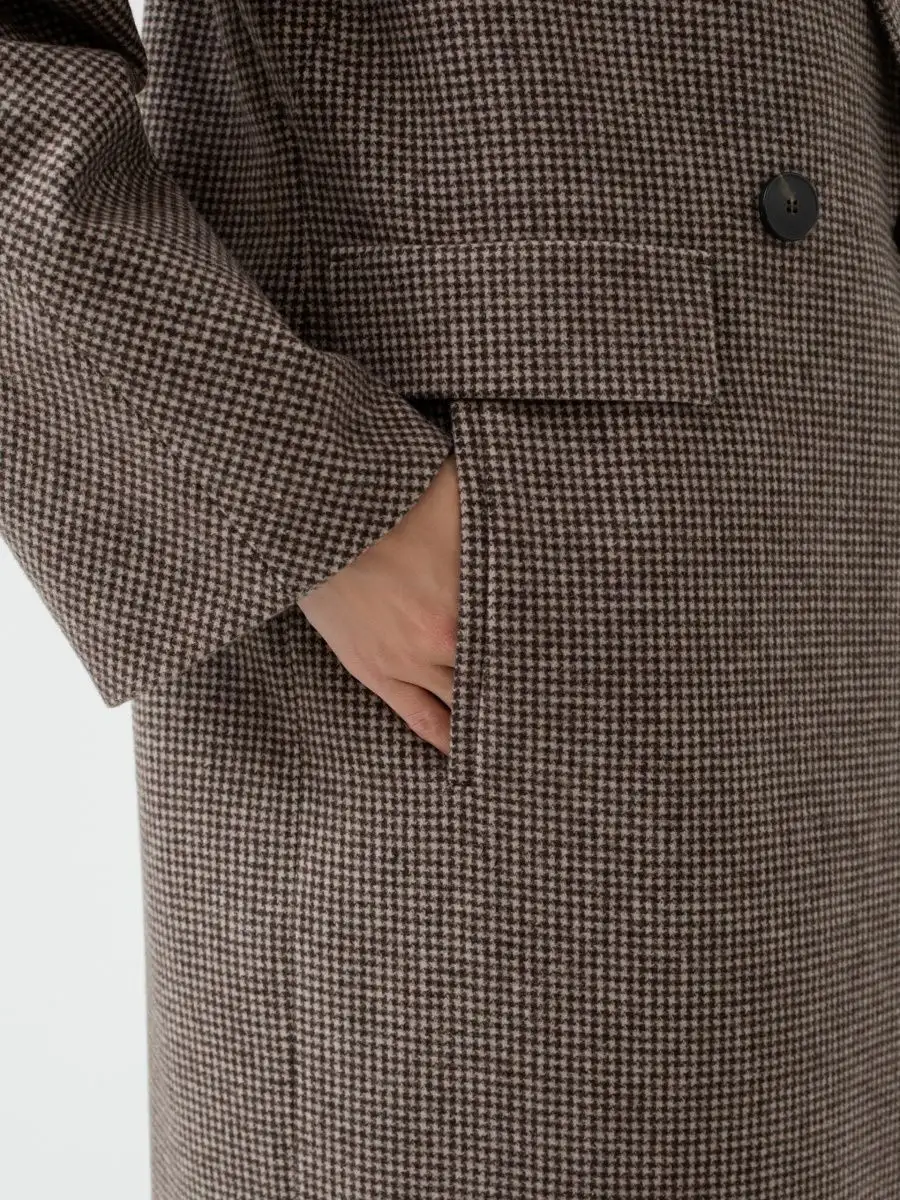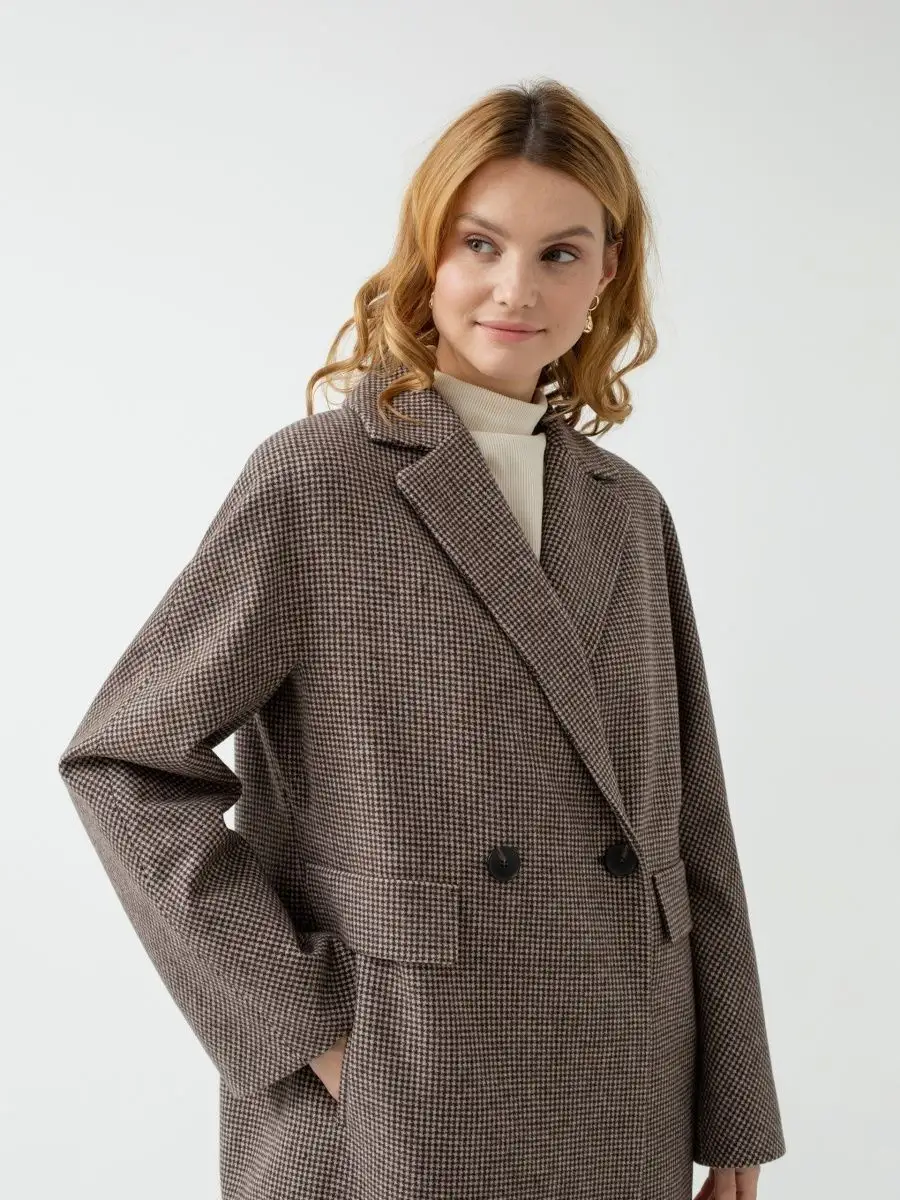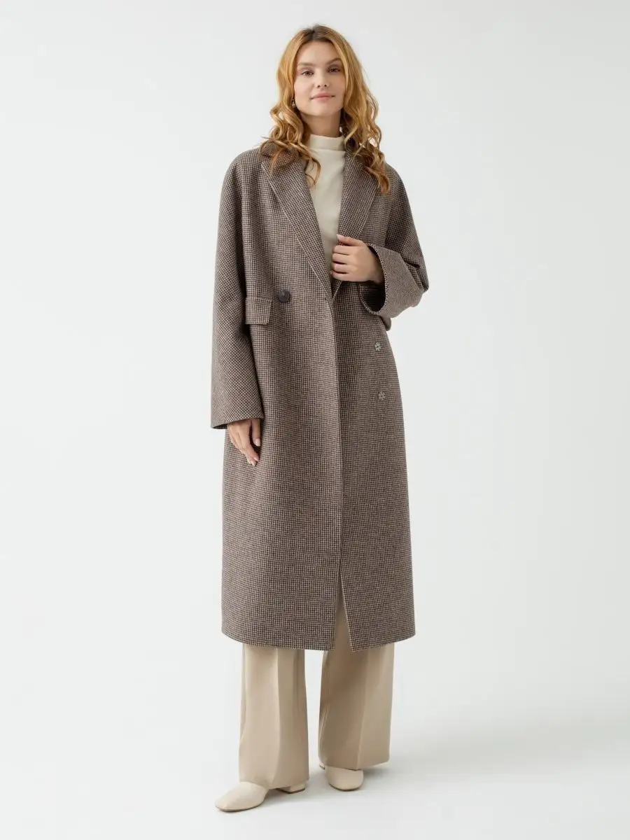 Описание: Женское пальто еврозима двубортное теплое силуэта "удлиненный кокон" без пояса выполнено из премиальной шерстяной ткани в бежево-коричневом цвете в принт пье-де-пуль. Стильный и комфортный рукав-кимоно позволяет носить многослойные образы и не стесняет движение. Рукав имеет широкую подгибку низа, можно плдвернуть на необходимую высоту. Пальто застегивается на две крупные пуговицы под натуральный рог. Длина миди фасон легко сочетаются не только с платьями и юбками, но также с деловыми костюмами и джинсами, спортивными костюмами. Произведено в Санкт-Петербурге с использованием запатентованной высокотехнологичной мембраны Raft Pro, надежно защищающей от ветра и влаги. Пальто отлично комбинируется с кожаными брюками, костюмами из плотного трикотажа, вязаными свитерами, оверсайз пиджаками и воздушными платьями. Модную верхнюю одежду Pompa можно найти по запросам: зимнее весеннее осеннее классика теплое вязаное кожаное прямое стеганное полных короткое свободное оверсайз девочки пуховик куртка меховое шерсть светлое темное белое серое черное бежевое синее красное зеленое молочное коричневое розовое голубое кокон чебурашка с мехом плюшевое искусственный драповое синтепон клетка укороченное кашемир полуприлегающее летнее талии бедра тедди халат экомех шерстяное приталенное искусственным больших легкое альпака твид букле натуральное невысоких яркое размеров. Модель станет свободной альтернативой дутым стеганым курткам, тренчам и косухам из экокожи, а современный крой сделает силуэт безупречным. И вы всегда будете в центре внимания.