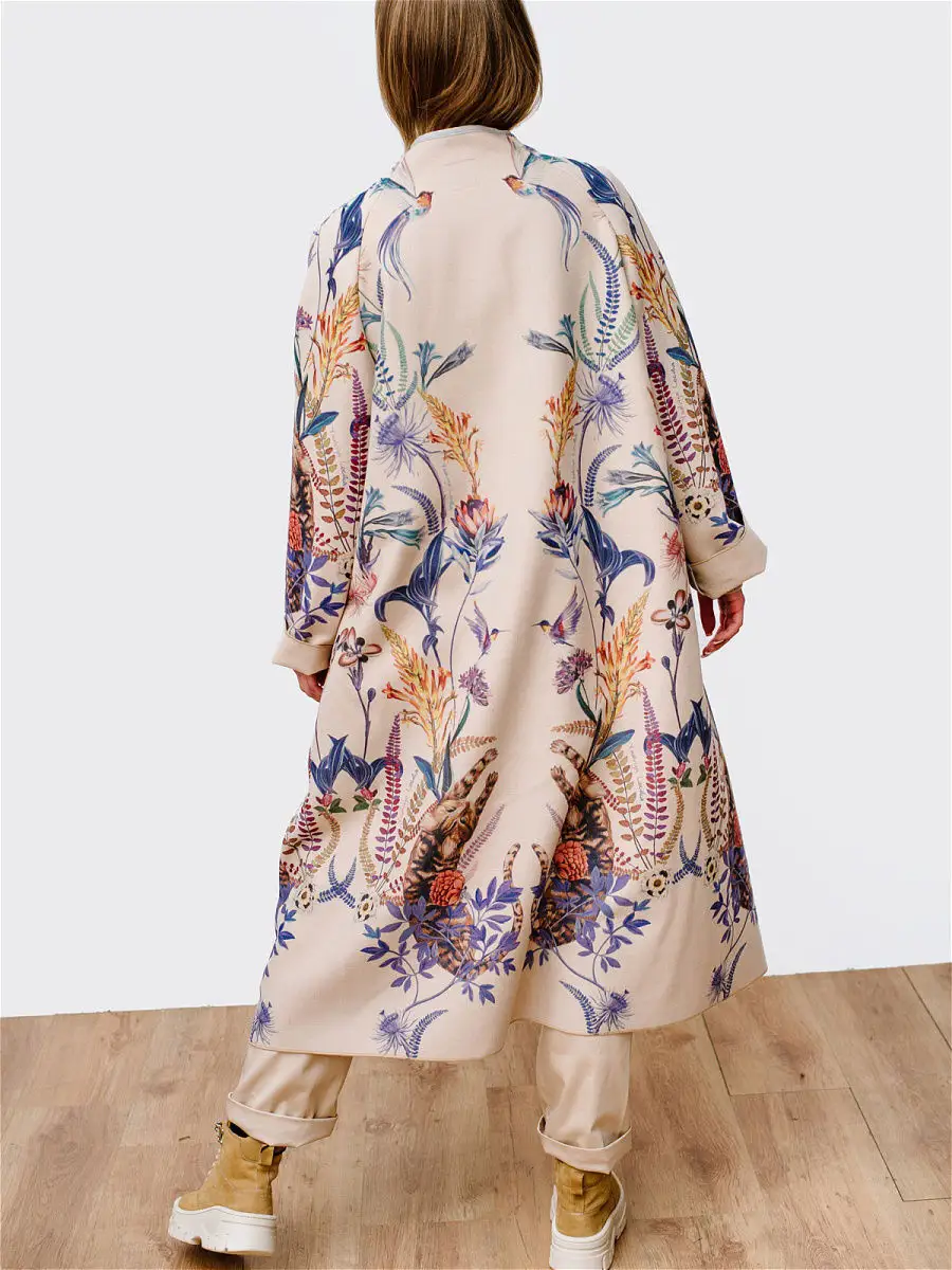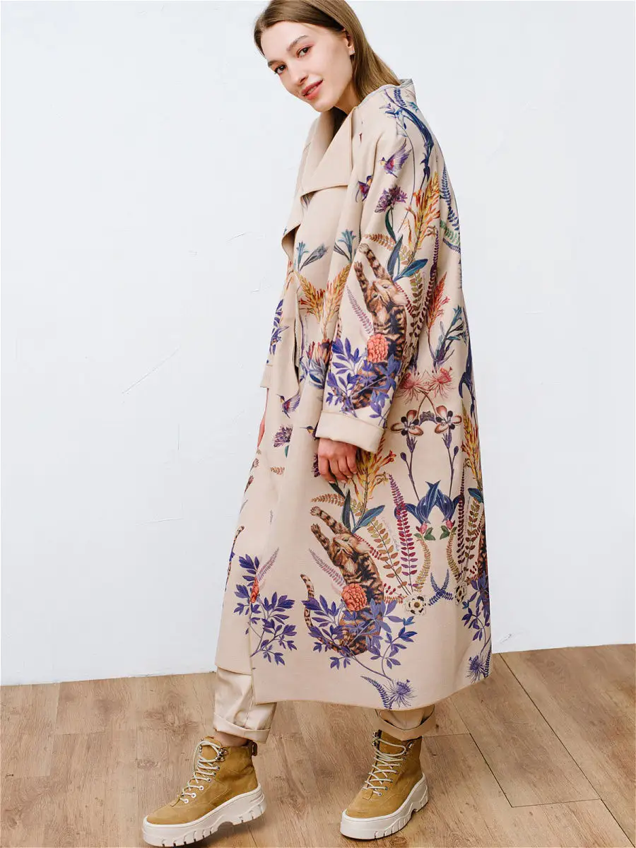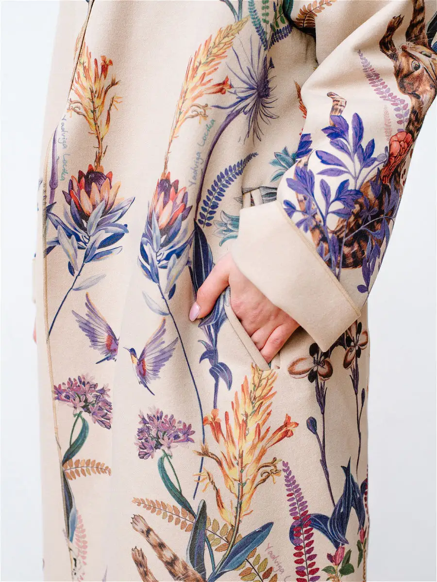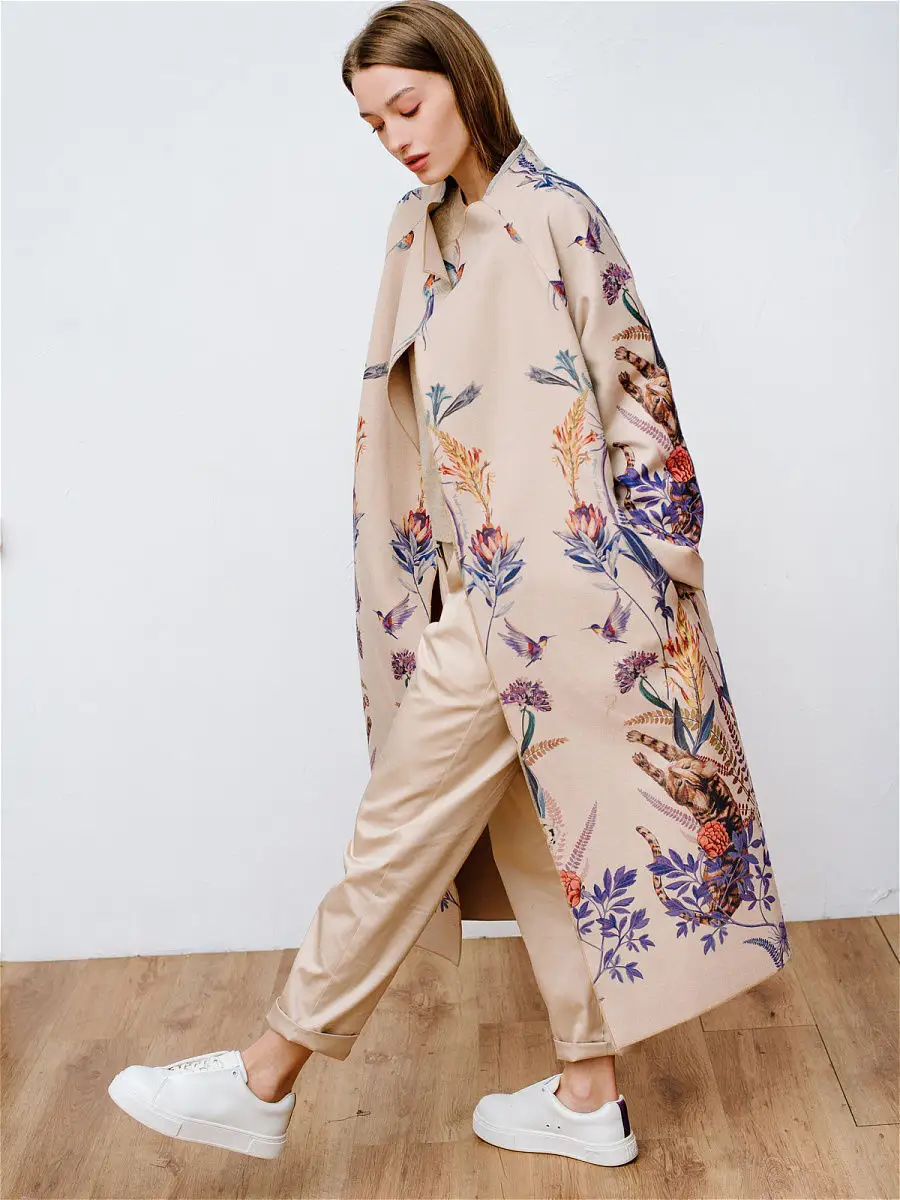 Описание: Легкое женское пальто кроя оверсайз из вискозы на лето, теплую весну и осень. Ткань мягкая приятная на ошупь, но плотная. Края пальто окантованы нитью. Есть карманы, пояс в комплекте. На ткани фирменный принт Yadviga Locika с котиками и цветами. Можно стирать в стиральной машине. Пальто отлично подойдет с кроссовками, кедами и туфлями, брюками и юбками, можно носить в офис, на прогулку, на праздник или свидание. Состав: 50% вискоза, 50% полиэстер.