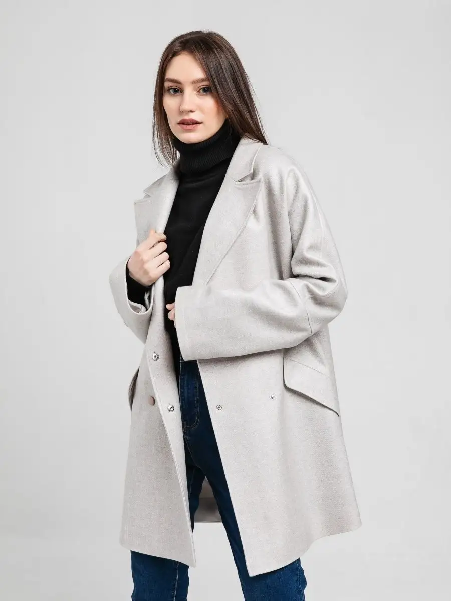 Описание: Тренд на свободные и расслабленные силуэты по-прежнему актуален осенью и весной. Такой фасон выглядит стильно, непринужденно и подходит практически любому типу фигуры. Авторское двубортное укороченное до 84см пальто современного покроя трапеция от VALANDY оценят любители стиля Casual и автоледи. Широкие рукава, боковые шлицы на декоративных кнопках и расширение книзу позволяет носить кашемировый кардиган с брюками и джинсами, позволяет комфортно управлять авто. Цельнокроеная линия плеча и просторная форма прекрасно смотрится как на невысоких, так и на стройных. Высококачественная подкладочная ткань обеспечивает удобство надевания и долговечность изделия. Не забудьте перед эксплуатацией освободить прорезные карманы с клапаном от защитной технической строчки! Осеннее тонкое короткое до колена полупальто отлично сочетается с различной обувью как на платформе, так и на каблуке. В большом размерном диапазоне от 42 до 54 для поклонниц оверсайз oversize и обладательниц параметров категории сайз плюс Plus size, беременных и кормящих мам. Демисезонное женское полушерстяное драповое пальто для ранних осенних и поздних весенних дней от 0 до +15. Для более низких температур воздуха и ветреной дождливой погоды выбирайте утепленное стеганое пальто из плащевого материала, куртку или пуховик! При выборе подходящего размера добивайтесь посадки как на изображениях и видео с нашими фотомоделями!