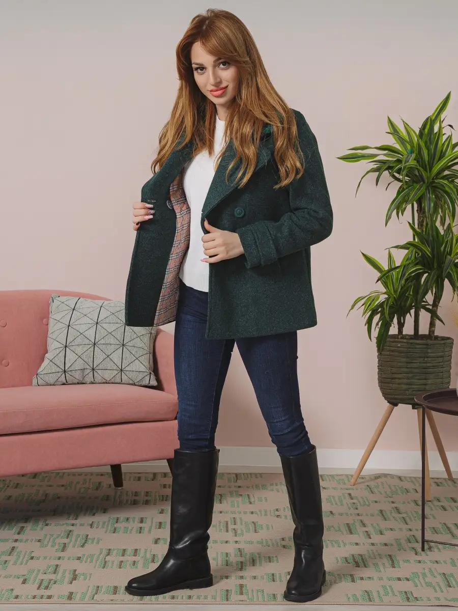 Описание: Короткое пальто женское демисезонное, пальто - пиджак. Приталенный крой. Двубортная застежка с двумя рядами пуговиц. Воротник можно трансформировать в классический английский или в отложной. застегнув все пуговицы. Пальто женское зимнее создано для женщин, ценящих стиль, практичность и удобство в повседневной одежде, наше пальто является универсальным вариантом для демисезонного ношения и зимы в большом городе, наше пальто является уникальным сочетанием комфорта и стиля, оно позволит Вам ощущать себя уютно, стильно и уверенной в себе, оно согреет Вас осенью и морозной зимой, подчеркивая все достоинства и скрывая недостатки. Элегантное утепленное пальто подойдет как для вечерней прогулки, так и для ежедневного ношения в офис, на работу, в школу, в университет. Демисезонная женская куртка изготовлена из экологически чистых материалов. Наполнитель делает пальто максимально теплым.