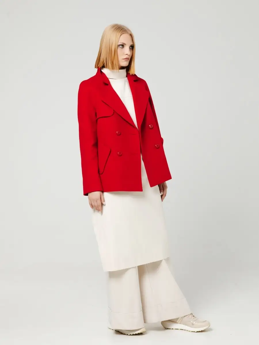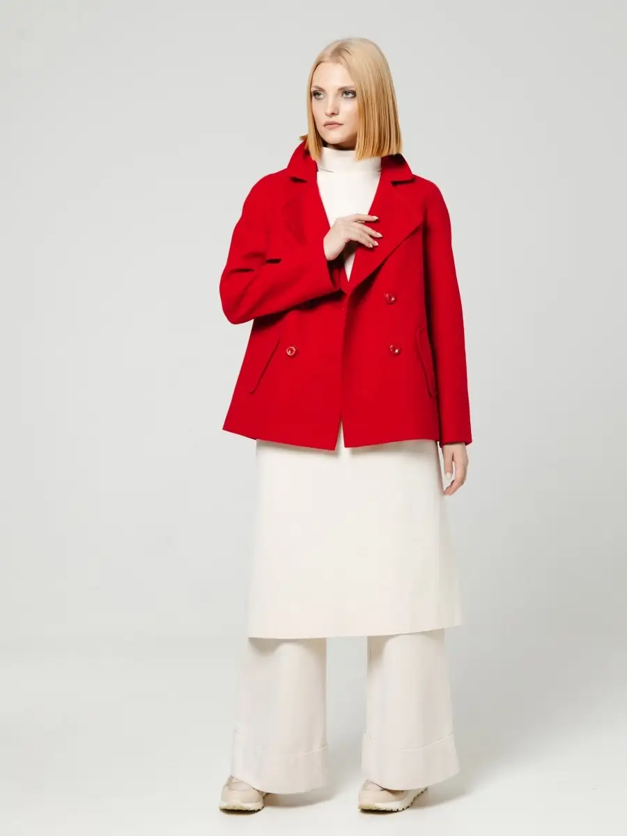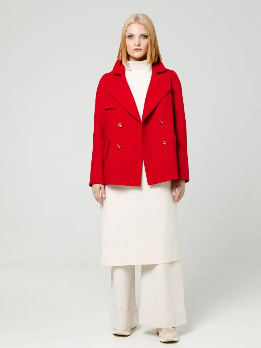 Описание: Лаконичное двубортное женское демисезонное полупальто без пояса. Длина изделия чуть выше линии бедра (средняя 67 см). Рукав реглан, воротник классический, застегивается на пуговицы. Отличительной чертой модели являются отлетные кокетки на спинке и на полочке, они придают неповторимость и элегантность всему образу. Модель имеет удобные прорезные карманы с широкими листочками. На них, как и на большинстве элементов изделия, имеется аккуратная декоративная отстрочка, она подчеркивает линии швов, акцентируя внимание на отдельных деталях. Перед эксплуатацией изделия необходимо освободить карманы от защитных технических швов. Короткое пальто без пояса актуального прямого кроя и безупречной посадкой прекрасно подойдет для всех типов фигур и является отличным решением на сезон весна - лето. Укороченное женское демисезонное пальто пошито из мягкого, тактильно приятного качественного материала с содержанием шерсти, что делает его теплым и комфортным в носке. Ткань гладкая и приятная на ощупь, при правильном уходе изделие прослужит вам не один сезон. Она не продувается, не мнется, хорошо держит тепло и форму. Полупальто выполнено в базовых черном и бежевом, а также в потрясающих красном, небесно-голубом и фисташковом цветах, благодаря чему отлично поддерживает как романтичные, так и повседневные луки, позволяя легко сочетать пальто с различными аксессуарами. Весеннее пальто универсально, оно позволит заменить собой пиджак, надеть его и на красивое, нарядное праздничное платье, и на джинсы или брюки. Базовая верхняя одежда для стильных городских, повседневных и офисных образов.