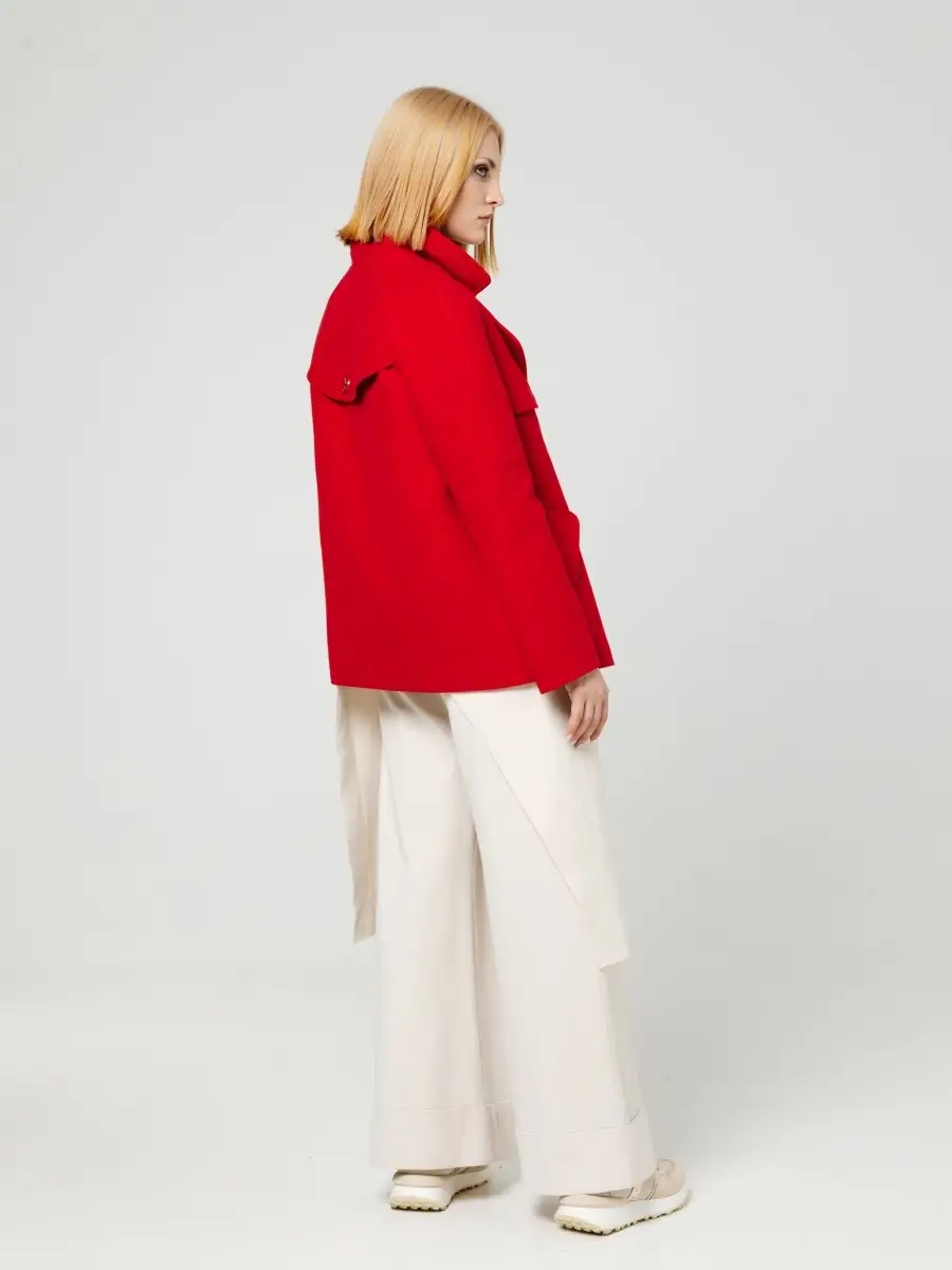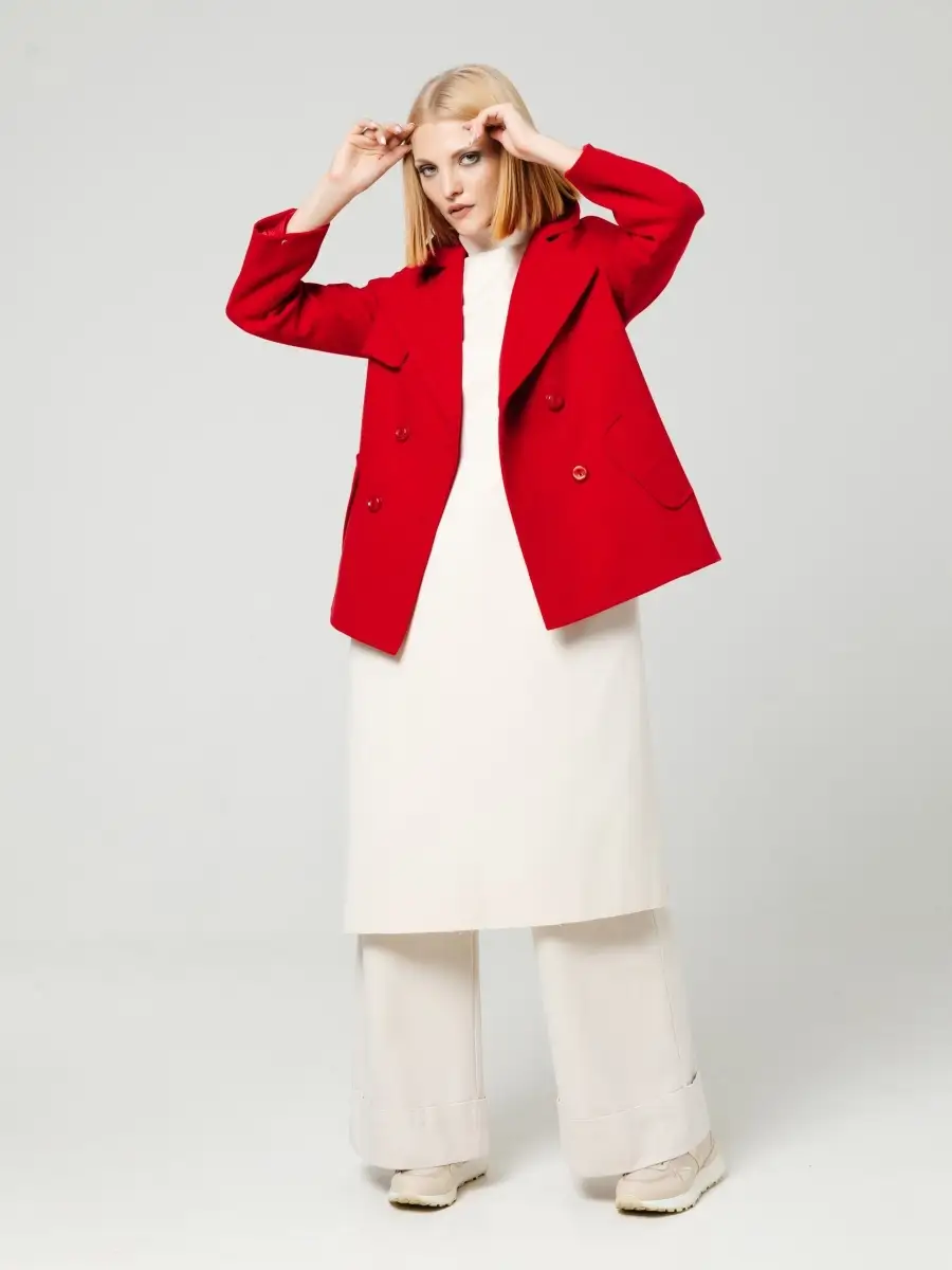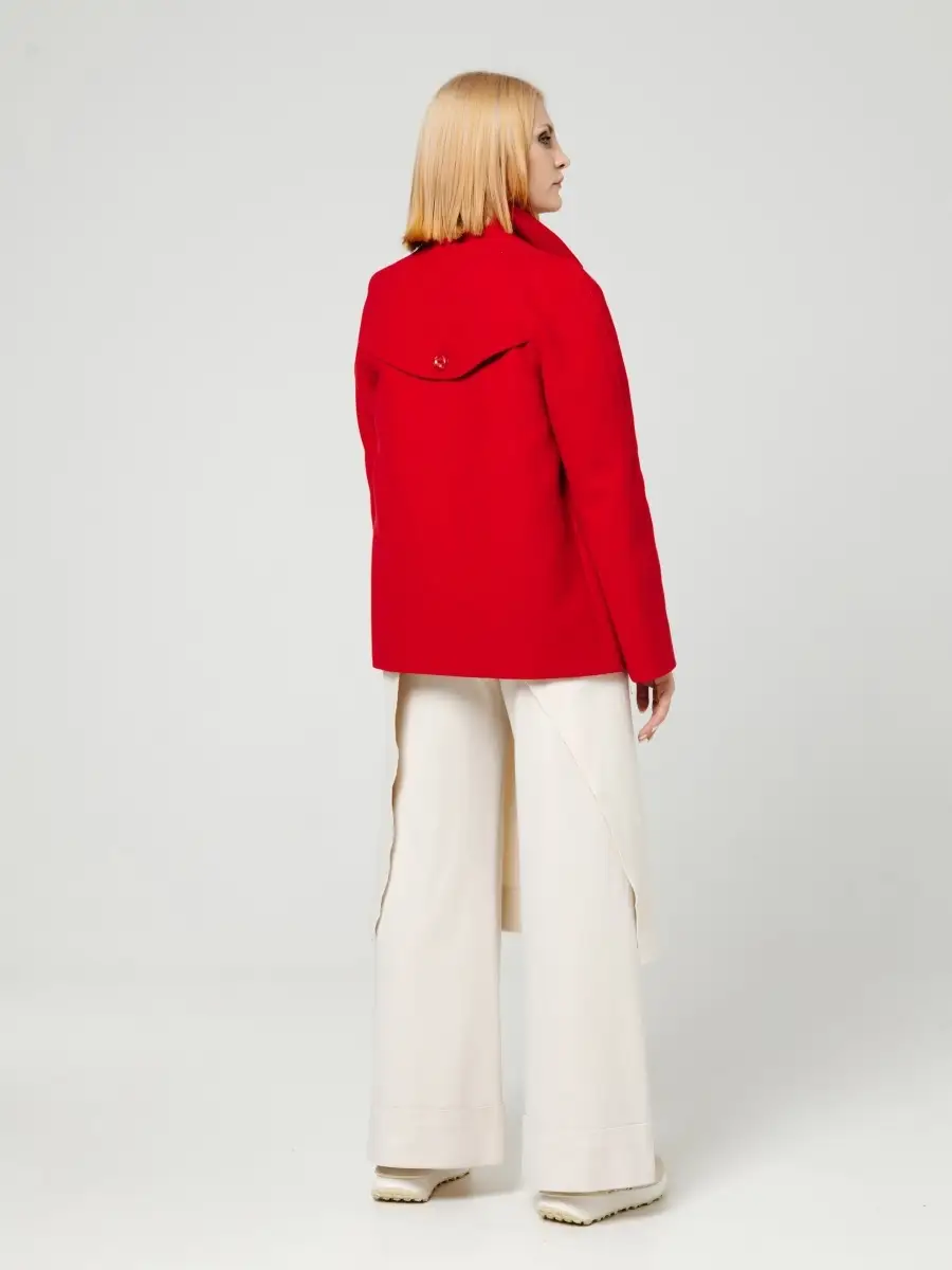 Описание: Лаконичное двубортное женское демисезонное полупальто без пояса. Длина изделия чуть выше линии бедра (средняя 67 см). Рукав реглан, воротник классический, застегивается на пуговицы. Отличительной чертой модели являются отлетные кокетки на спинке и на полочке, они придают неповторимость и элегантность всему образу. Модель имеет удобные прорезные карманы с широкими листочками. На них, как и на большинстве элементов изделия, имеется аккуратная декоративная отстрочка, она подчеркивает линии швов, акцентируя внимание на отдельных деталях. Перед эксплуатацией изделия необходимо освободить карманы от защитных технических швов. Короткое пальто без пояса актуального прямого кроя и безупречной посадкой прекрасно подойдет для всех типов фигур и является отличным решением на сезон весна - лето. Укороченное женское демисезонное пальто пошито из мягкого, тактильно приятного качественного материала с содержанием шерсти, что делает его теплым и комфортным в носке. Ткань гладкая и приятная на ощупь, при правильном уходе изделие прослужит вам не один сезон. Она не продувается, не мнется, хорошо держит тепло и форму. Полупальто выполнено в базовых черном и бежевом, а также в потрясающих красном, небесно-голубом и фисташковом цветах, благодаря чему отлично поддерживает как романтичные, так и повседневные луки, позволяя легко сочетать пальто с различными аксессуарами. Весеннее пальто универсально, оно позволит заменить собой пиджак, надеть его и на красивое, нарядное праздничное платье, и на джинсы или брюки. Базовая верхняя одежда для стильных городских, повседневных и офисных образов.