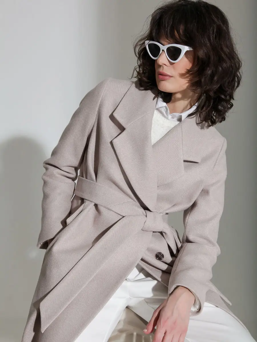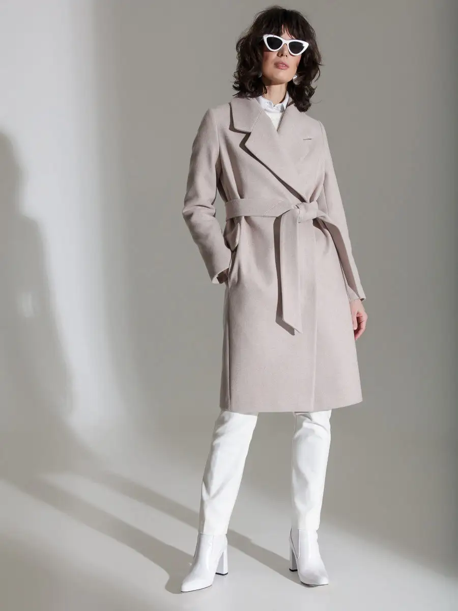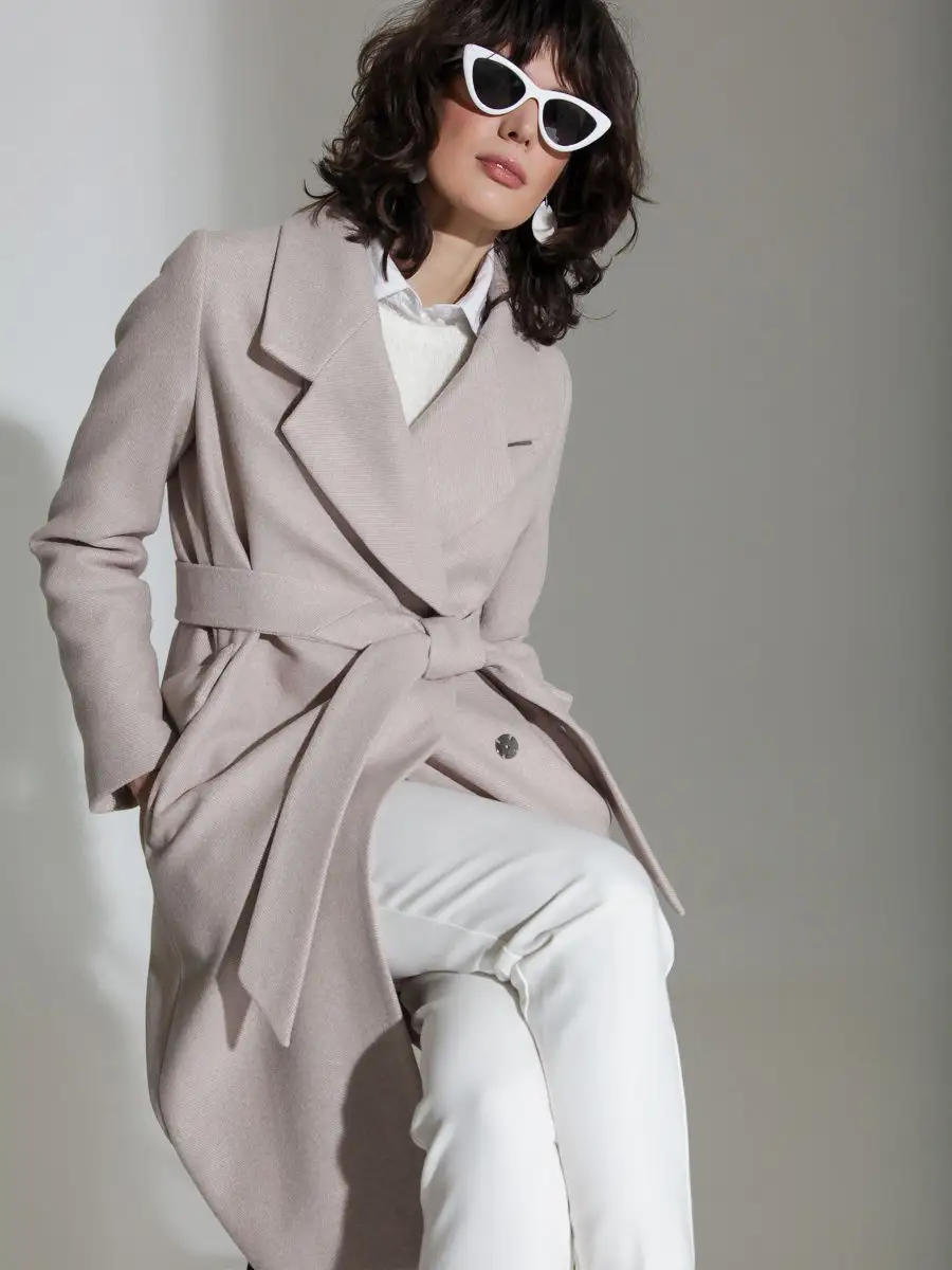 Описание: Элегантное демисезонное женское пальто прямого силуэта с поясом. Осеннее пальто с втачным рукавом, что делает его посадку более классической. В составе материала содержится шерсть, вискоза и полиэстер. Данный состав делает изделие теплым, менее продуваемым и износостойким, не скатывается. Шерстяное пальто подчеркнёт вашу фигуру и создаст элегантный облик.