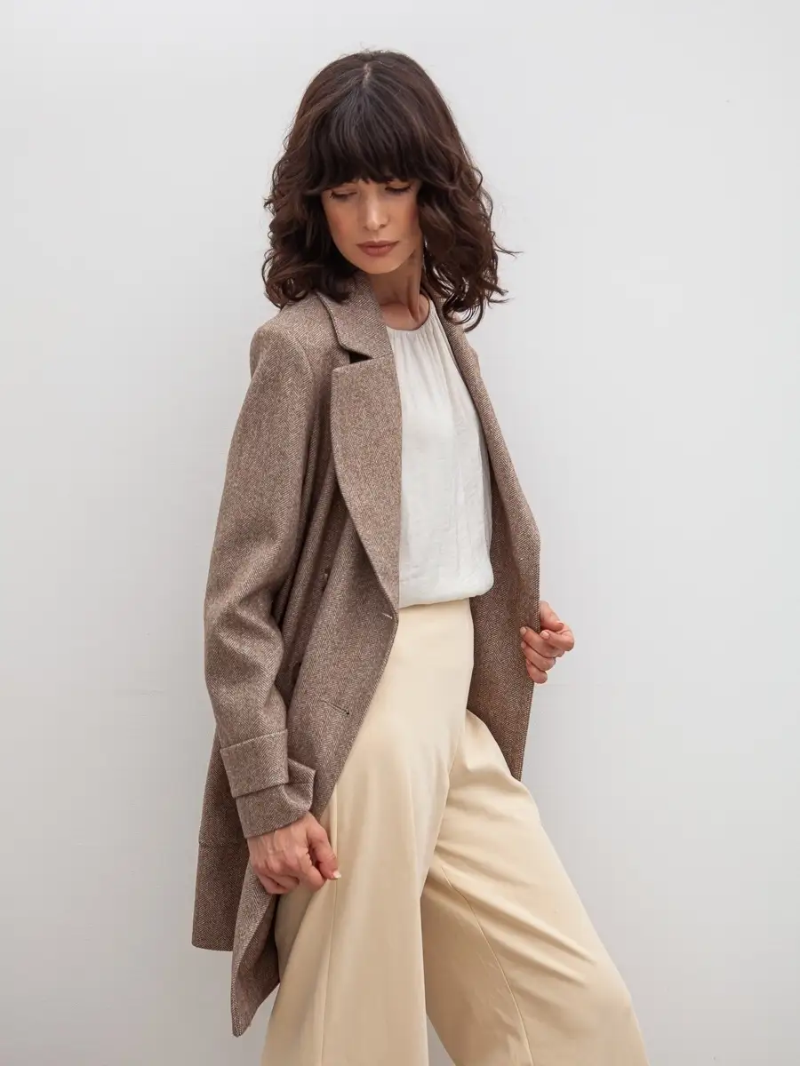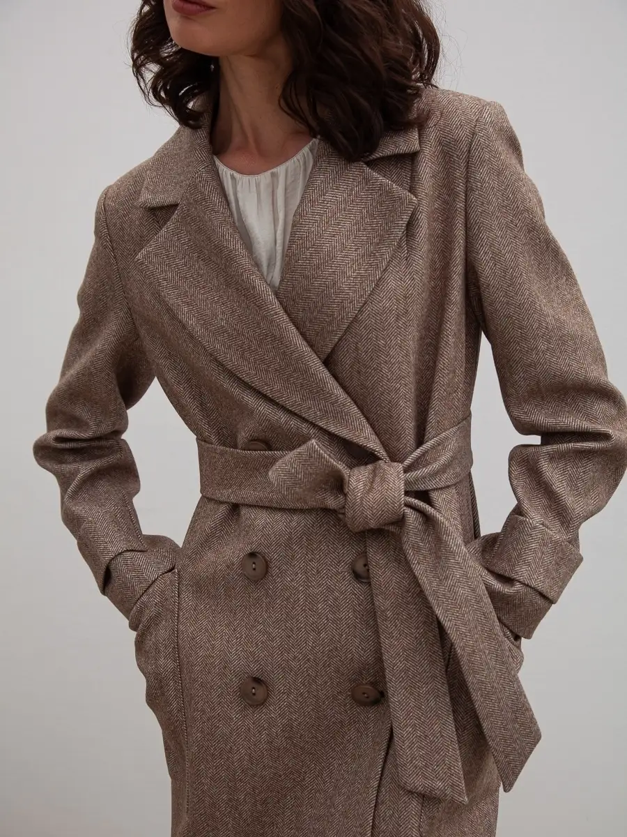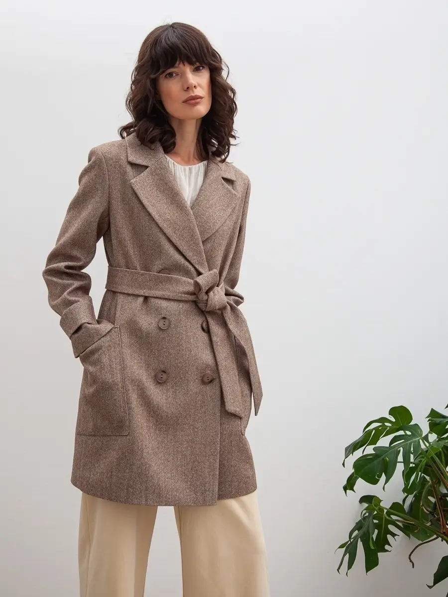 Описание: Стильное, шерстяное женское двубортное пальто. Драповое осеннее полупальто дополнено трендовыми накладными карманами. В составе материала демисезонной модели содержится шерсть, вискоза и полиэстер. Данный состав делает изделия тёплым и износостойким. Женское пальто сочетается как с ботинками, так и с кроссовками. Соответствует таблице размеров.