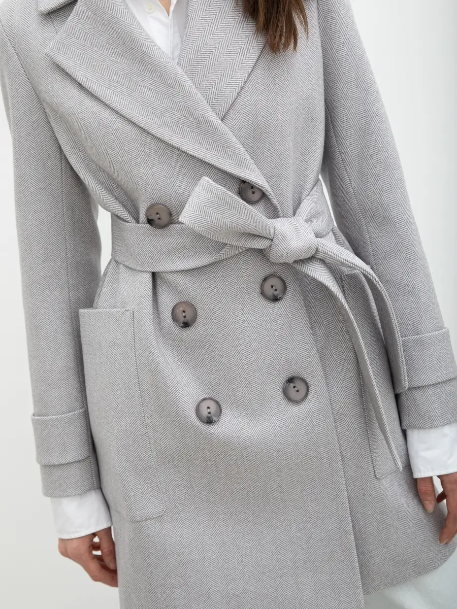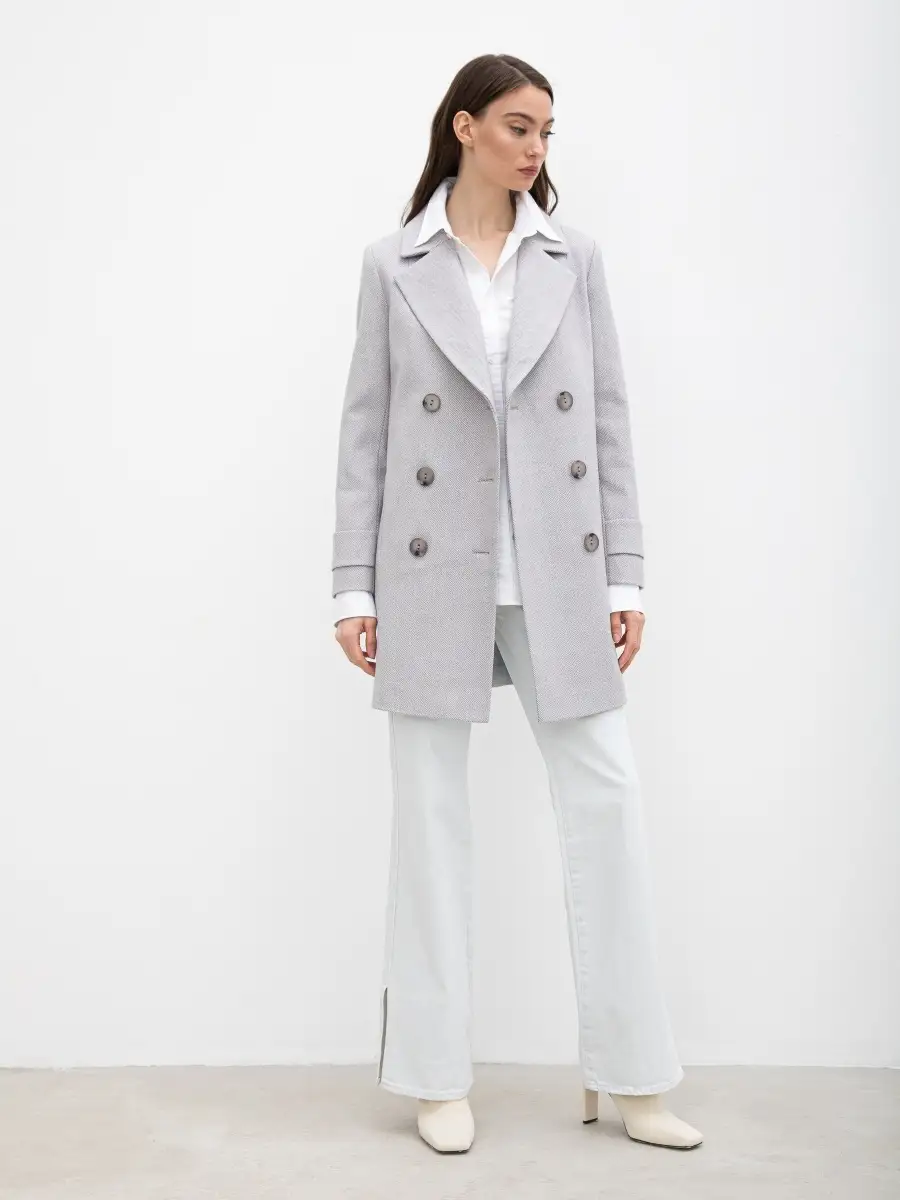 Описание: Стильное, шерстяное женское двубортное пальто. Драповое осеннее полупальто дополнено трендовыми накладными карманами. В составе материала демисезонной модели содержится шерсть, вискоза и полиэстер. Данный состав делает изделия тёплым и износостойким. Женское пальто сочетается как с ботинками, так и с кроссовками. Соответствует таблице размеров.