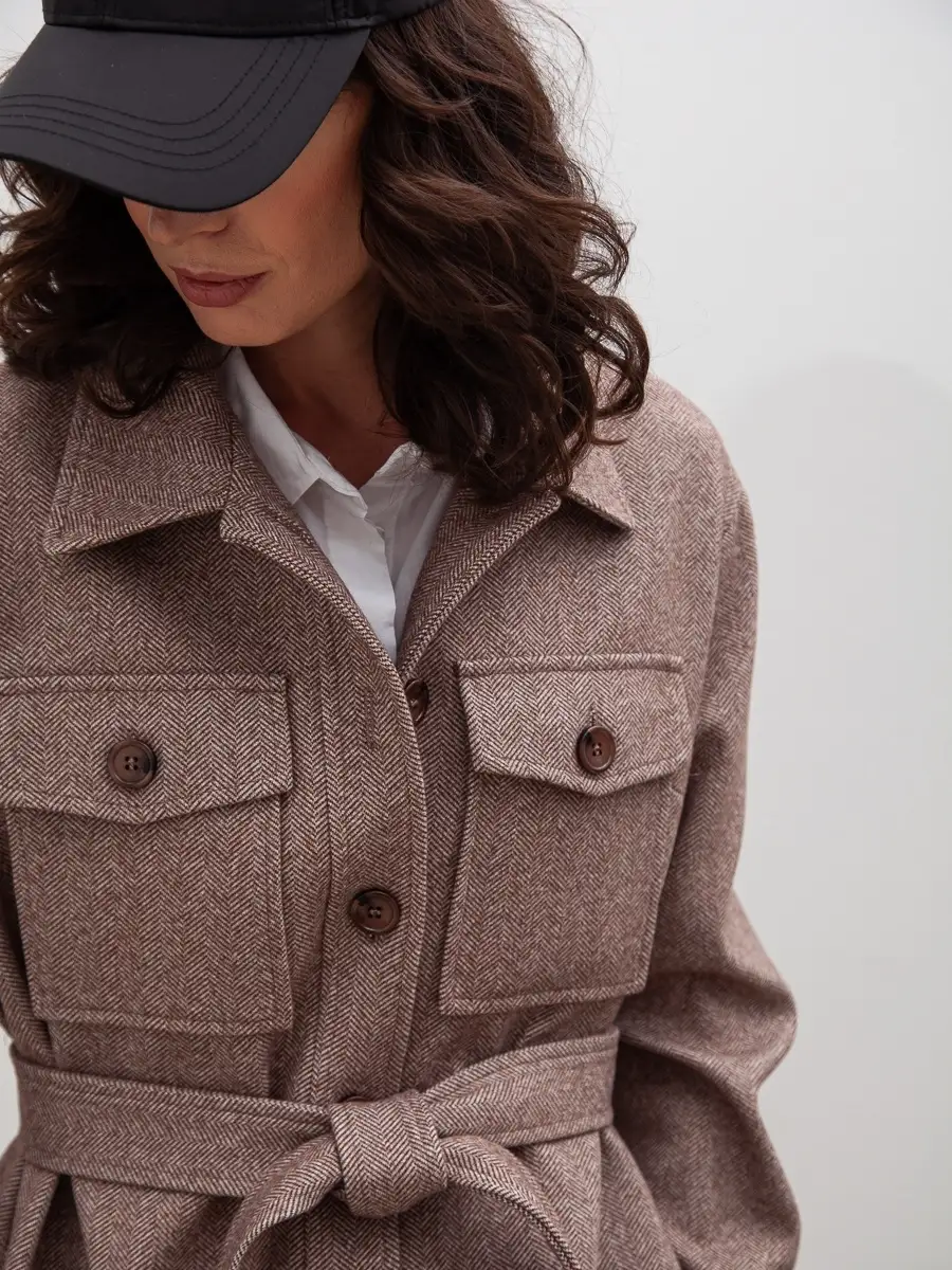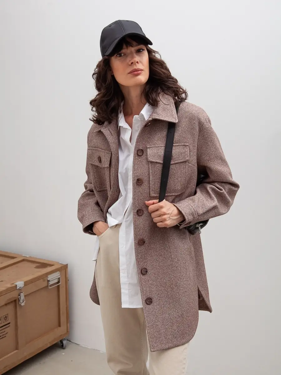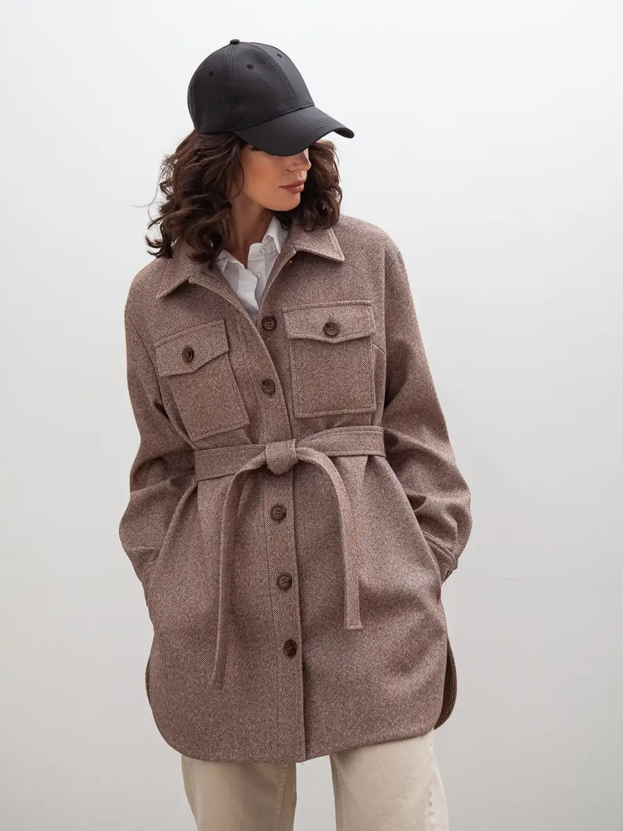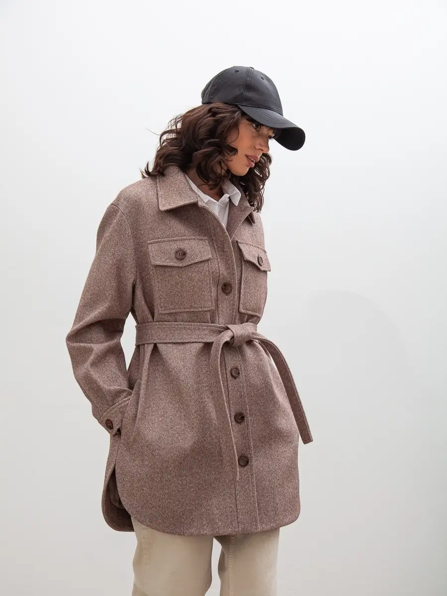 Пальто осеннее короткое куртка- рубашка оверсайз