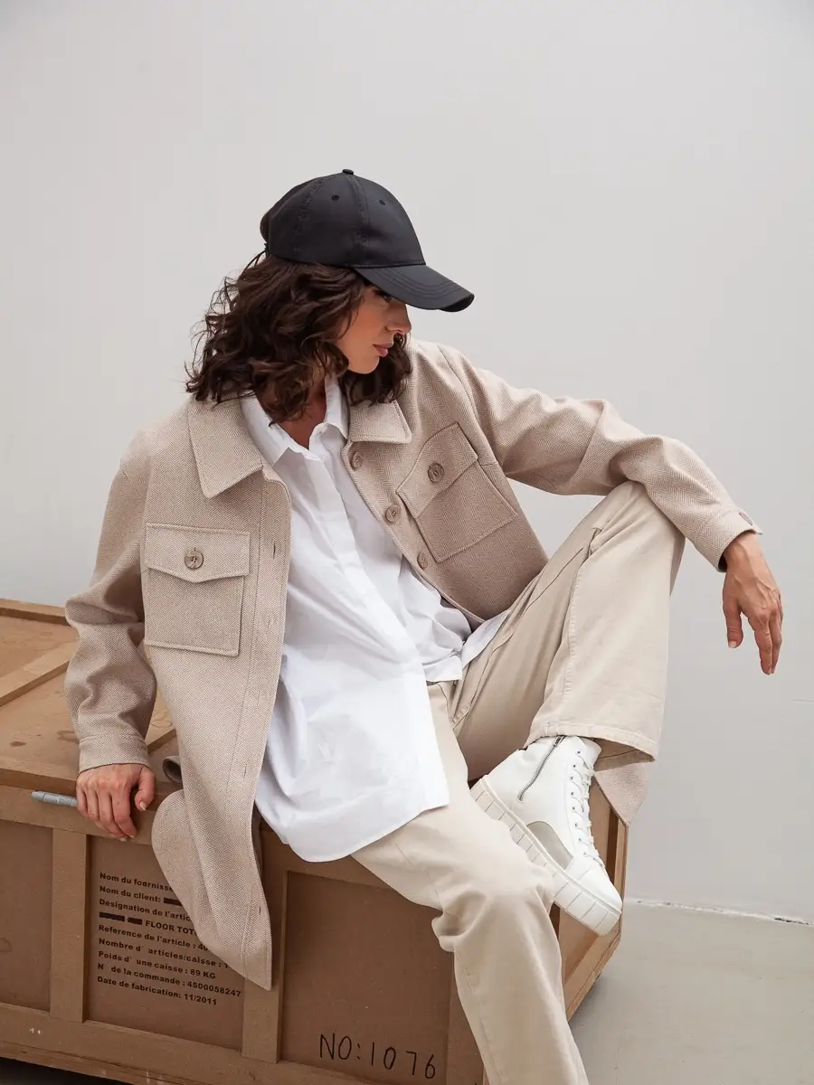 Пальто осеннее короткое куртка- рубашка оверсайз