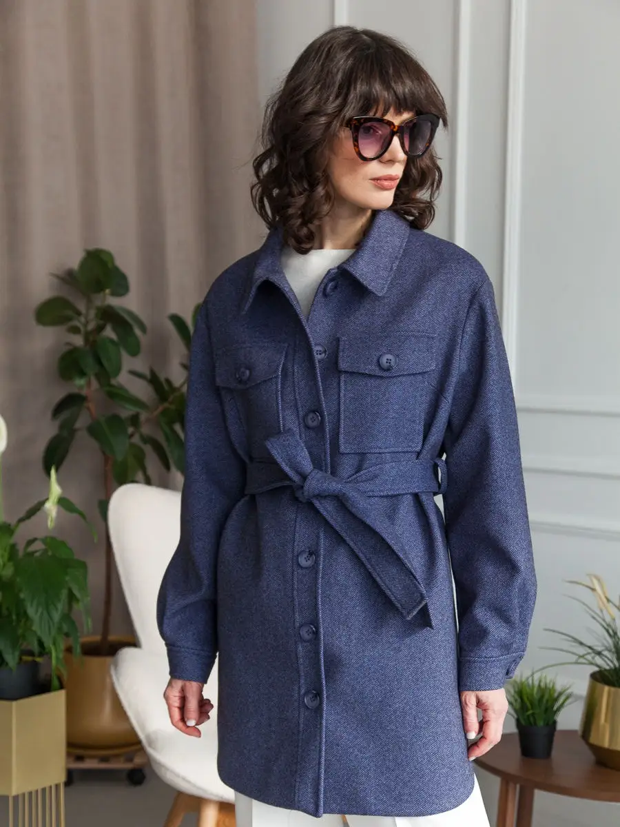 Пальто осеннее короткое куртка- рубашка оверсайз