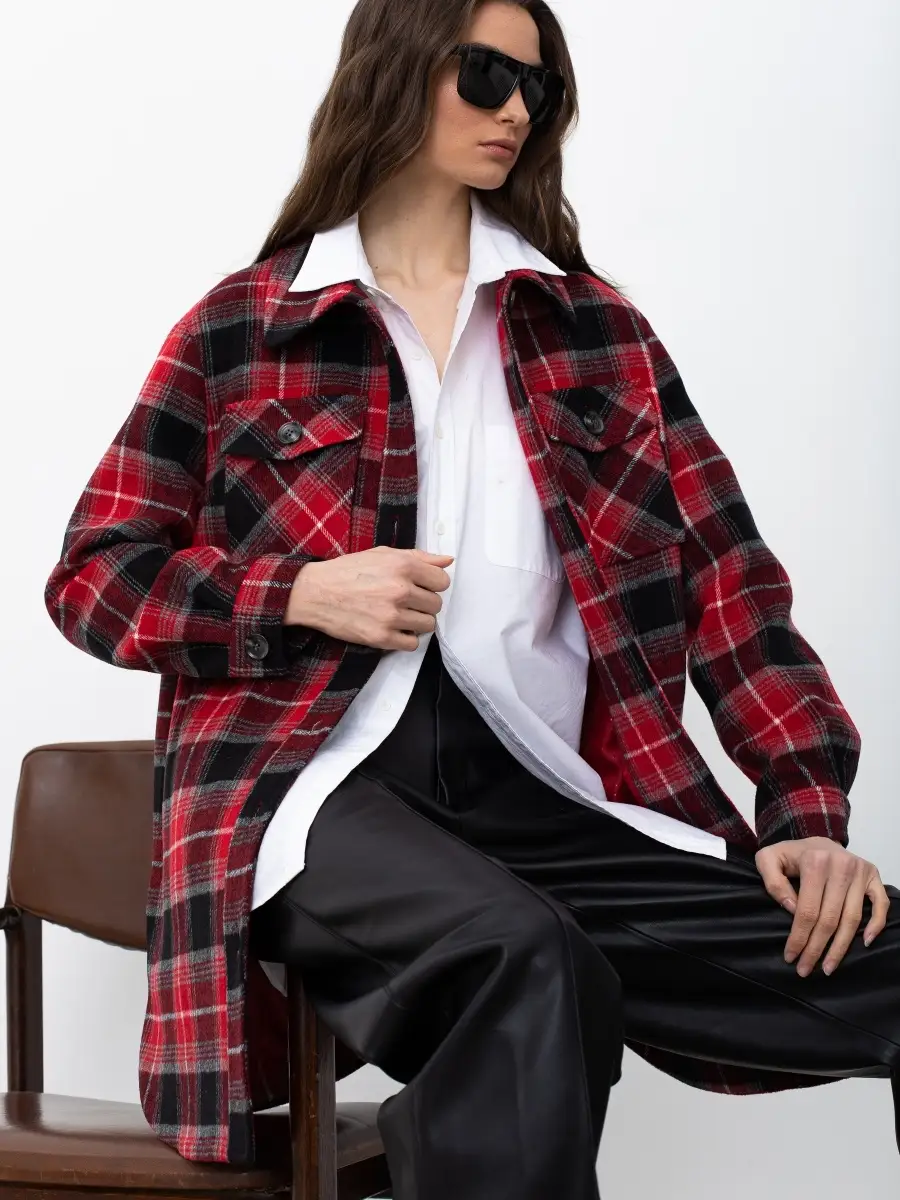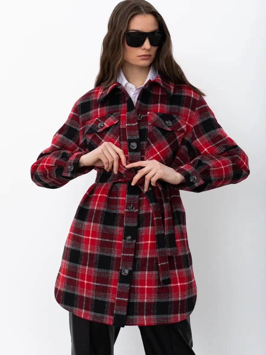 Пальто осеннее короткое куртка- рубашка оверсайз