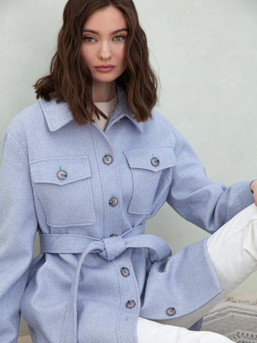 Пальто осеннее короткое куртка- рубашка оверсайз