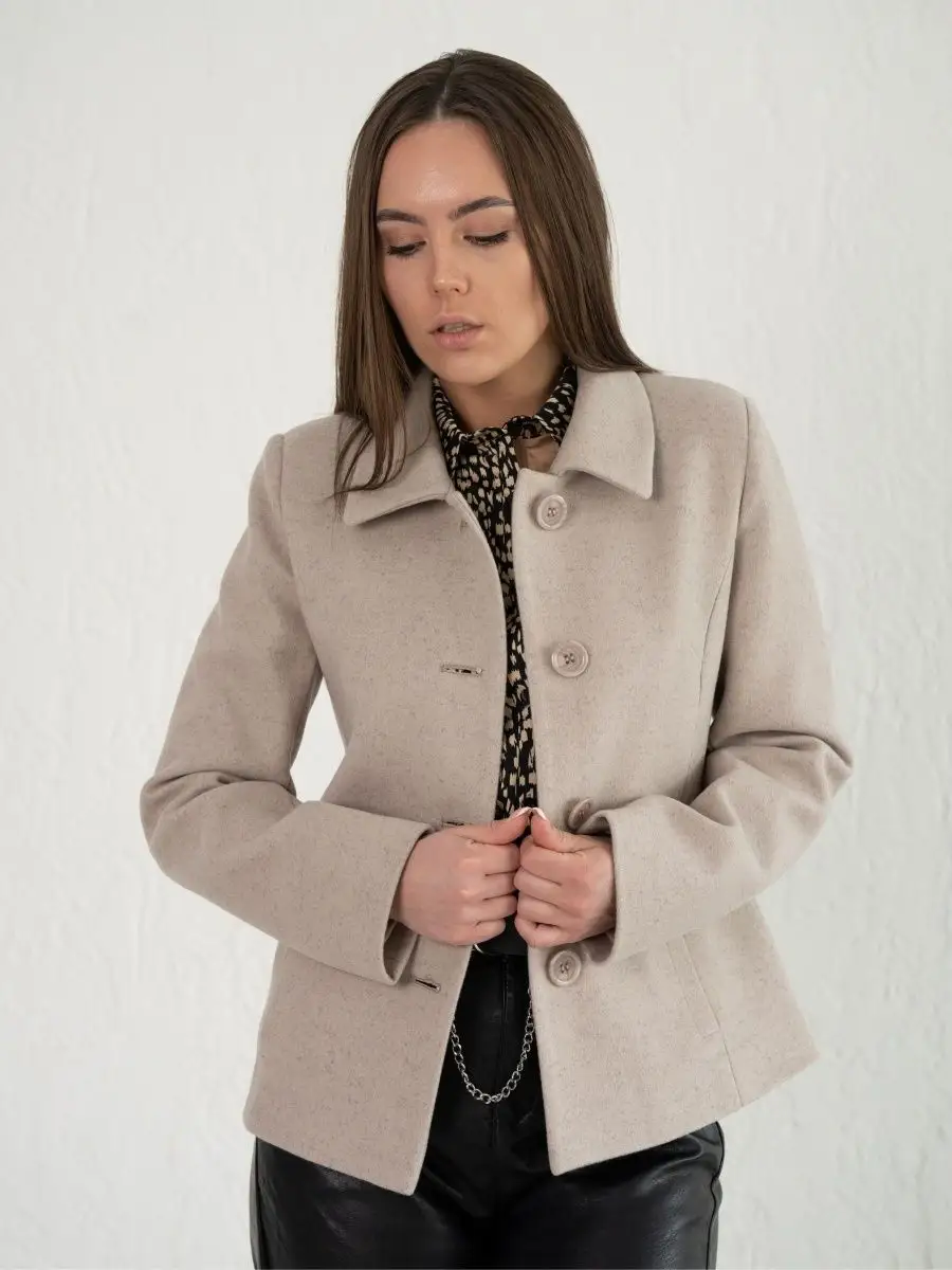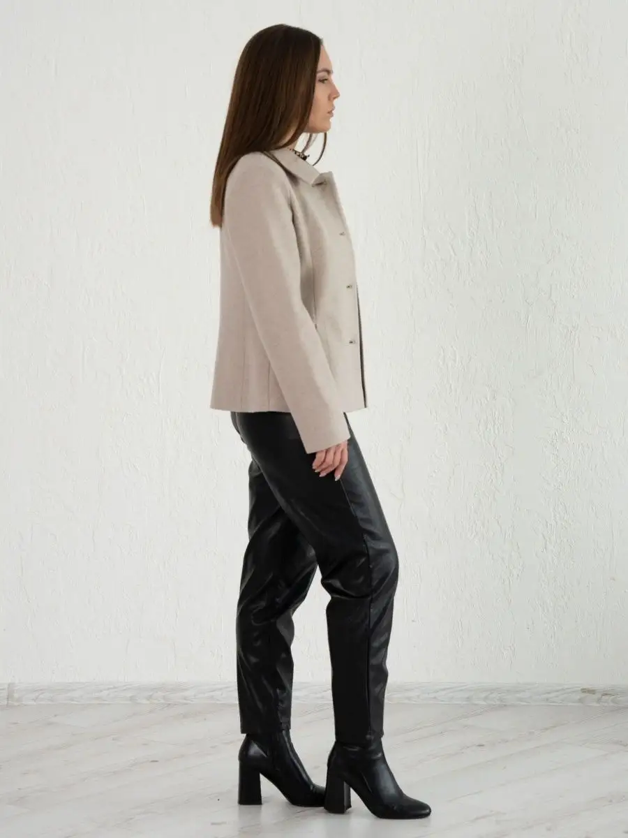 Описание: РЕКОМЕНДУЕМ брать НА РАЗМЕР БОЛЬШЕ своего. Демисезонное весеннее короткое однобортное пальто - жакет, драповое шерстяное укороченное пальто - пиджак. Модель "Злата". Посадка по фигуре, полуприлегающая. Материал верха - плотный драп премиального качества (шерсть 55%), подклад из поливискозы. Воротник отложной. Вертикальные прорезные карманы. Длина по спинке 60 см. Рукава прямые втачные. Сезон весна - осень. Ростовка рассчитана на рост 162-168 см. Комфортно при температуре от +15 до +5 градусов.