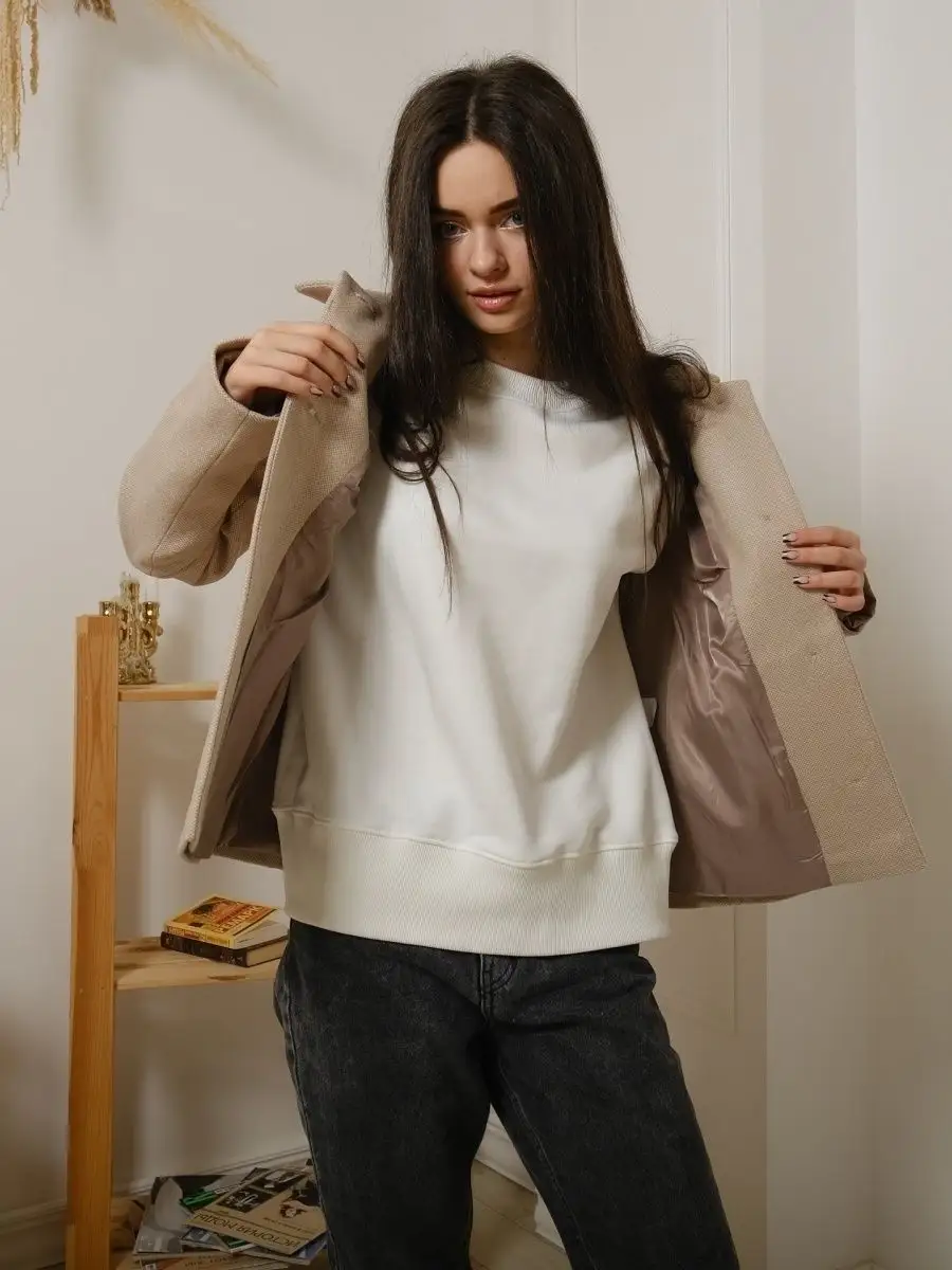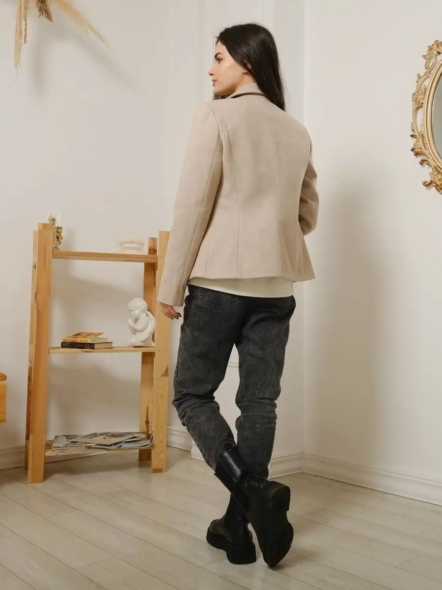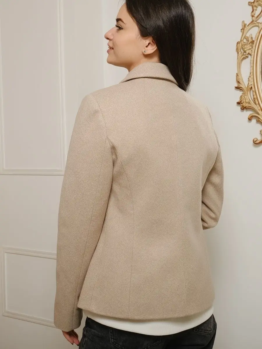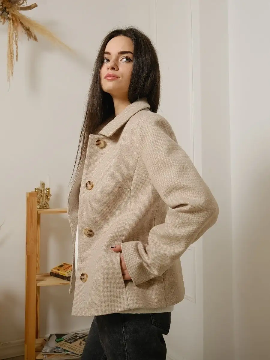 Описание: РЕКОМЕНДУЕМ брать НА РАЗМЕР БОЛЬШЕ своего. Демисезонное весеннее короткое однобортное пальто - жакет, драповое шерстяное укороченное пальто - пиджак. Модель "Злата". Посадка по фигуре, полуприлегающая. Материал верха - плотный драп премиального качества (шерсть 55%), подклад из поливискозы. Воротник отложной. Вертикальные прорезные карманы. Длина по спинке 60 см. Рукава прямые втачные. Сезон весна - осень. Ростовка рассчитана на рост 162-168 см. Комфортно при температуре от +15 до +5 градусов.