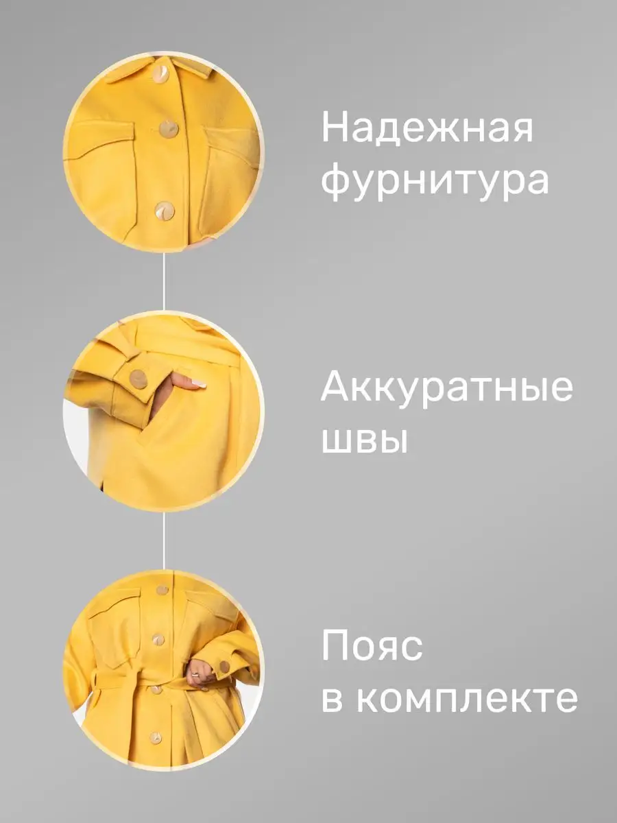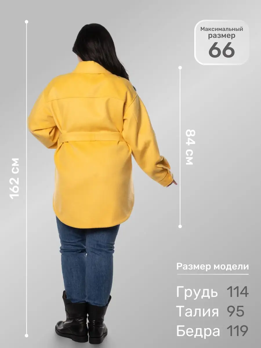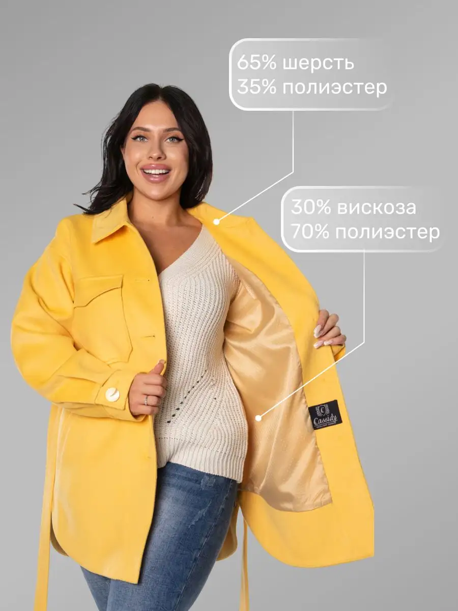 Описание: Пальто-рубашка демисезонное драповое - это универсальный утепленный вариант для создания многослойных образов, который подарит свободу движения. Пальто женское с поясом выполнено в стиле оверсайз, подходящем для беременных женщин. Модель отлично сочетается с кроссовками, ботинками, кедами, ботильонами и другой обувью. Пальто укороченное весна/осень изготовлено из высококачественного материала, в составе которого 65% шерсти. Поэтому полупальто женское демисезонное хорошо сохраняет тепло, чтобы вы могли чувствовать себя комфортно в любое время года. Рубашечный крой дополнит любой образ, а удобная свободная посадка делает это пальто женское демисезонное идеальным выбором для полных женщин. Одежда женская больших размеров Cassidy мягкая и приятная к телу ткань, имеет удобные карманы, функциональные стильные пуговицы с уникальным дизайном для каждой расцветки и универсальная цветовую палитру пальто рубашек. Оно не мнётся и отлично держит форму. Пальто женское короткое из драпа желтого цвета подарит Вам необыкновенное чувство комфорта и уверенности в себе! Такая универсальная вещь в гардеробе отлично подойдет для тех, кто любит экспериментировать. Пальто шерстяное женское желтое укороченное гармонично дополнит любой образ и будет смотреться очень современно. Вы можете создать романтичный образ с ботильонами или спортивный образ с кроссовками - возможности бесконечны. Ваши образы могут быть разными, но стильное и универсальное пальто-рубашка от Cassidy — это выигрышный выбор для любого случая.