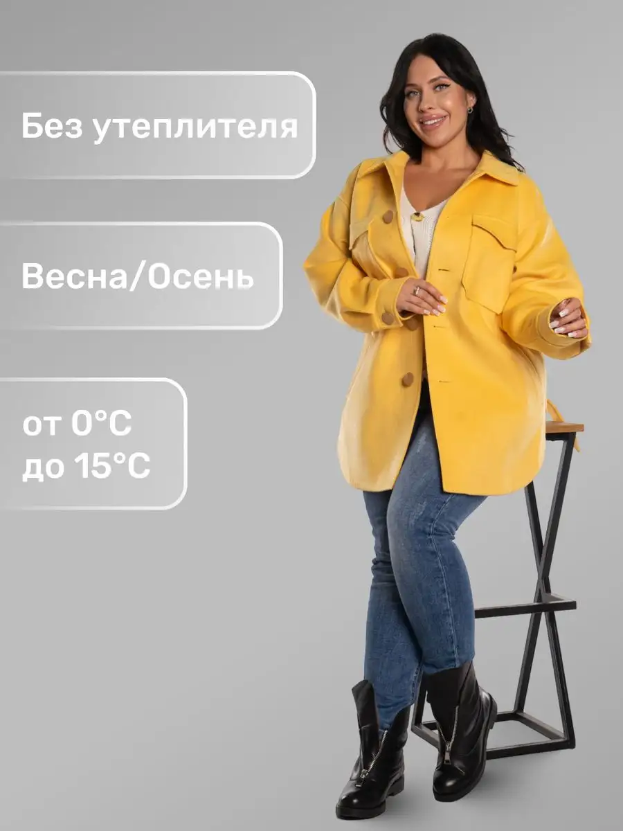 Пальто рубашка короткое драповое оверсайз больших размеров