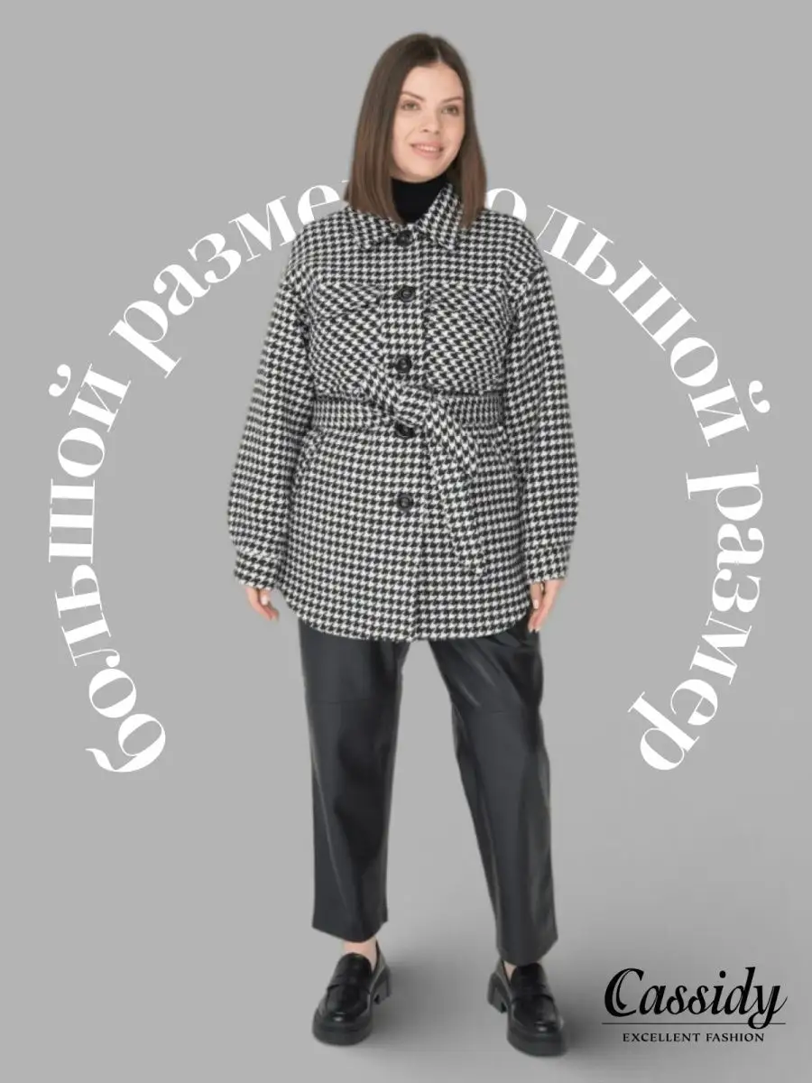 Пальто рубашка короткое драповое оверсайз больших размеров