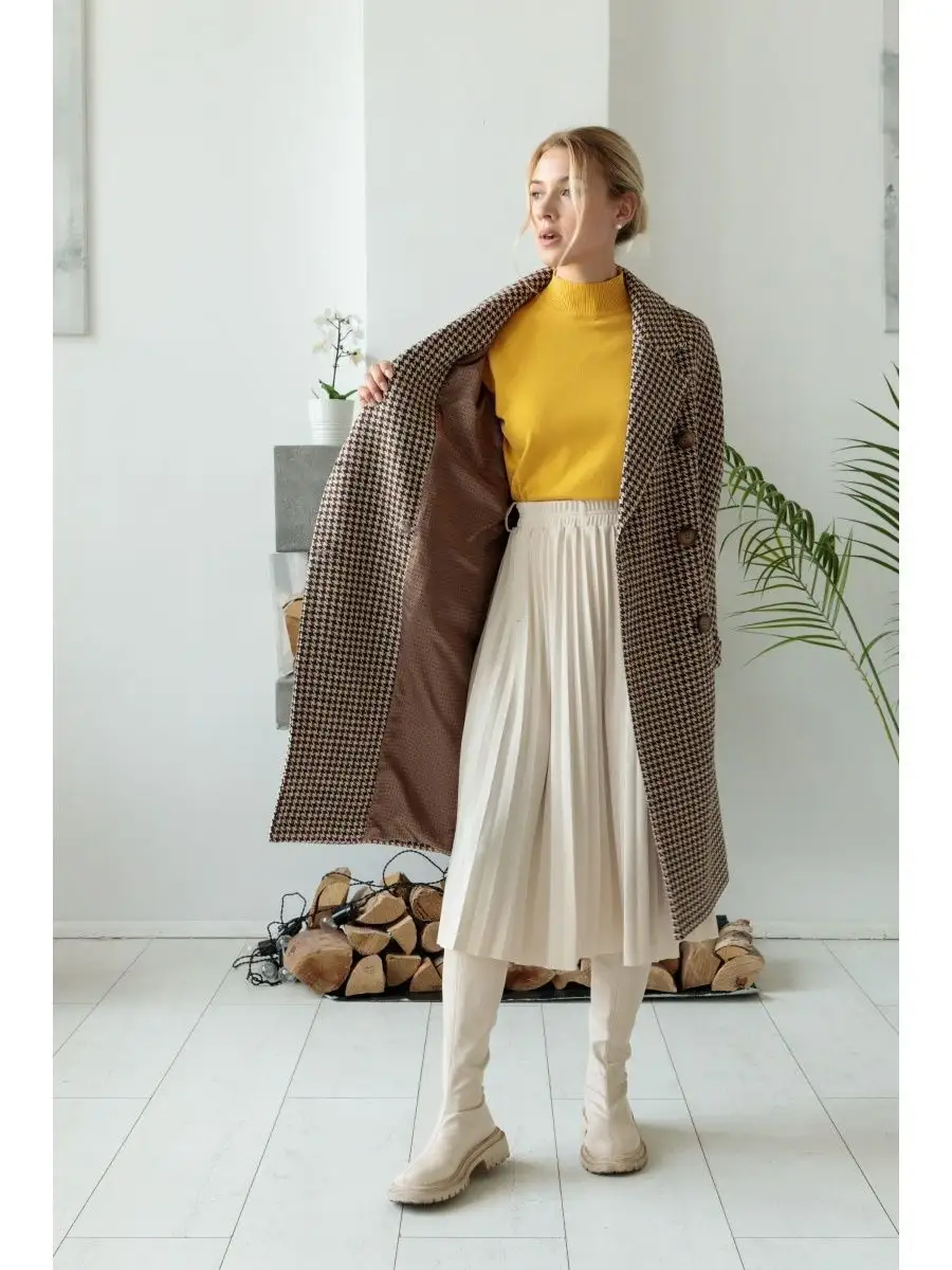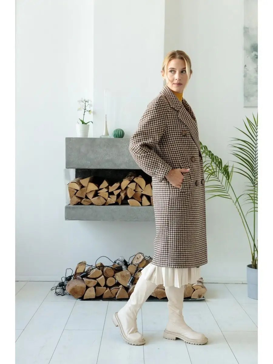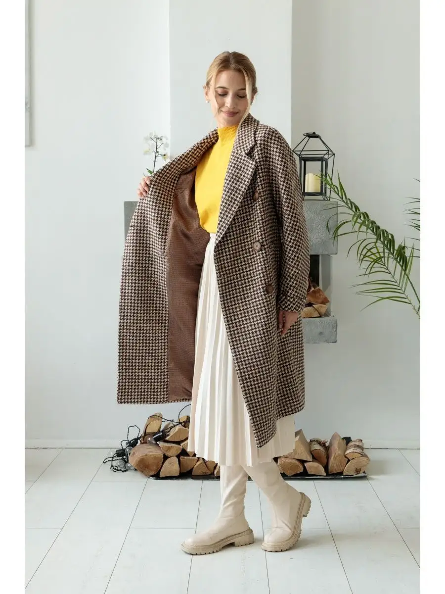 Описание: Пальто двубортное демисезонное женское с английским воротником бренда Amilardy практичное и элегантное одновременно. Покрой рукава втачной реглан. Длина рукава плавающая на любой рост и регулируется манжетом. Внутри полочка застёгивается на супатную застёжку. Вы сами сможете переставить пуговицу, тем самым регулируется запах. Верхняя одежда летняя нашего бренда образцовая классика. Классическое пальто для женщин изготовлено из ткани - твид. В составе шерсть 70 %. Ее достоинства: тепло, натуральность и способность создавать воздушную прослойку между тончайшими волокнами. Поливискоза 30%, которая напоминает хлопок и обладает высочайшей эластичностью. Ткань отлично тянется, но при ее использовании не происходит никакой деформации материала. Волокна после растяжки обретают свой изначальный размер. Вся продукция бренда Амиларди сертифицирована. Модное клетчатое осеннее пальто рубашка с карманами больших размеров придаёт стать и благородство девушкам с любым типом фигуры. Английский воротник представляет собой ворот, который визуально делает вырез на одежде глубже. Важно правильно подобрать под такой ворот соответствующие элементы гардероба: тёплую зимнюю водолазку, нарядную блузку, изысканный шарф или палантин. При создании длинной модели твидового пальто на демисезон мы выбирали исключительно высококачественные материалы и использовали сдержанные расцветки с необходимым минимумом декоративной отделки. Достоинства очевидны. Весеннее пальто для беременных с искусственным мехом не теряют товарного вида даже после стирки в стиральной машине в режиме шерсть, яркое пальто долго носится. Ткани из Турции, Италии и Китая проходят тщательный отбор. Мы используем только качественную фурнитуру. Дорогая качественная подкладка из премиальной ткани полиэстер 100%, которая не расползается от носки. Благодаря уникальным особенностям материала, такая вещь в стиле оверсайз создаёт уютный и тёплый образ для подростков, а также деловой образ. Утеплённый вариант дизайнерской верхней одежды можно носить вместо пуховика и шубы если одевать под него свитер толстовку или худи. Пальто шерстяное подростковое на осень имеет оптимальную длину, что позволяет зрительно вытягивать силуэт и не добавляет громоздкости или излишнего объёма. Повседневная одежда бренда Амиларди отшивается круглый год. Наш коллектив художников и технологов трудятся над каждой моделью. Наша цель создать такую продукцию, чтобы нравилась любимым покупателям. Богатый модельный ряд на любой вкус. Полупальто в клетку на весну фирмы Амиларди подойдет для прогулок прохладным летом, путешествий, на работу в офис, в школу, в институт или на каждый день.