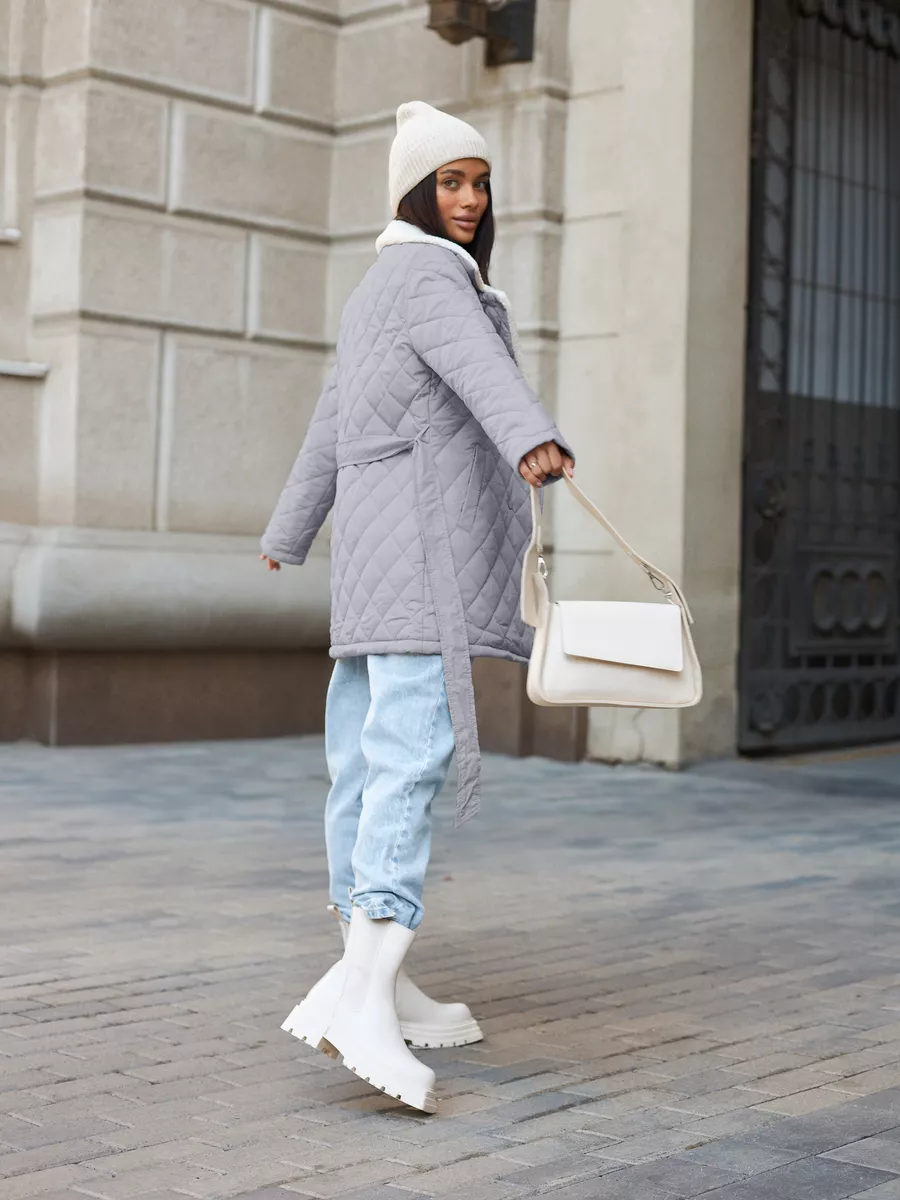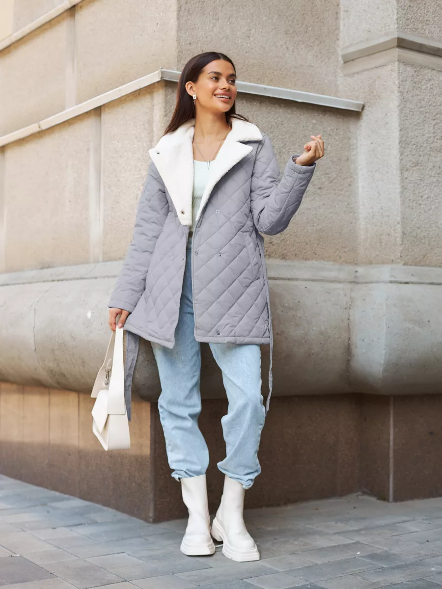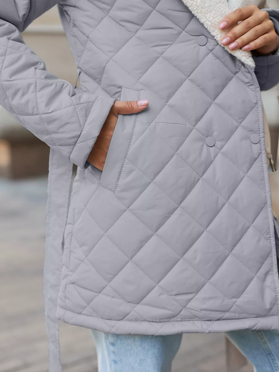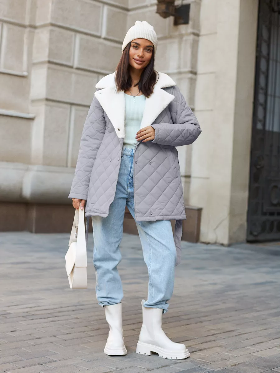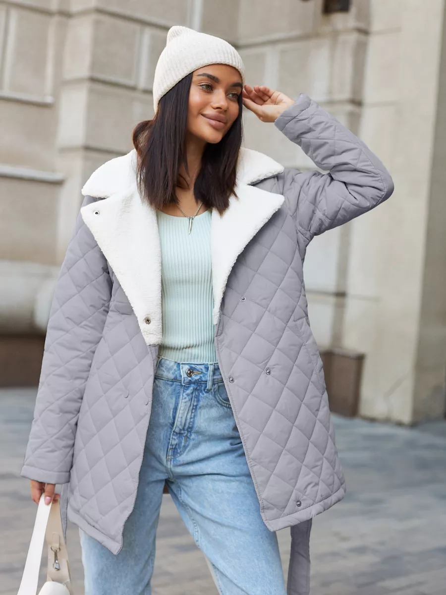 Пальто стеганое с мехом короткое осень